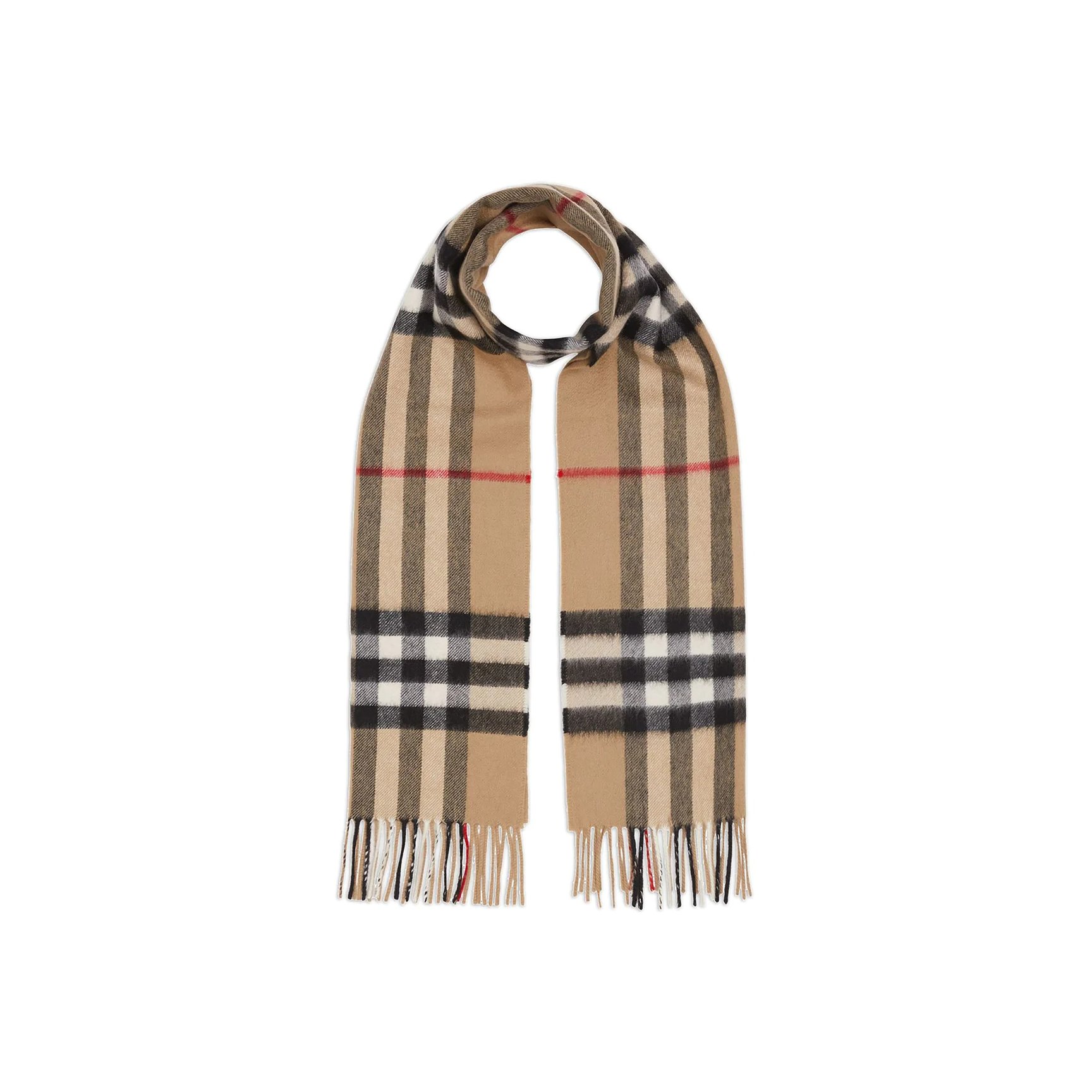 「バーバリー(BURBERRY)」を代表する定番アイテムといえば、チェックマフラー。クラシックなこちらのチェック柄は、1920年代からトレンチコートの裏地として用いられてきたもの。ワードローブにひとつは欲しい、歴史を感じさせる銘品です。カシミア100%。
