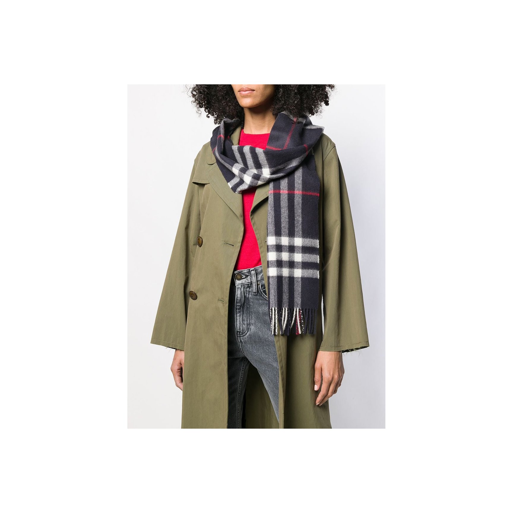 チェックアイテムが豊富な「バーバリー」。こちらのカシミアマフラーはブラックをベースにしたモノトーンの配色で、どんな服装にも合わせやすい一枚です。バーバリーチェックおなじみの、レッドのラインがアクセントに。