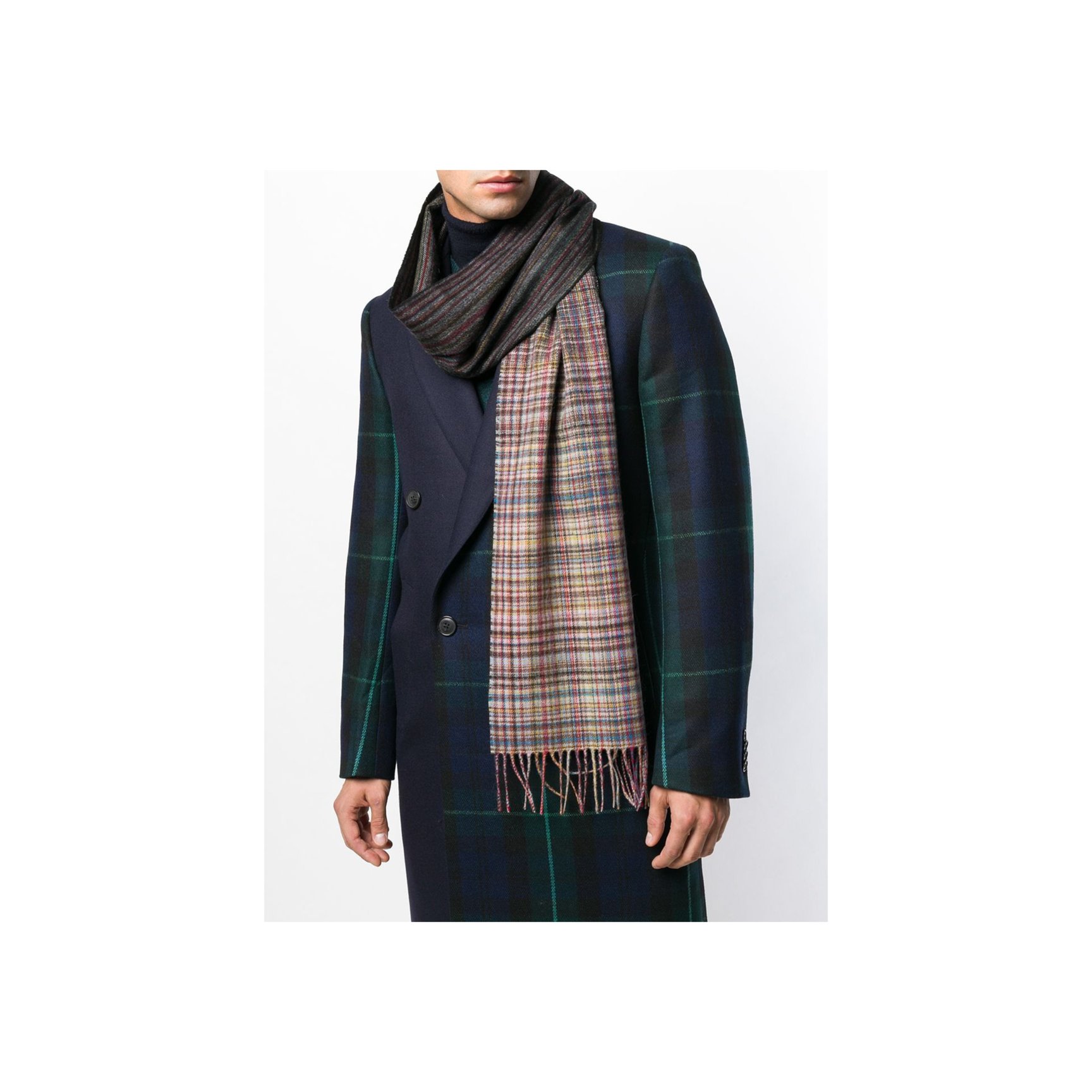 「ポール?スミス(Paul?Smith)」のマフラーは、繊細なチェック柄がポイント。ブランドアイコンであるマルチストライプを彷彿とさせる、ユニークなパターンです。