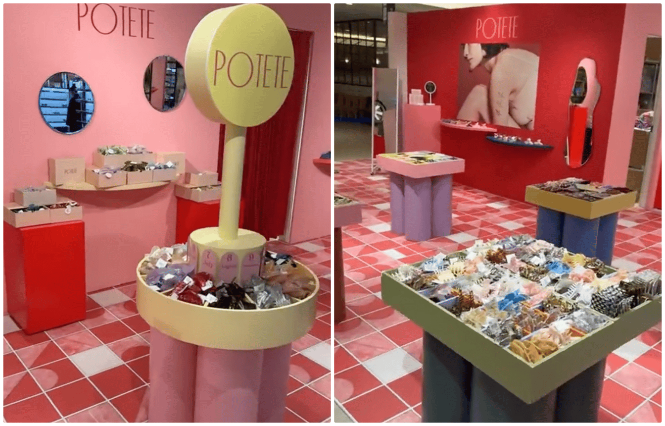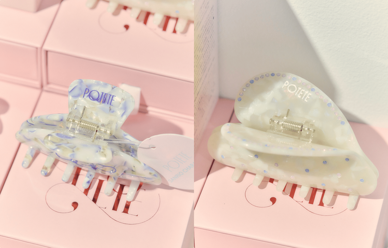 毎週100?150点程度のシュシュを手作りし、ECで販売するD2Cブランドとして始動したポテテは、現在では百貨店でのポップアップを不定期に開催している。シュシュに並び、店頭で人気を見せるのは、アセテート製のヘアクリップ類。現在の主力商品でもあるこれらはシュシュとは違い、発売当初の売れ行きは伸び悩んでいた。