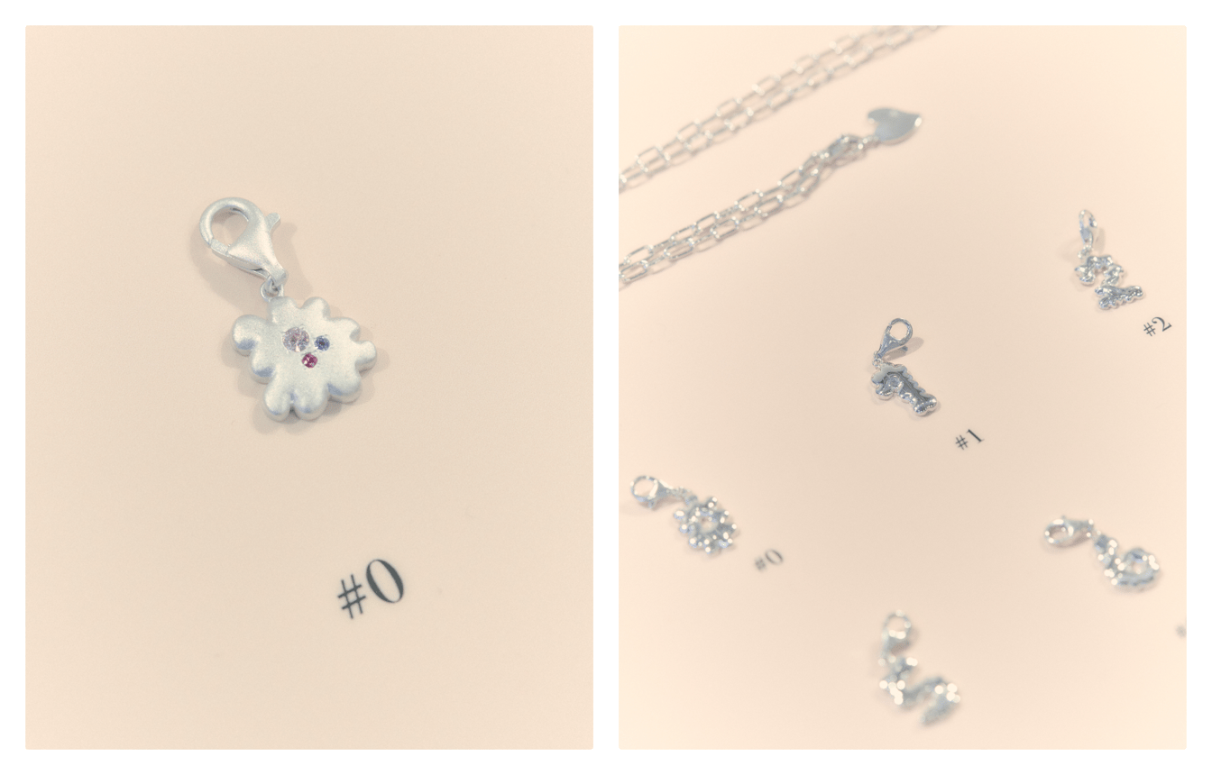 チャームとチェーンの価格は税込3万3000?22万円と、ポテテで今まで展開してきた数千円のアイテムと比較すると挑戦的な価格設定だ。価格に対しても「やりすぎかなとも思った」というが、長く愛着を育てるためには、歳を取っていく過程で価値観が変わっても着け心地が悪くないものを作るべき、という考えから、素材にはシルバーやK18、トパーズやアメジストなどを使用した。