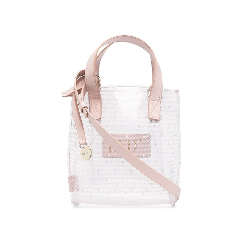 全面に「ポワンデスプリ」プリントが施された「レッド ヴァレンティノ(RED VALENTINO)」のトートバッグ。クリアにホワイト、淡いピンクのカラーパレットで、ロマンティックムード漂う印象に。小ぶりなサイズ感なので、アクセサリー感覚で楽しめます。