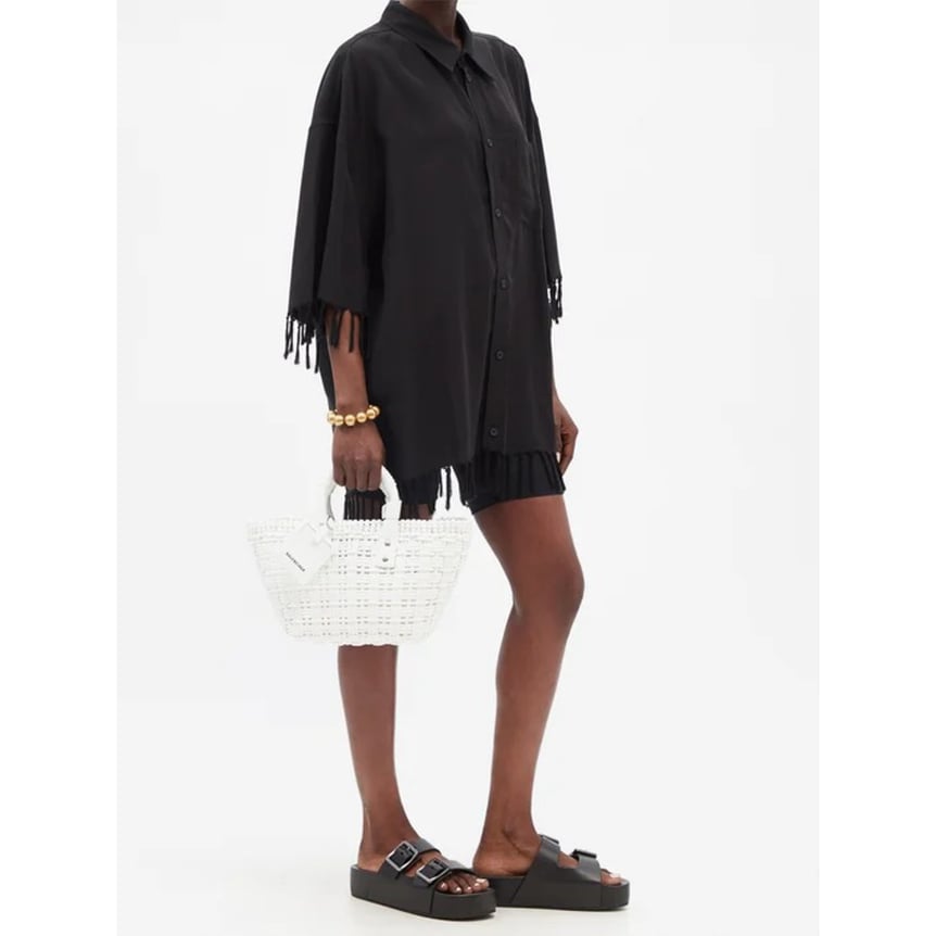 光沢のあるPVCを編み込み、伝統的なバスケットをダイナミックに模した「バレンシアガ(BALENCIAGA)」のトートバッグ“ビストロ”。トップハンドルと取り外し&調節可能なショルダーストラップはレザーを採用することでリュクス感が増し、オフスタイル時に合わせればクラスアップが叶います。