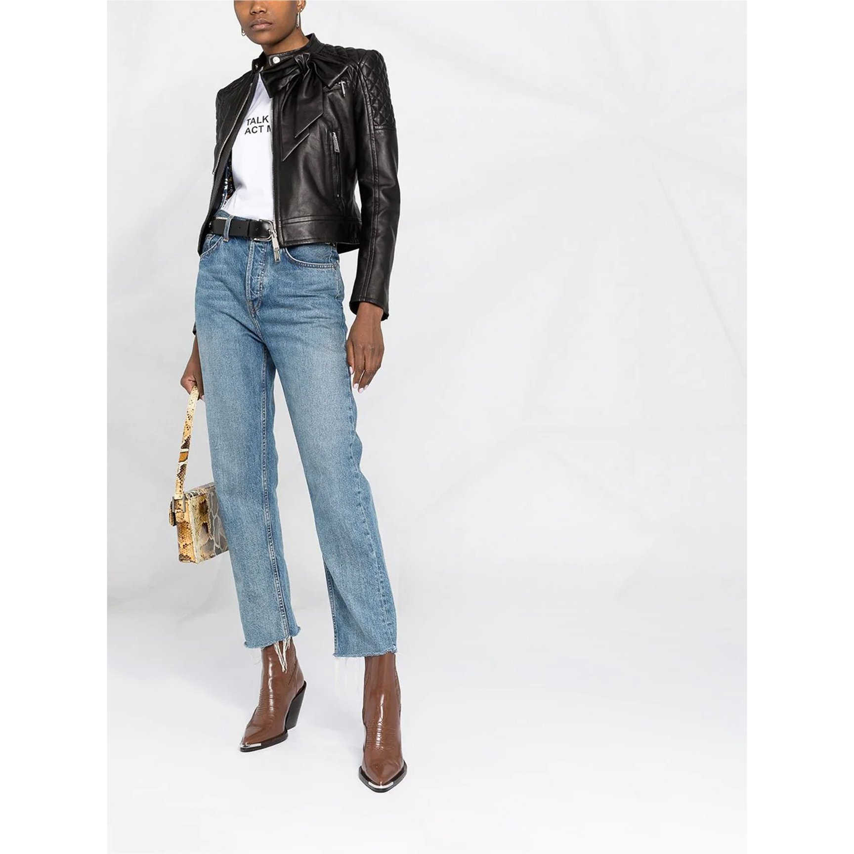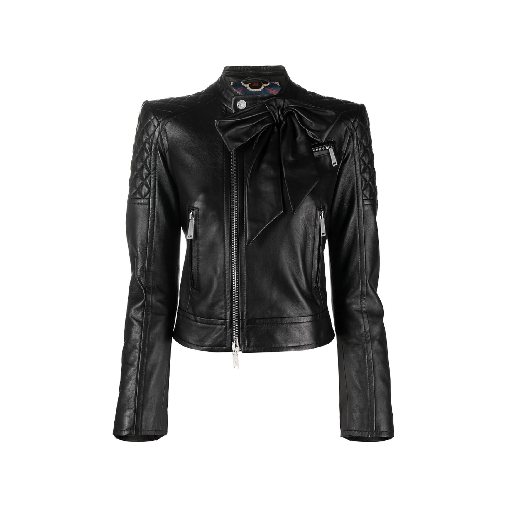 「ディースクエアード(Dsquared2)」のライダースジャケットは、首元にある大きなリボンディテールが特徴。細身でスタイリッシュなシルエットだからこそ、首元のリボンがアクセントに。クールなコーデにも、こちらのジャケットをプラスすれば女性らしさや上品さが加わります。