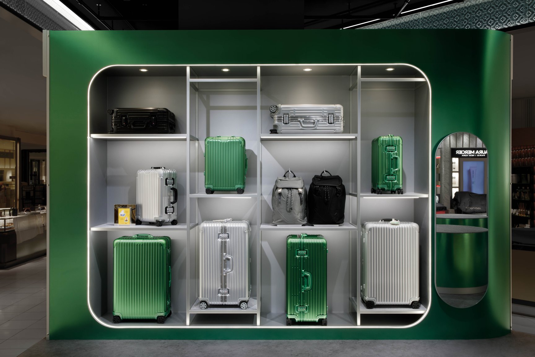 今回のポップアップイベントは、リモワを代表する「オリジナル(ORIGINAL)」コレクションの全ラインナップをフィーチャー。グルーヴ(溝)ラインを配したアルミニウム製の同コレクションは軽量で耐久性に優れ、今やジェットセッターたちのマストアイテムとなっている。会場には定番カラーのほかに、自然界の宝石の美しさからインスパイアされた今年のシーズナルカラー「エメラルド」も登場。新色のスーツケース(キャビン、チェックイン L、トランクプラス)およびパーソナル アルミニウム クロスボディバッグを展開し、世界先行で予約を受け付ける。