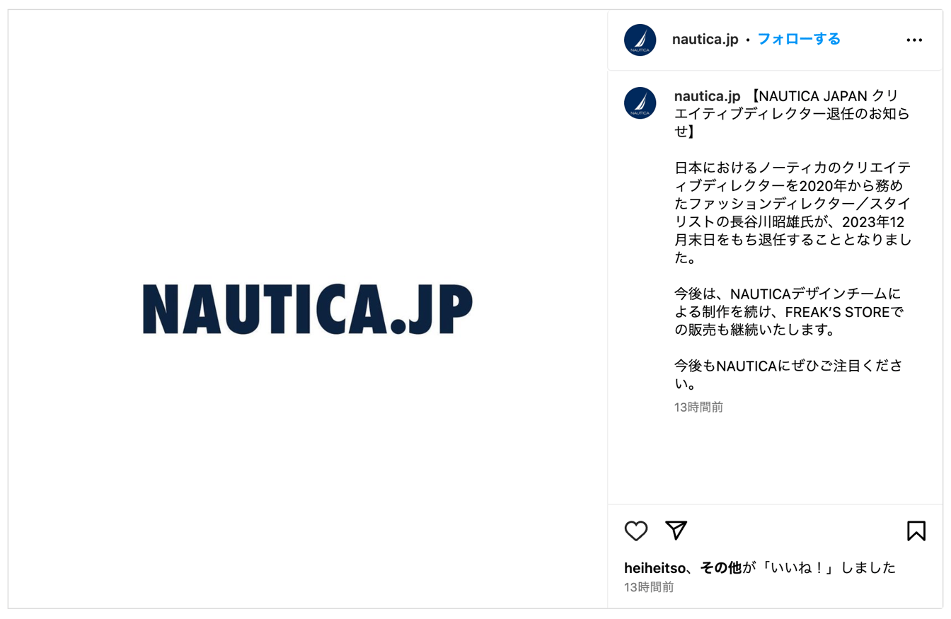 - ファッションディレクターやスタイリストとして活動する長谷川昭雄が、12月末をもって「ノーティカ」のクリエイティブディレクターを退任する。デイトナ?インターナショナルが発表した。