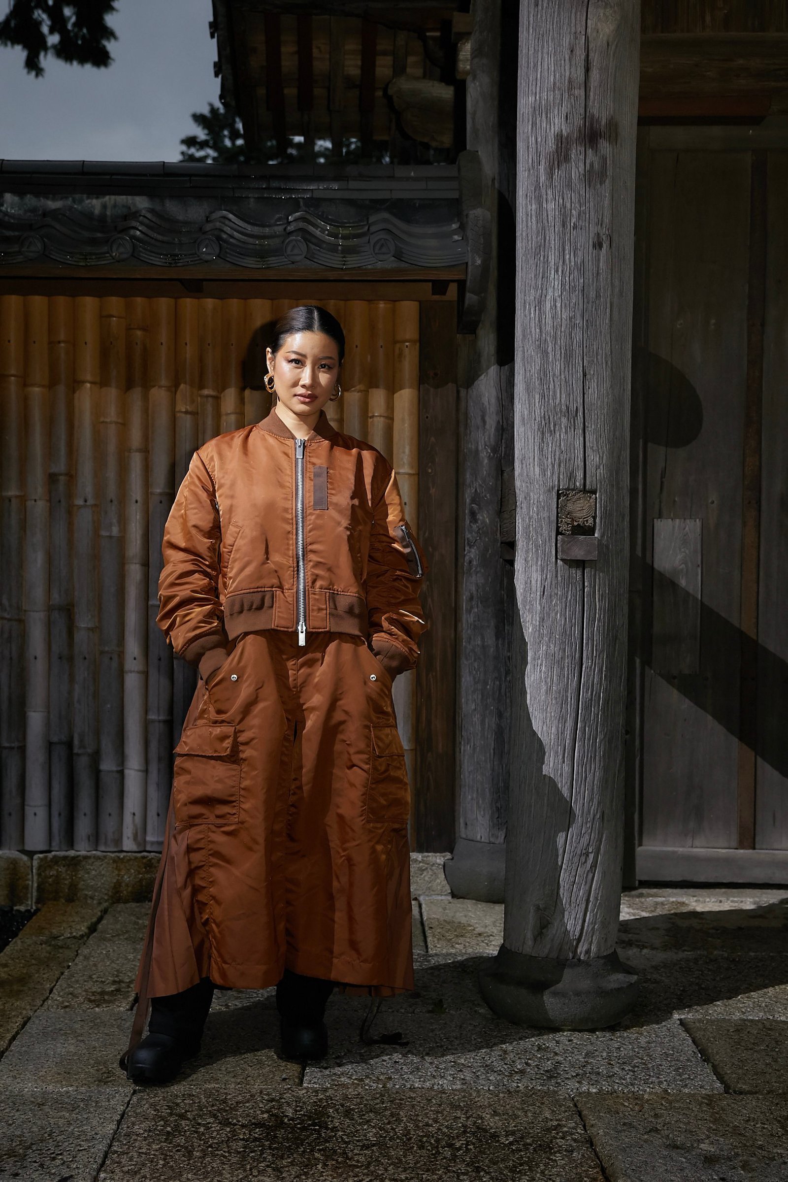 デザイナー阿部千登勢が手掛けるサカイは今回、新型コロナウイルスの影響からパリのファッションウィークには参加せず、8月のメンズに引き続き独自の発表を行った。「伝わる空気感がある」という考えからリアルなショー形式を選び、場所はフランスではなく日本。「Favoriteな場所」だという江之浦測候所で開いた。