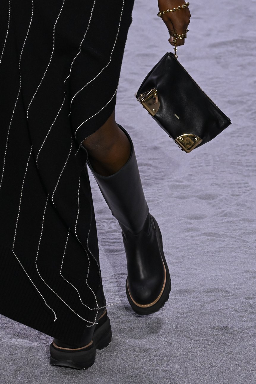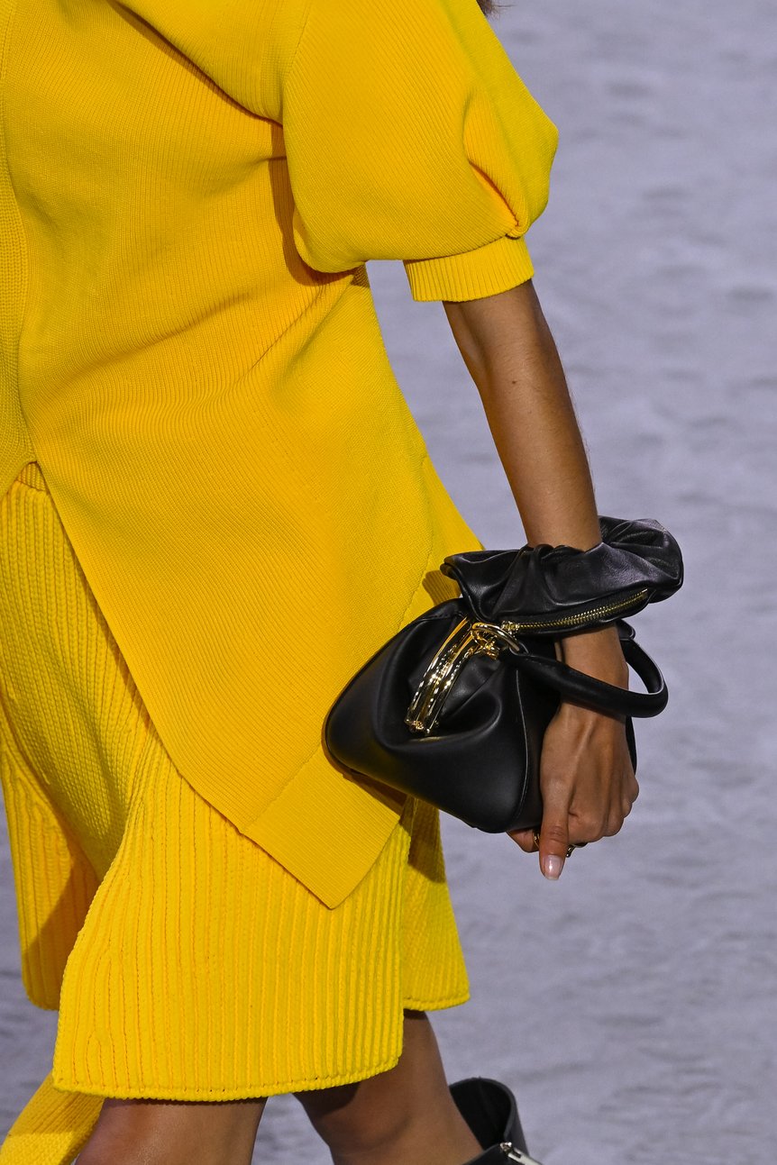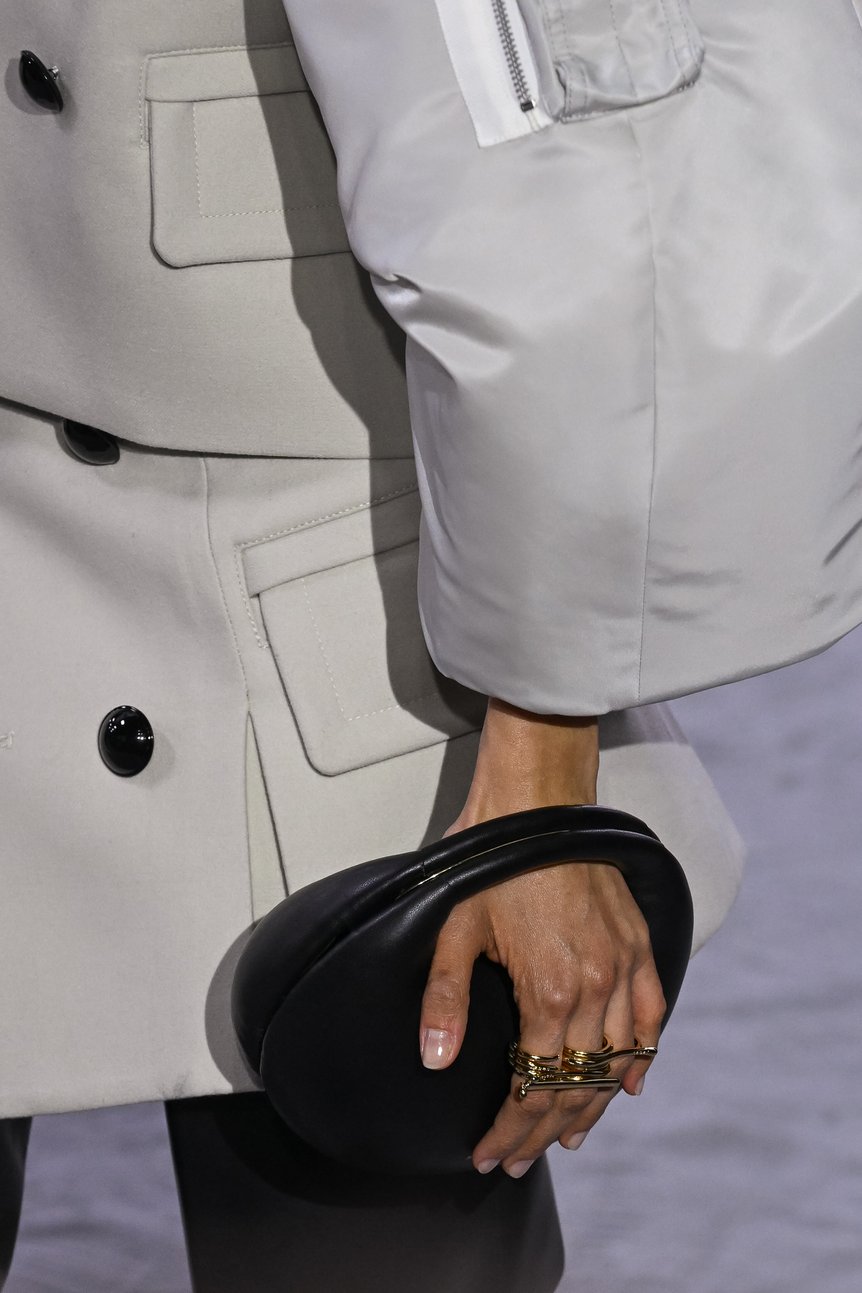 丸いシェイプのミニバッグや、重ね付けしたダブルフィンガーリングといった、スタイリングの仕上げとなるアクセサリーも充実している。