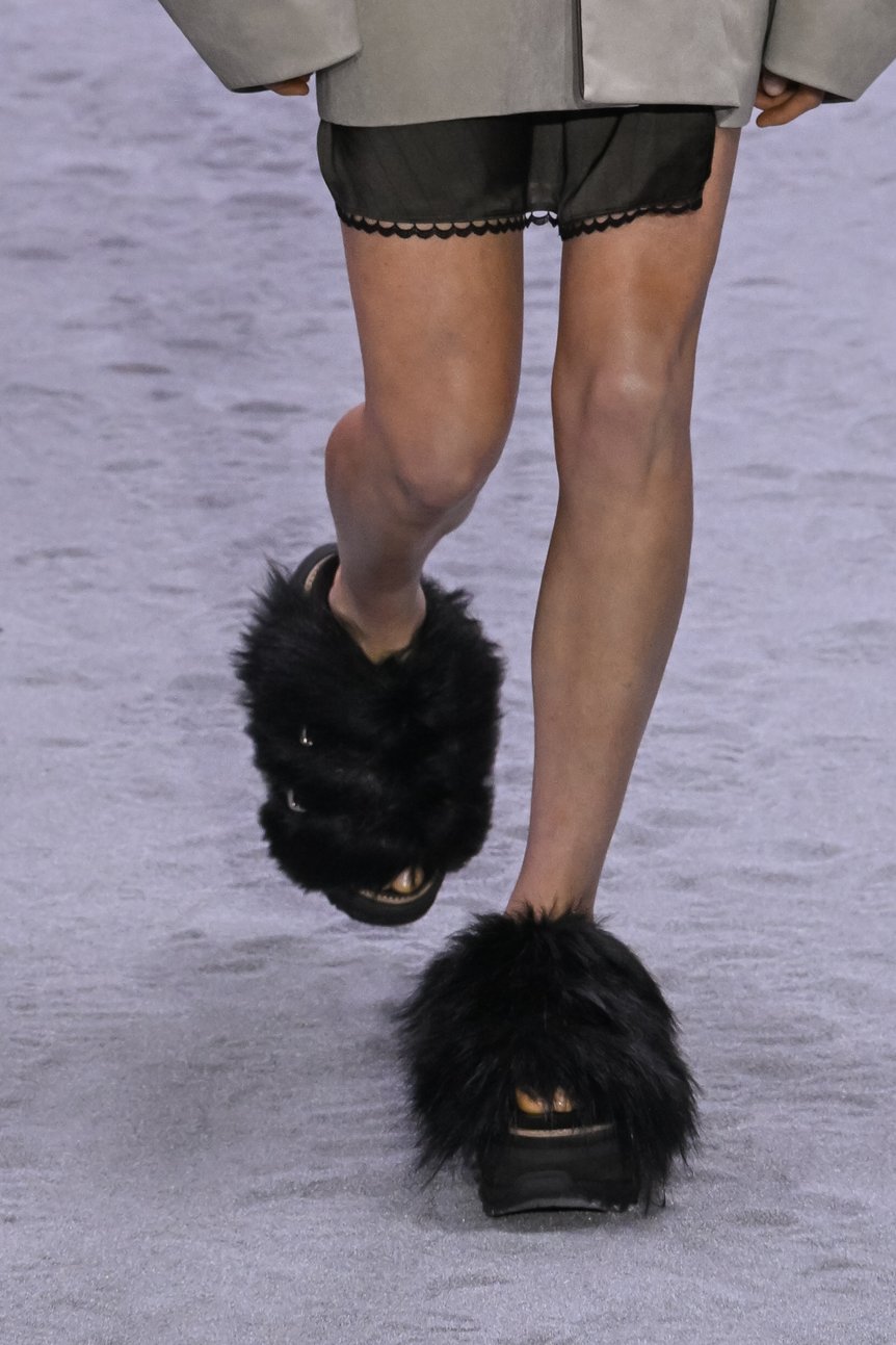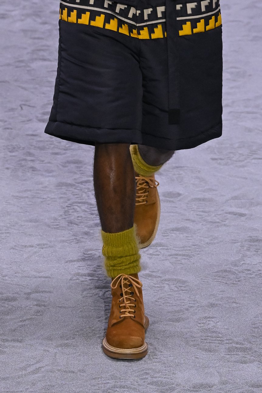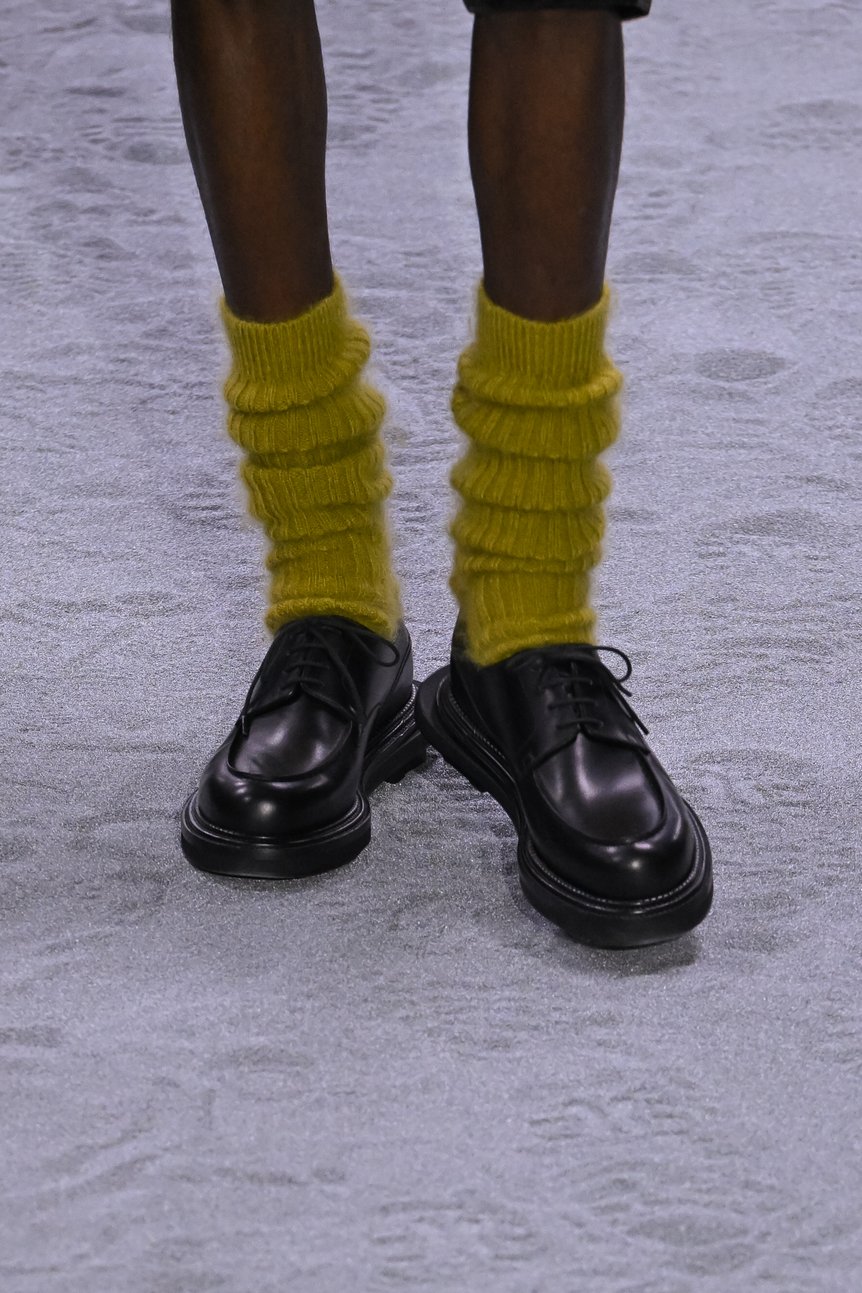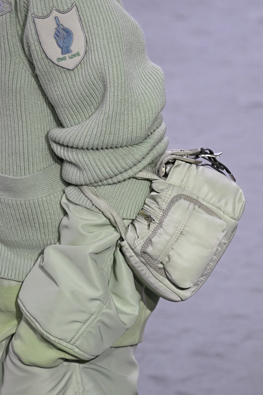 メンズでは、ウルトラバギーパンツといった新しいシルエットのボトムが登場。ノルディックセーターをスパングルで表現したり、縦長のパーツをはぎ合わせたドレスなど、実験的なアプローチも効いている。