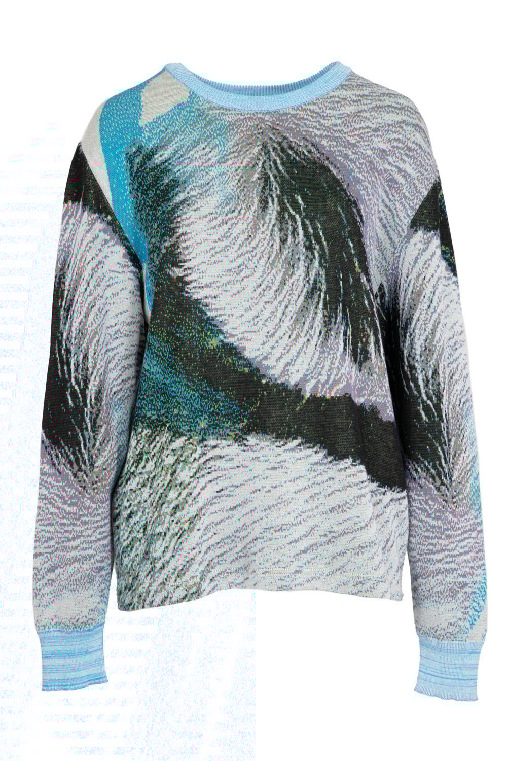 インパクトのあるジャカードのセーターは、一点投入するだけで手持ちのアイテムをフレッシュに甦らせてくれる便利なアイテム。AIに大量の「鳥」の画像を読み込ませて製作したという編地は、同じ6色の糸を使用しながらも、異なる4つの柄を作り出せるのがユニークです。ドライな肌ざわりのセーターは、ロングのベストタイプもラインナップ。ベーシックなシャツやパンツと併せて、トップスが主役のスタイリングを楽しんで下さい。