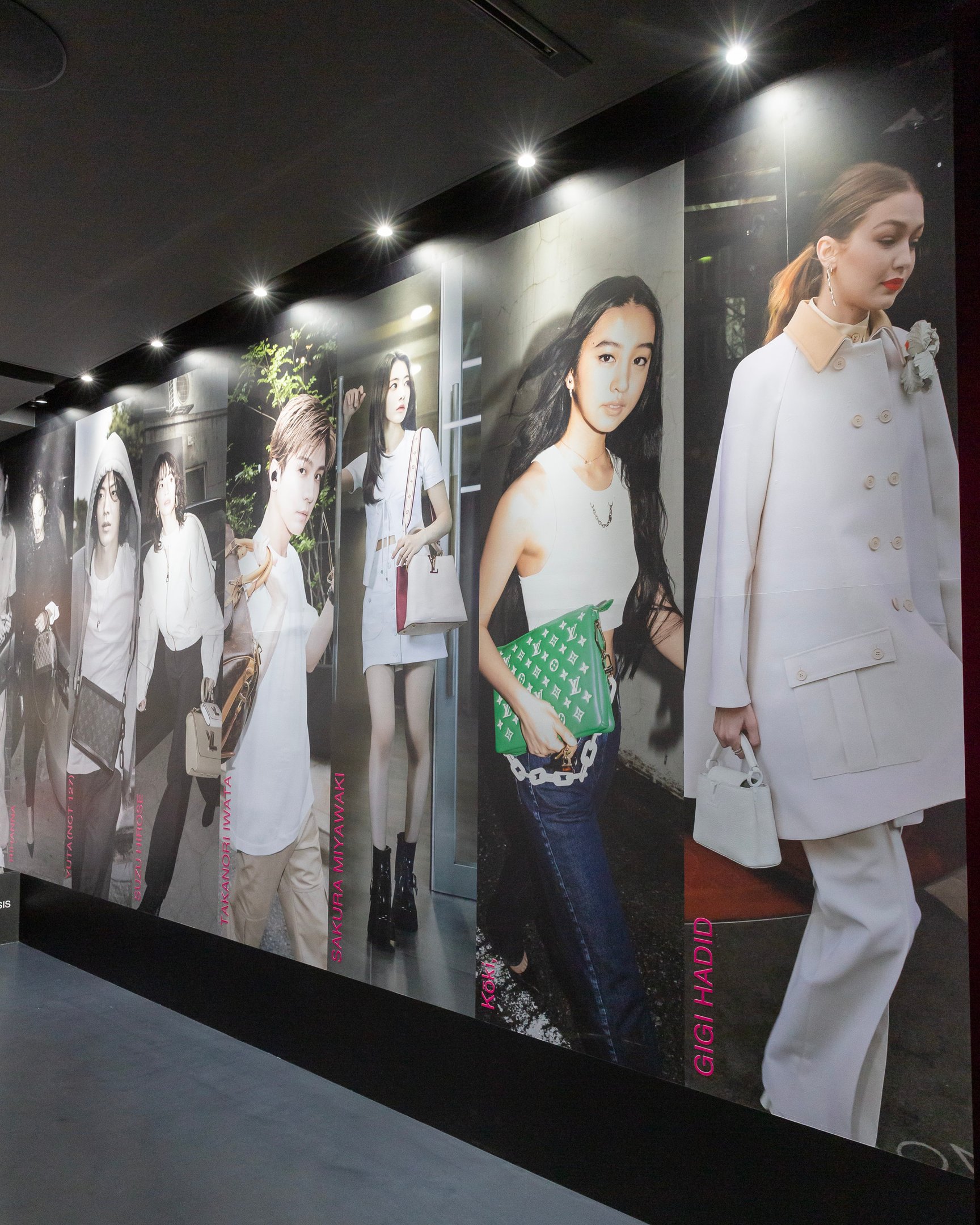 そして「第2の世界 ファッションの世界へ」にはリアーナ(Rihanna)やジジ?ハディッド(Gigi Hadid)など、世界で活躍するセレブリティたちの写真が壁一面を埋め尽くしています。その中には、日頃から愛用する「キーポル?バンドリエール」のバッグを持った岩田さんの姿も。