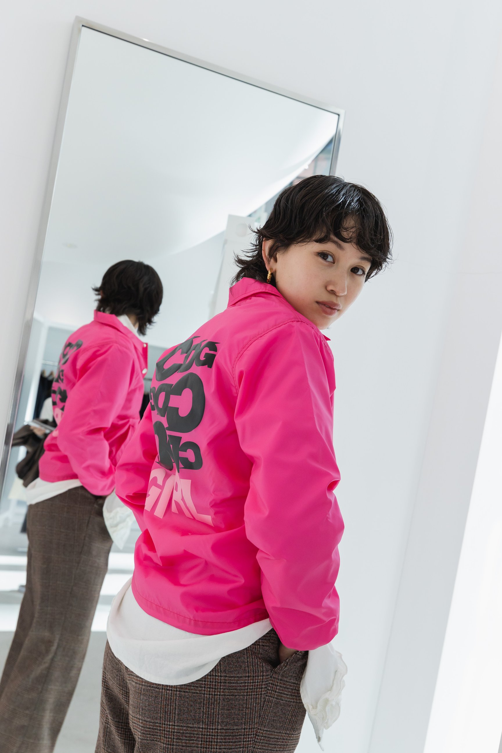 まだ少し肌寒い春先に活躍しそうなコーチジャケットは、渋谷PARCO限定販売となる「シーディージー(CDG)」とのコラボアイテム。コーデのアクセントになる鮮やかなピンクのほか、紺と赤の3色展開です。