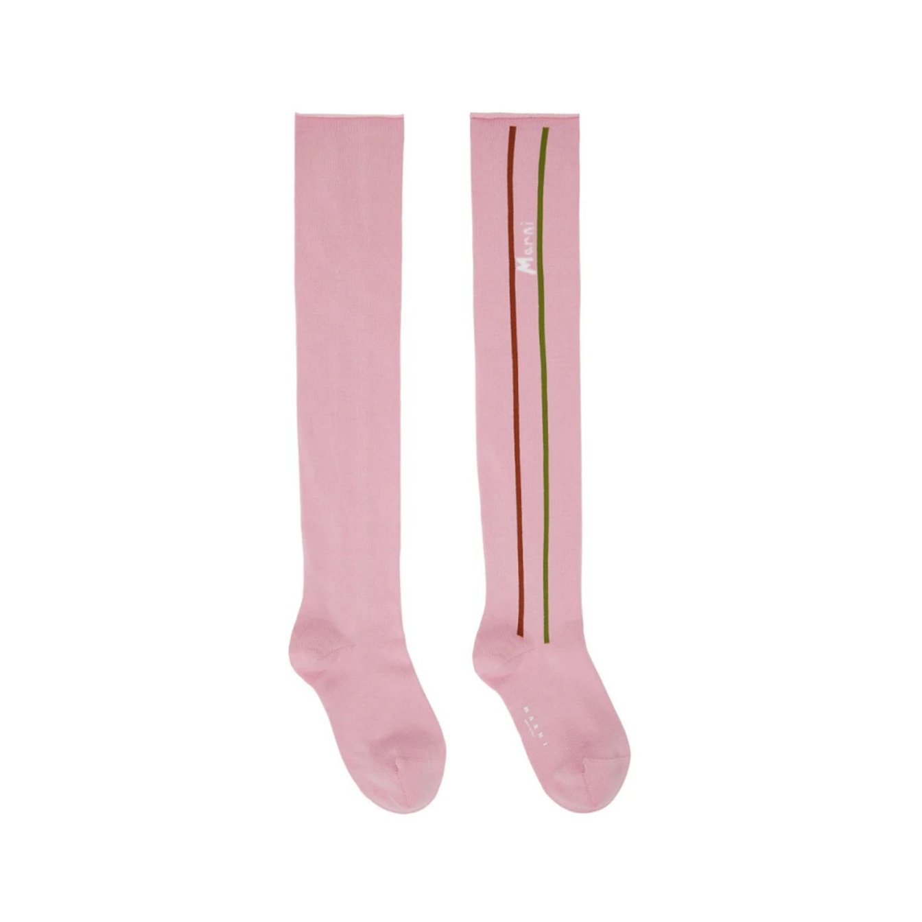今季トレンドのミニ丈ボトムと合わせたい「マルニ(MARNI)」のニーハイソックス。ラフに惹かれたラインとブランドネームがサイドにあしらわれているので、足をスッキリと見せてくれます。