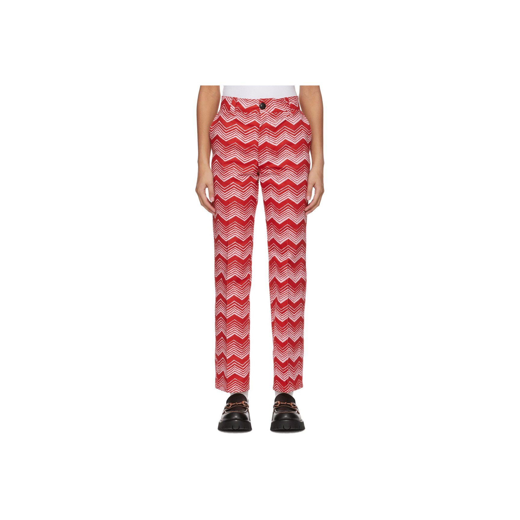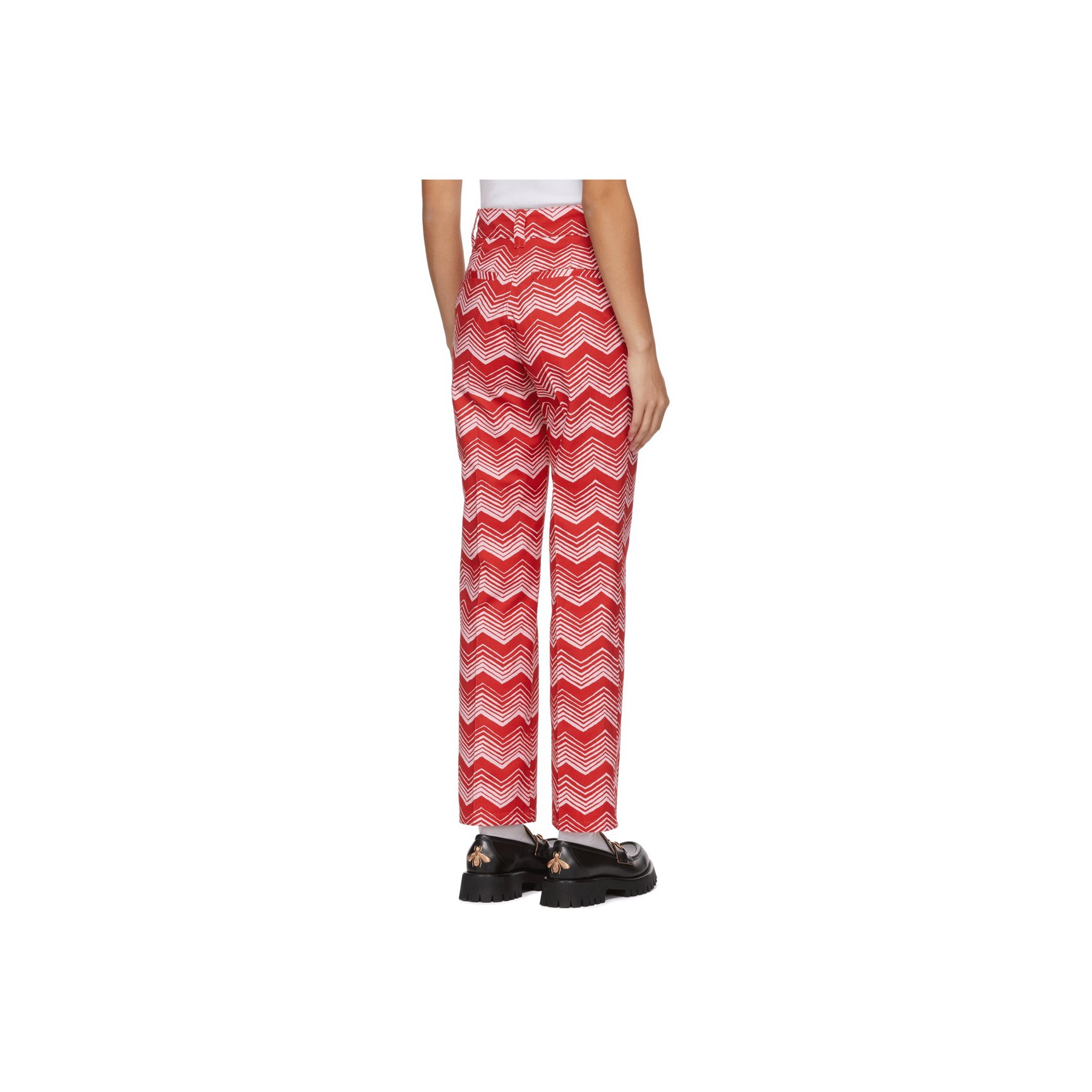 センタープレスがクラシックなクロップド丈のストレートパンツは、レッド×ピンクのポップなシェブロンパターンで遊び心あふれる仕上がりに。