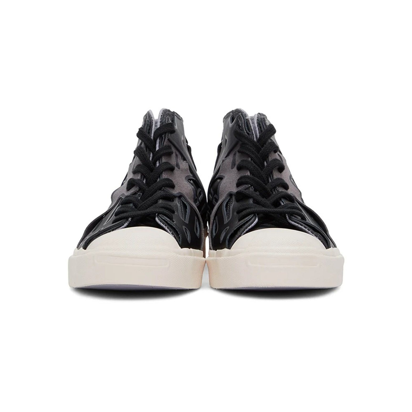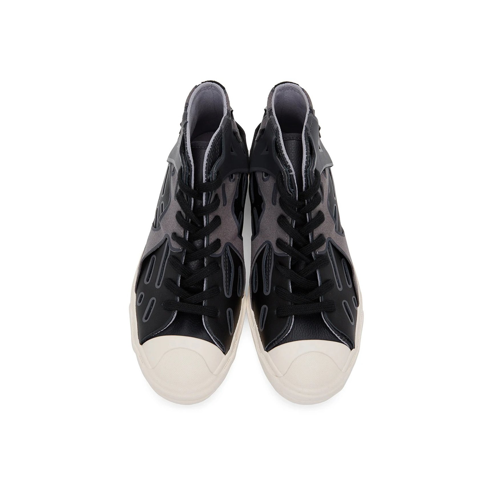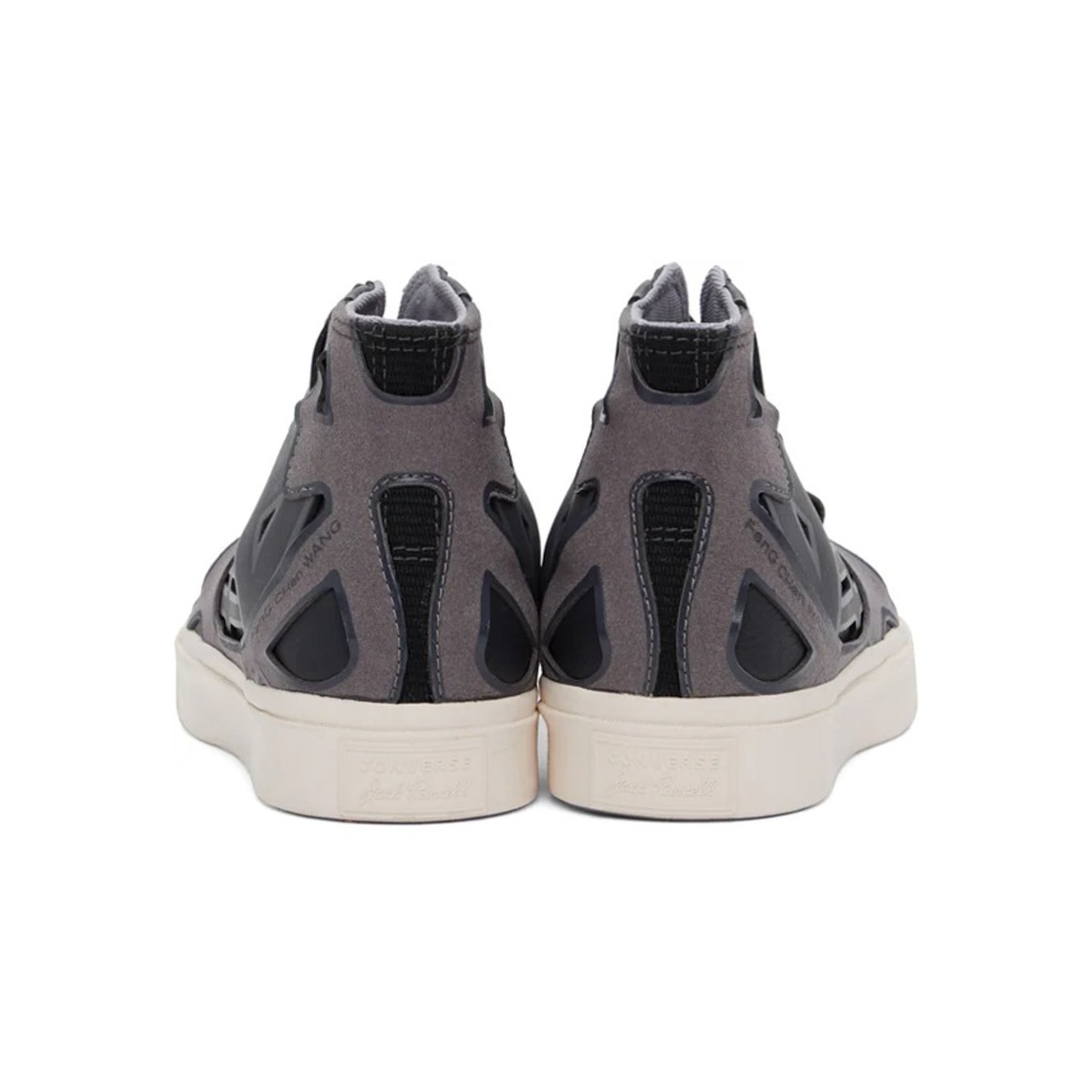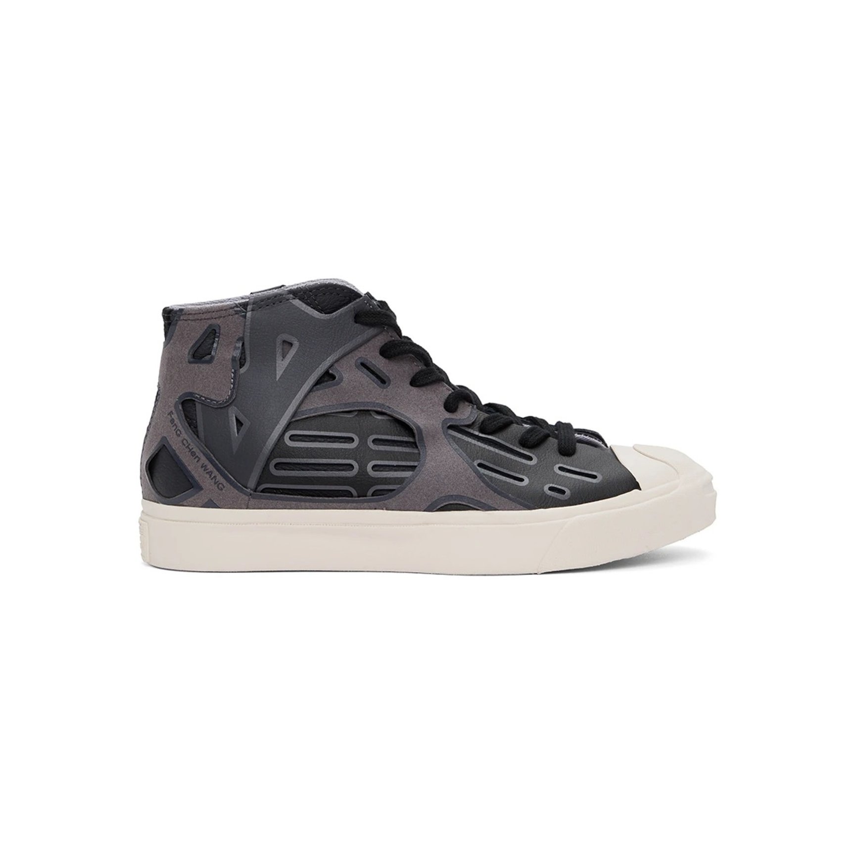コンバースとフェン?チェン?ワンの限定コラボレーションからもう一足。こちらも定番モデルのジャックパーセルがベースです。何層にも重なったグレー&ブラックのカットアウトレザーが近未来的な雰囲気で新鮮。周囲と差をつけられること間違いなし。
