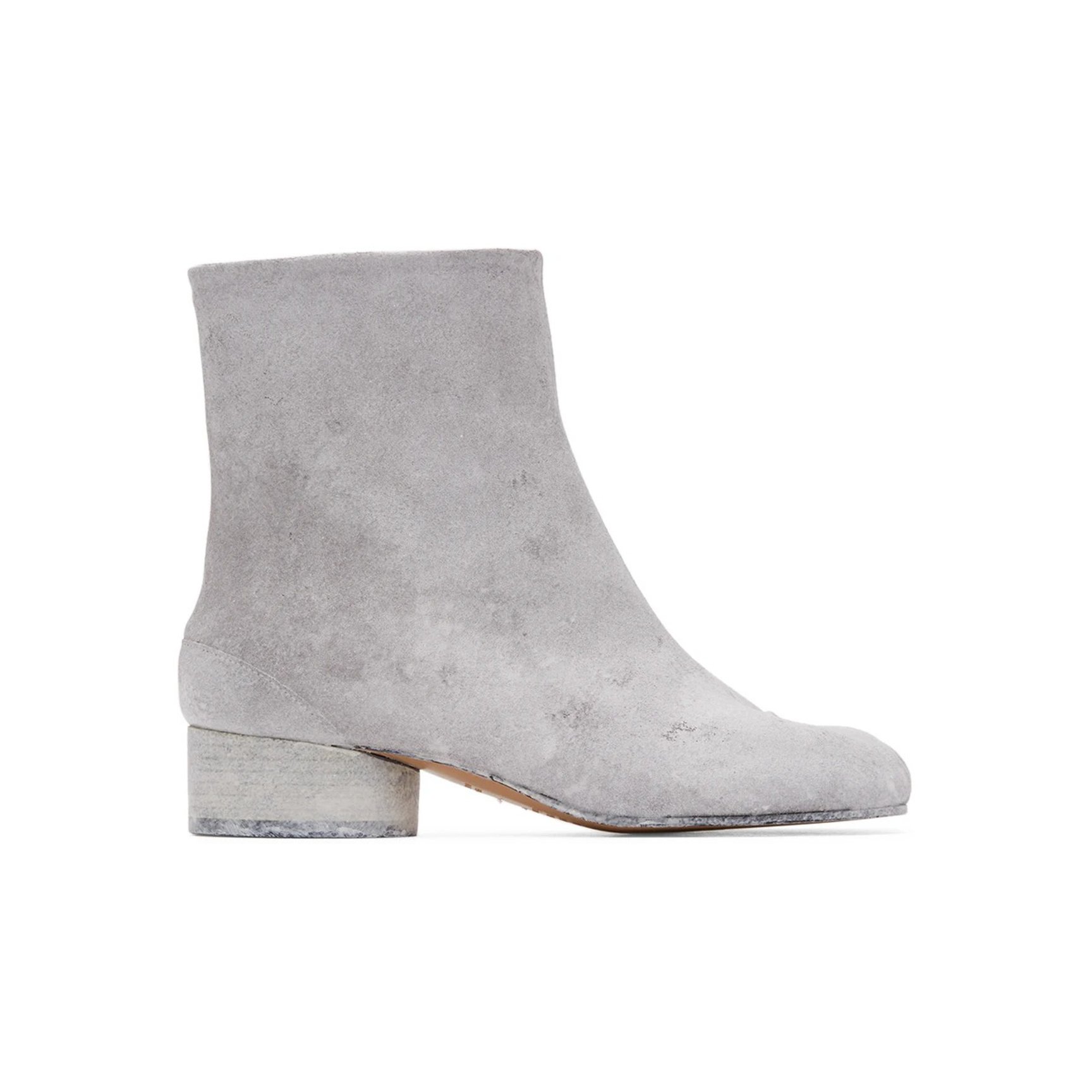 ファッショニスタマストハブの「メゾン?マルジェラ(Maison?Margiela)」の'Tabi'ブーツのSSENSE限定モデルが登場。スエードレザーに、ホワイトのペイントデザインによる独特の味わい深い風合いがポイント。ヒール高はロータイプの3cm。冬らしい、クールな色合いのブーツをお見逃しなく。