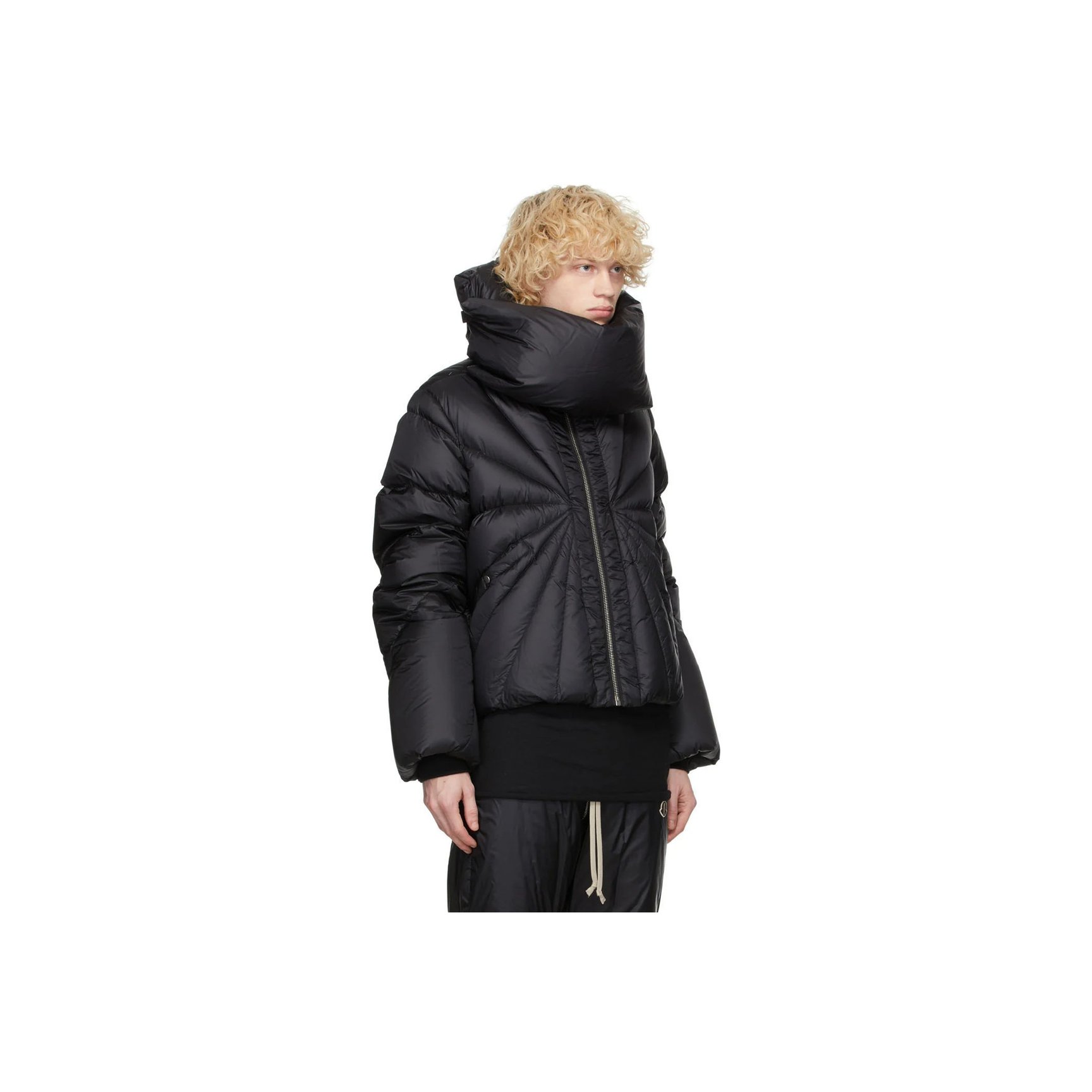 「リック?オウエンス(Rick?Owens)」と「モンクレール(MONCLER)」コラボレーションアイテムも多数ラインナップ。こちらのブラックのダウンジャケットは、放射状のキルティングが珍しいアイテム。首元をすっぽり覆ってくれるので、マフラーいらずの暖かさ。