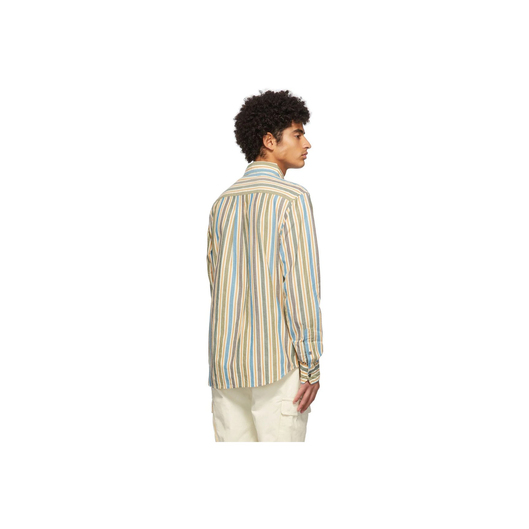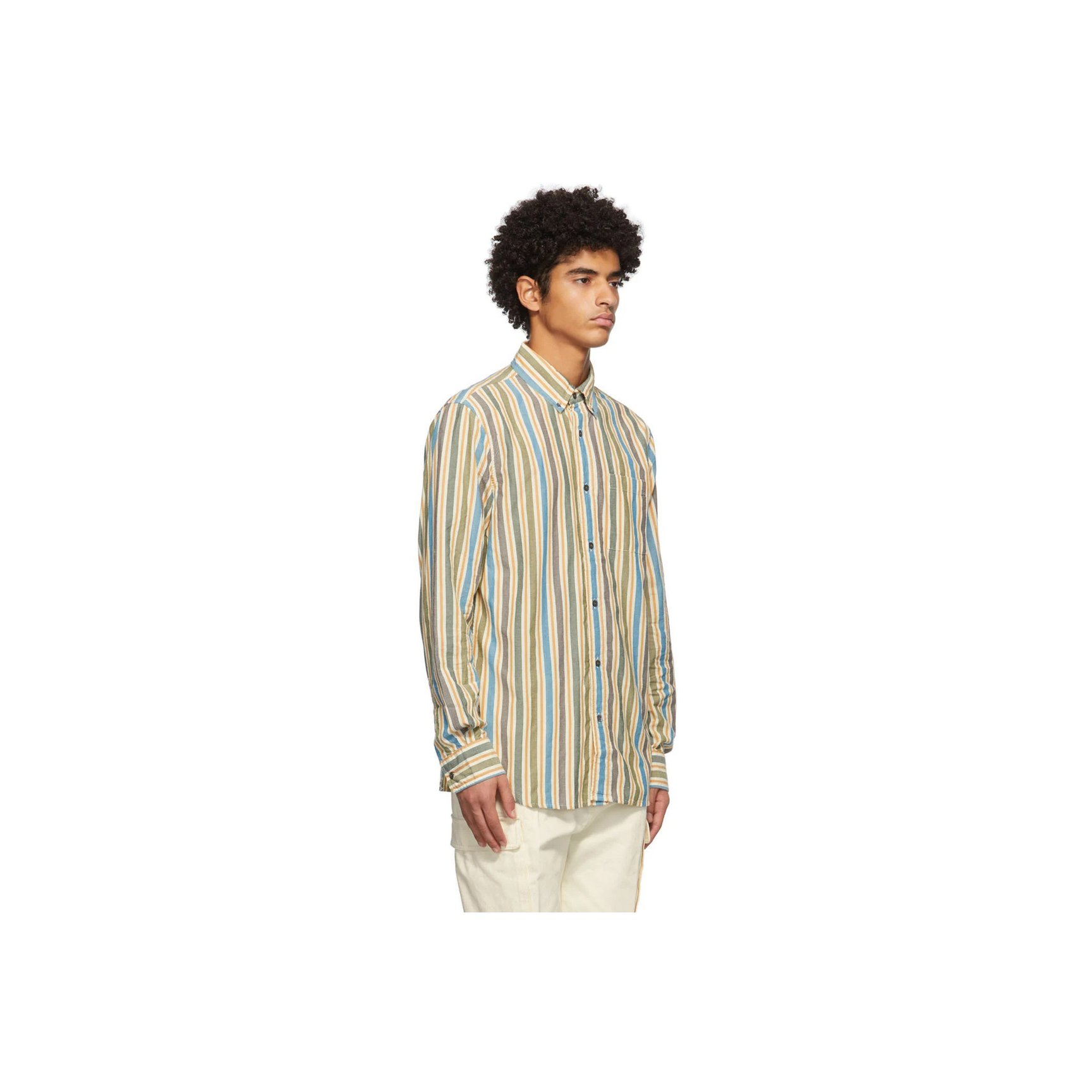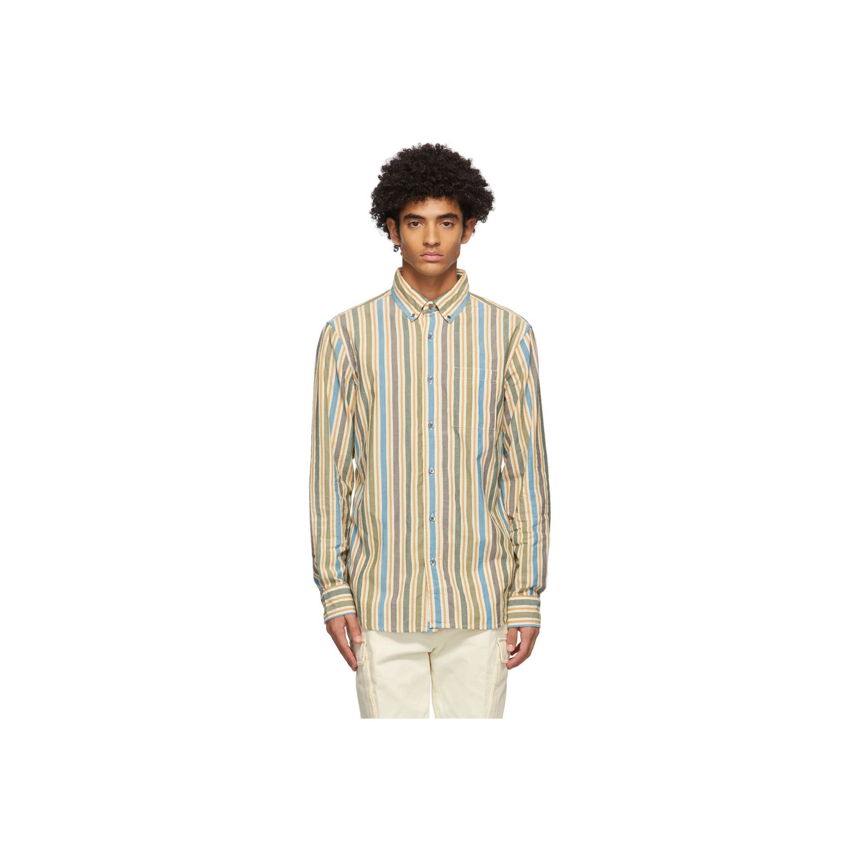 ニューヨーク発「エメ?レオン?ドレ(Aime??Leon?Dore)」のマルチカラーストライプのシャツ。少し色あせたようなブルー?グリーン?イエローの組み合わせがヴィンテージ風の味合い。ソフトなオックスフォード素材です。