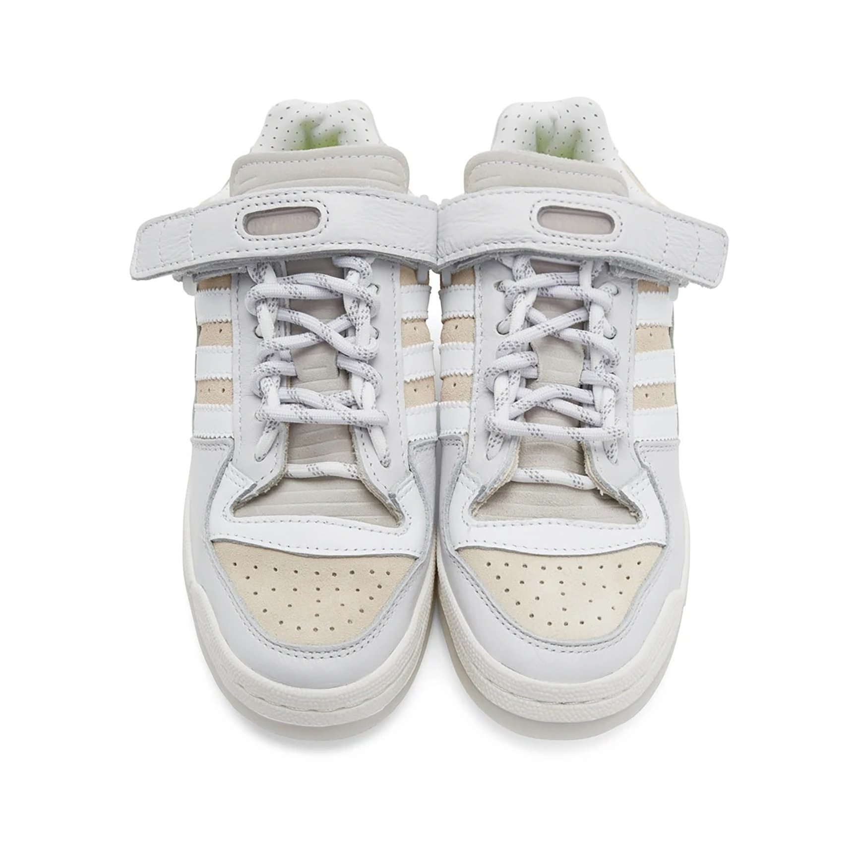 こちらも同じく「Forum」モデルをベースにしたローカットのホワイトスニーカーです。2トーンのホワイトが組み合わされています。先程のミドルカットのモデルと異なるのは、実はカラーとカットだけではないのです。よく見ると、パーツ配置なども微妙に異なり、それぞれの個性が楽しめます。自分のスタイルに合うほうの一足を選んでみては。