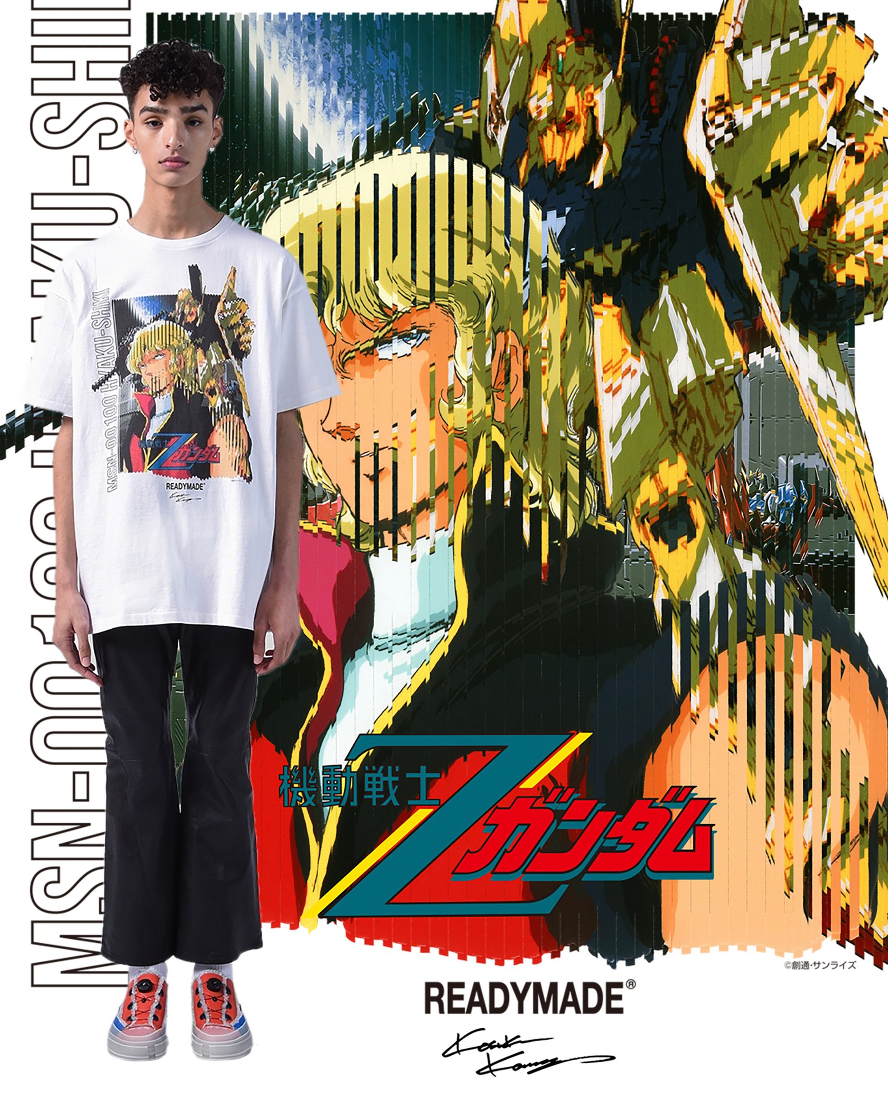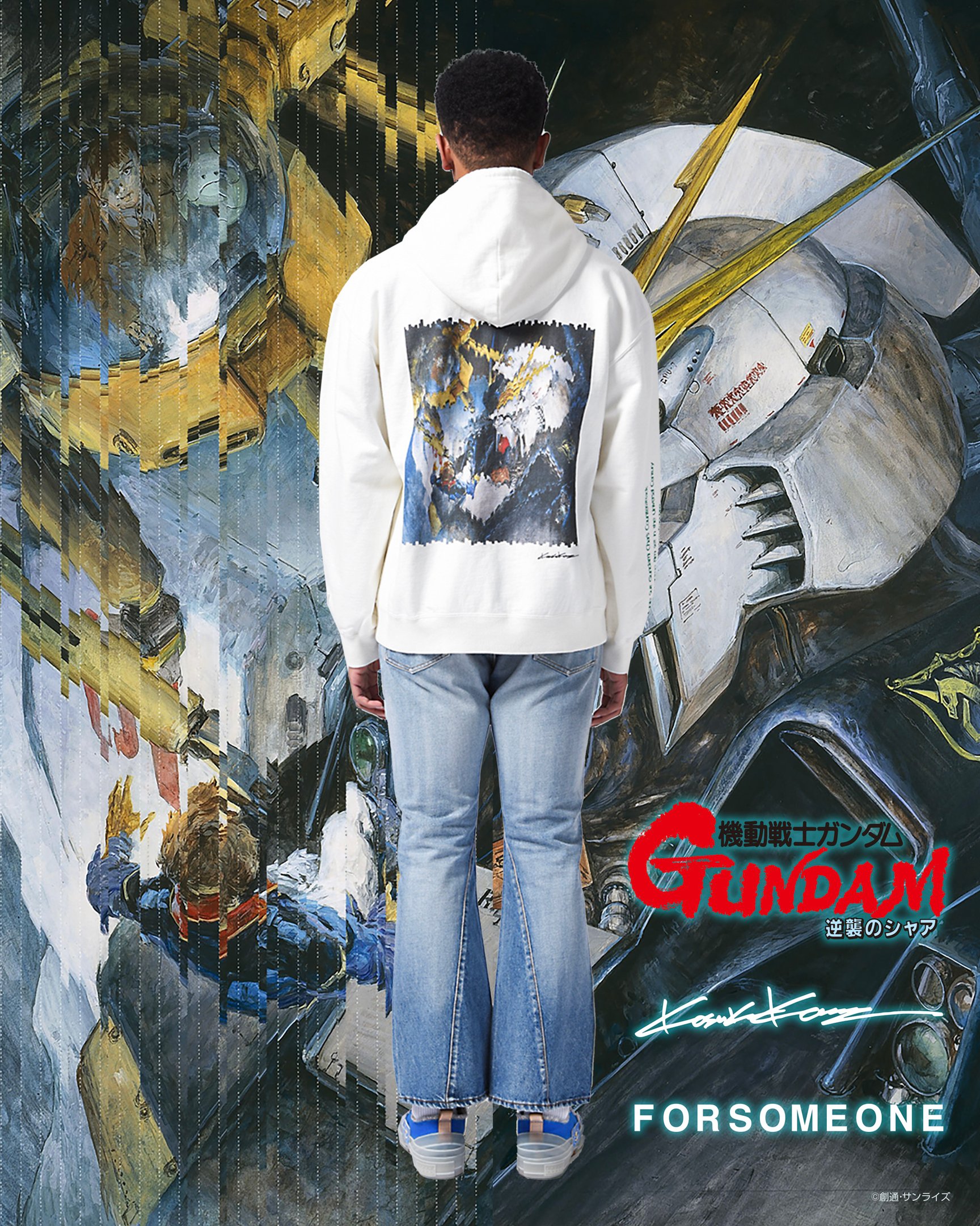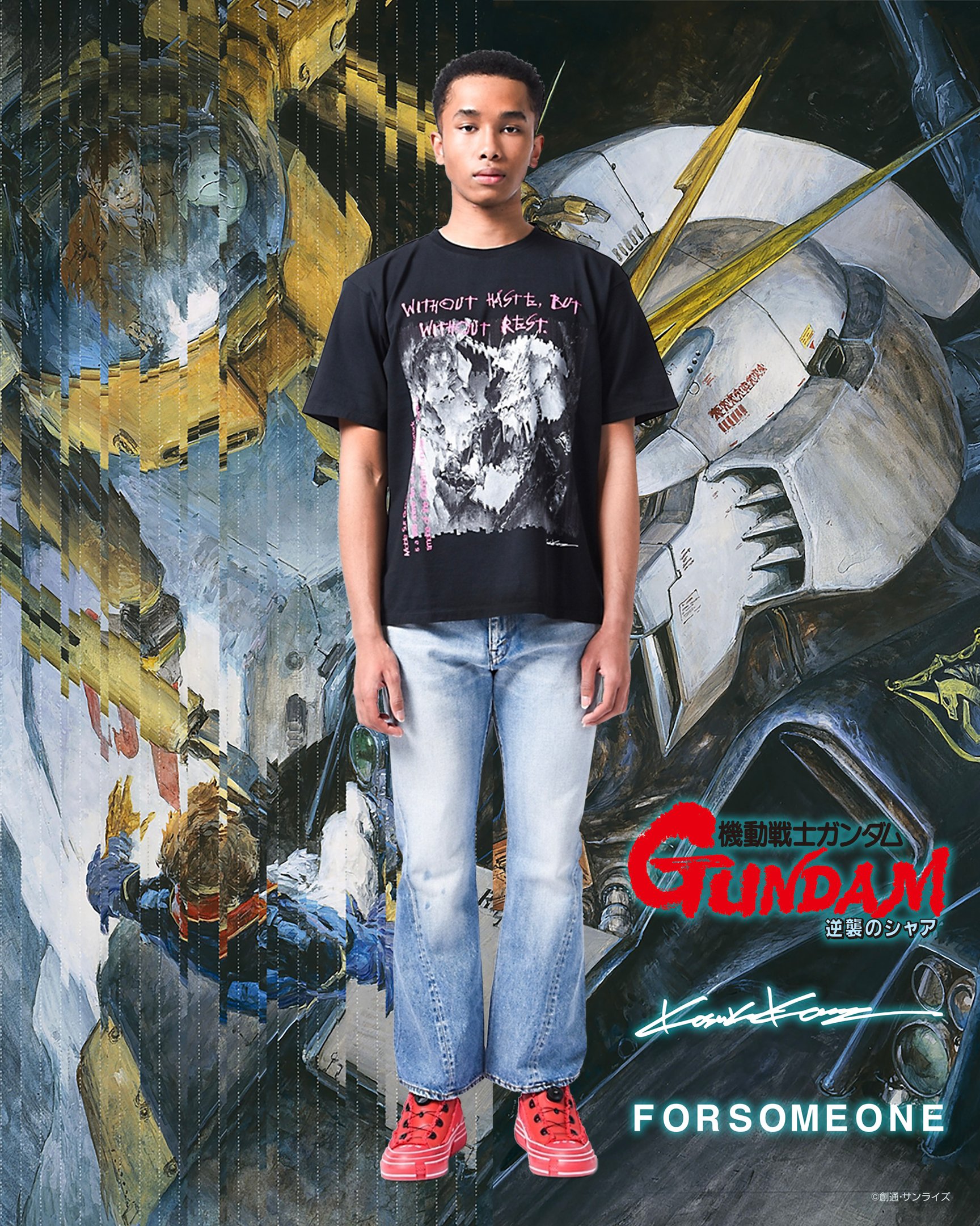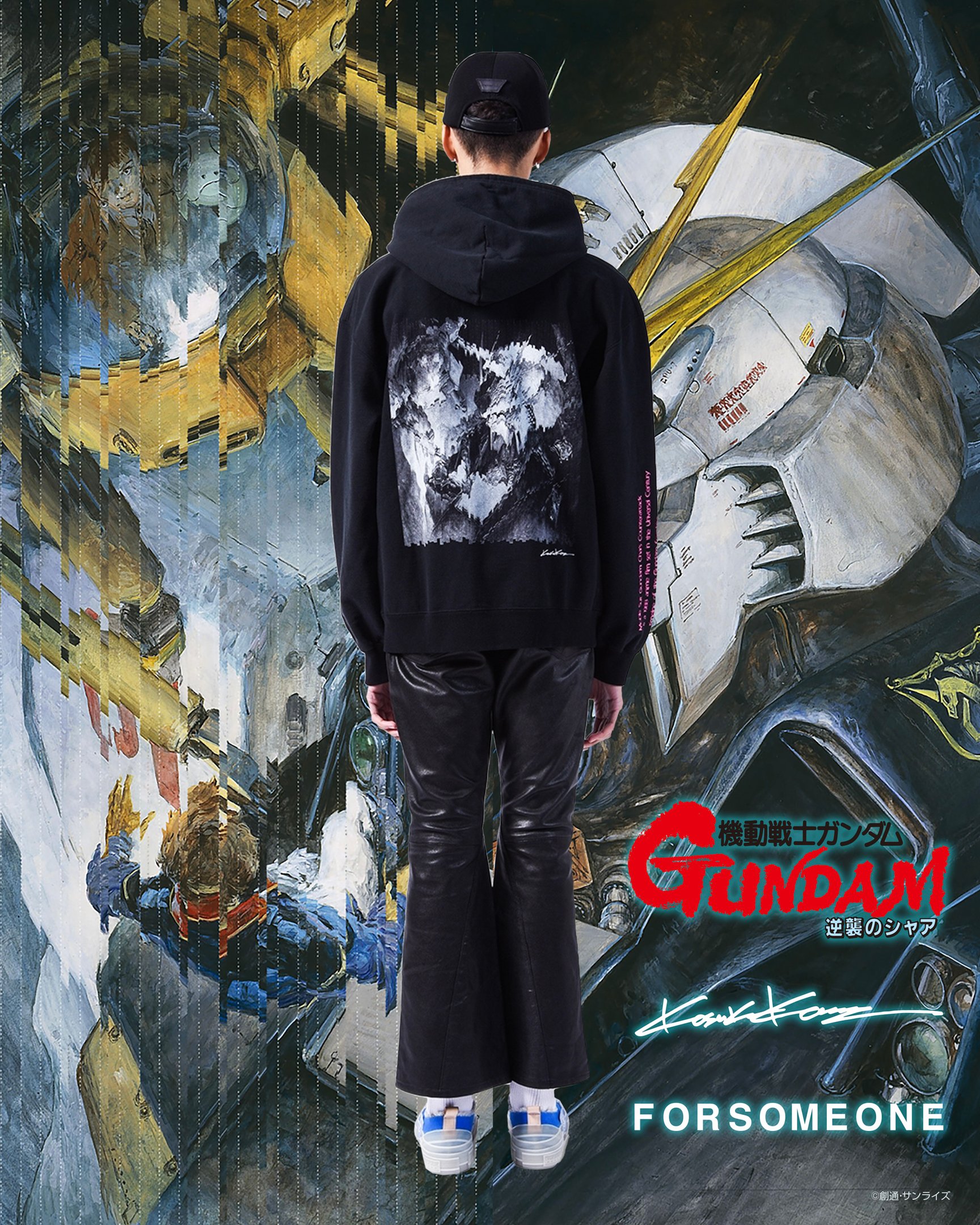 「機動戦士ガンダム」とコラージュアーティストの河村康輔がコラボ。「機動戦士ガンダム」シリーズのイラストを河村がコラージュしたアートワークを用いて「レディメイド(READYMADE)」「ヴェセル(xVESSEL)」「ポギーザマン(POGGYTHEMAN)」「フォーサムワン(FORSOMEONE)」の4ブランドからコラボアイテムを発売します。レディメイドはアニメのシーンをプリントした3枚セットのパックTシャツ(4万4000円)、ヴェセルはRX-78-2ガンダムとシャア専用ザクをイメージしたスニーカー(2色展開、4万4000円)、ポギーザマンはフォーサムワンとの共作で、テーラードの内側と外側にグラフィックを施したジャケット2型(11万円、13万2000円)をラインナップ。フォーサムワンはホワイトとブラックの2色展開のTシャツ(1万6500円)とフーディー(2万9700円)、アナーキーシャツ(4万9500円/いずれも税込)を展開します。フォーサムワンや2G TOKYO、公式オンラインストアなどで取り扱われます。