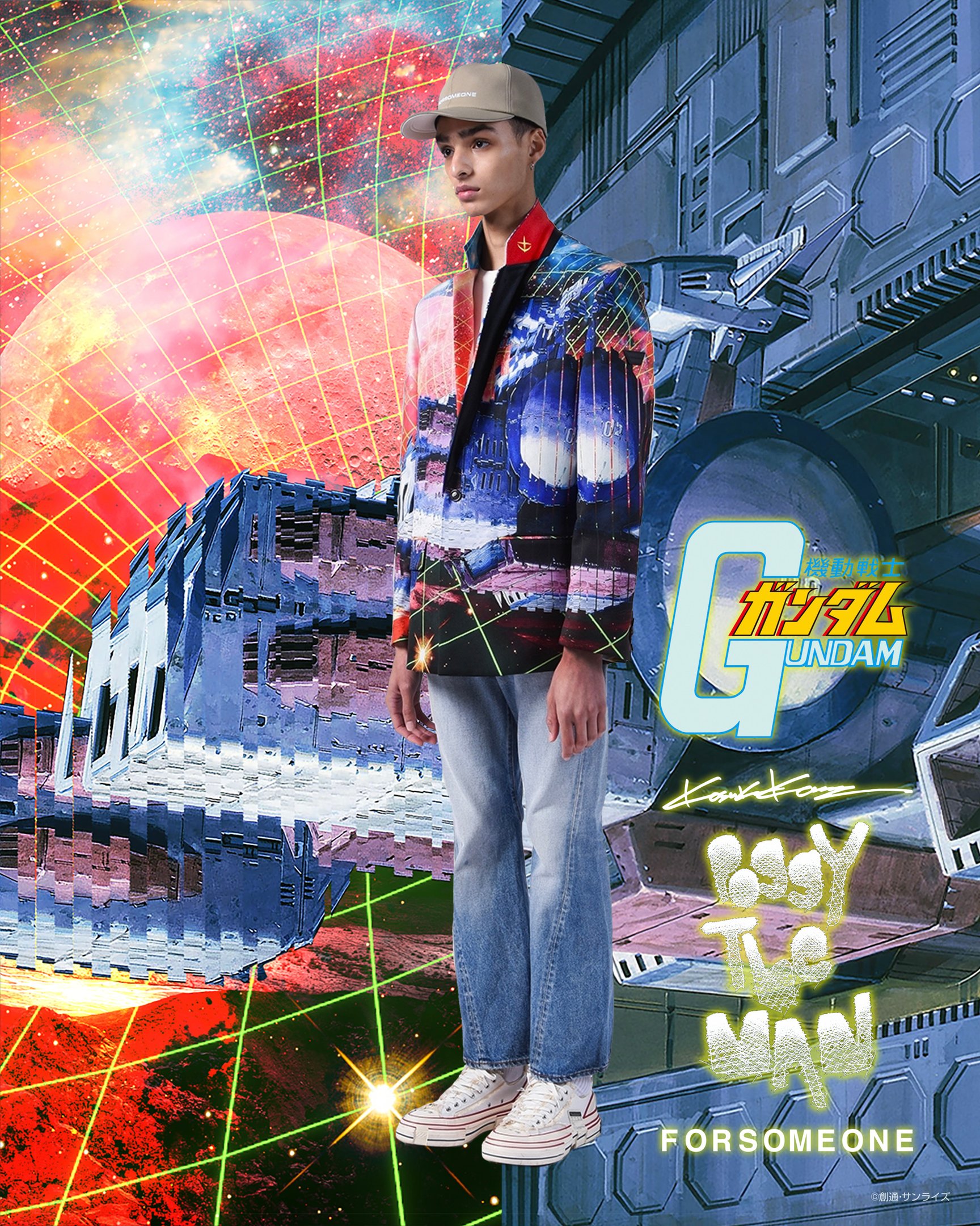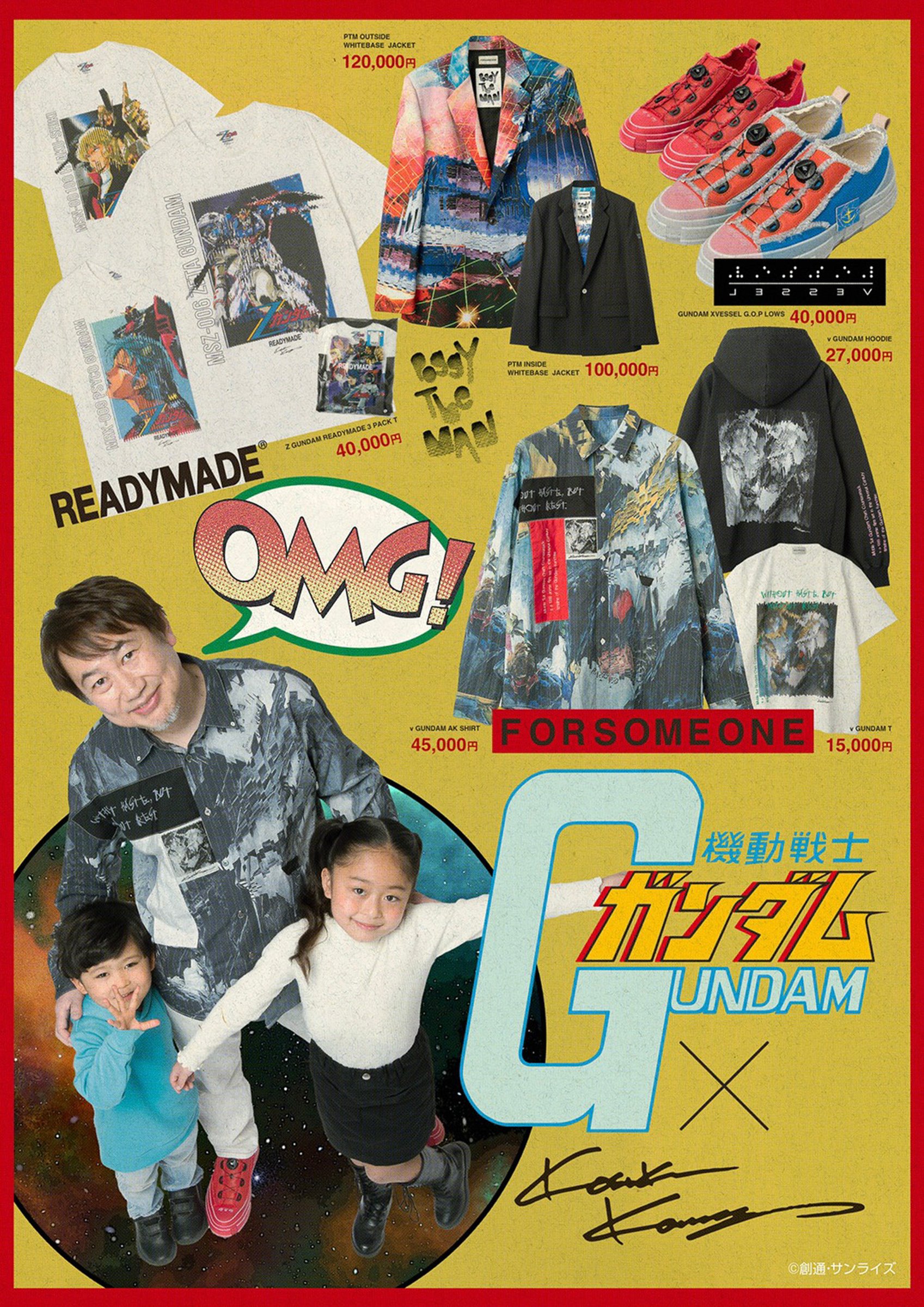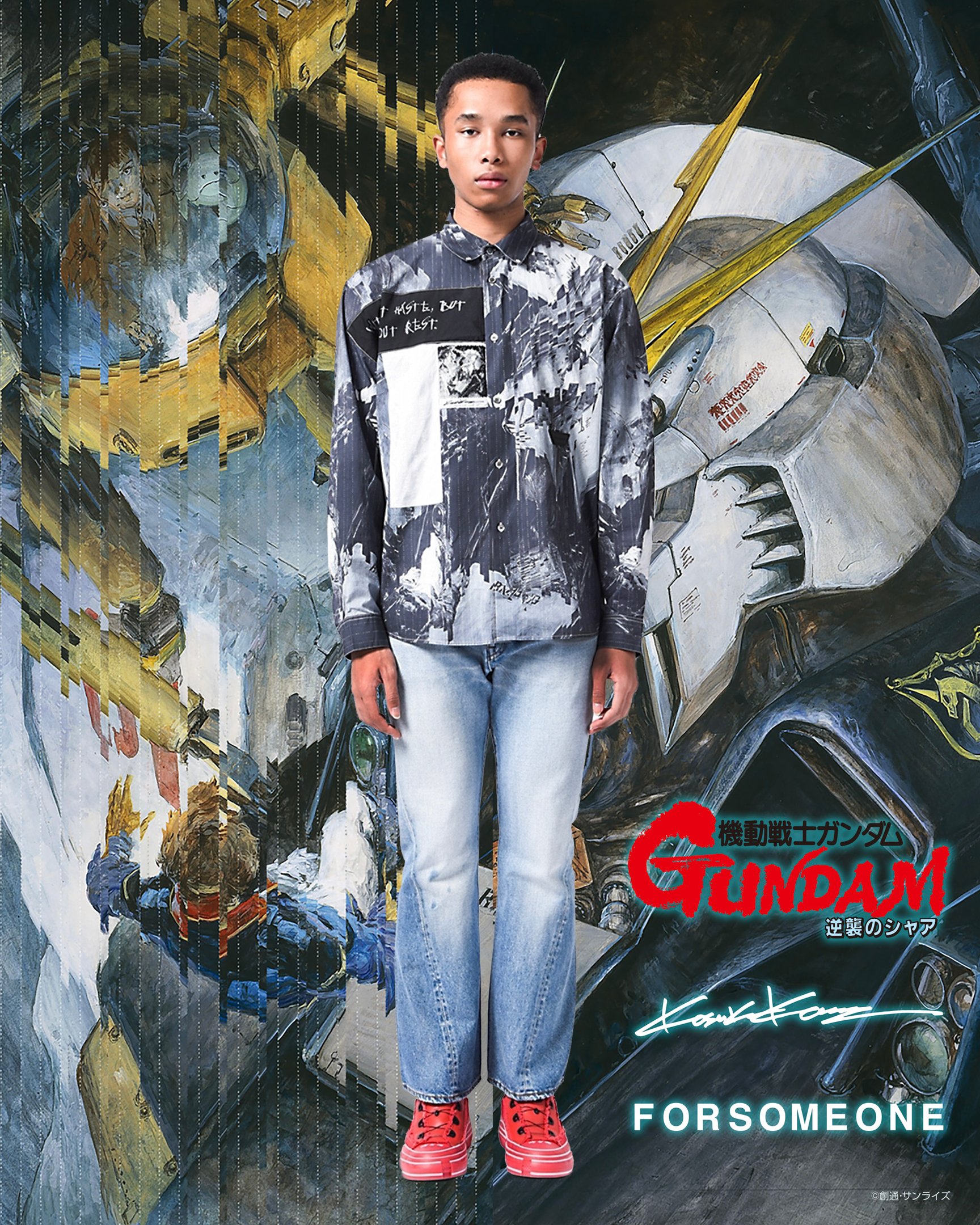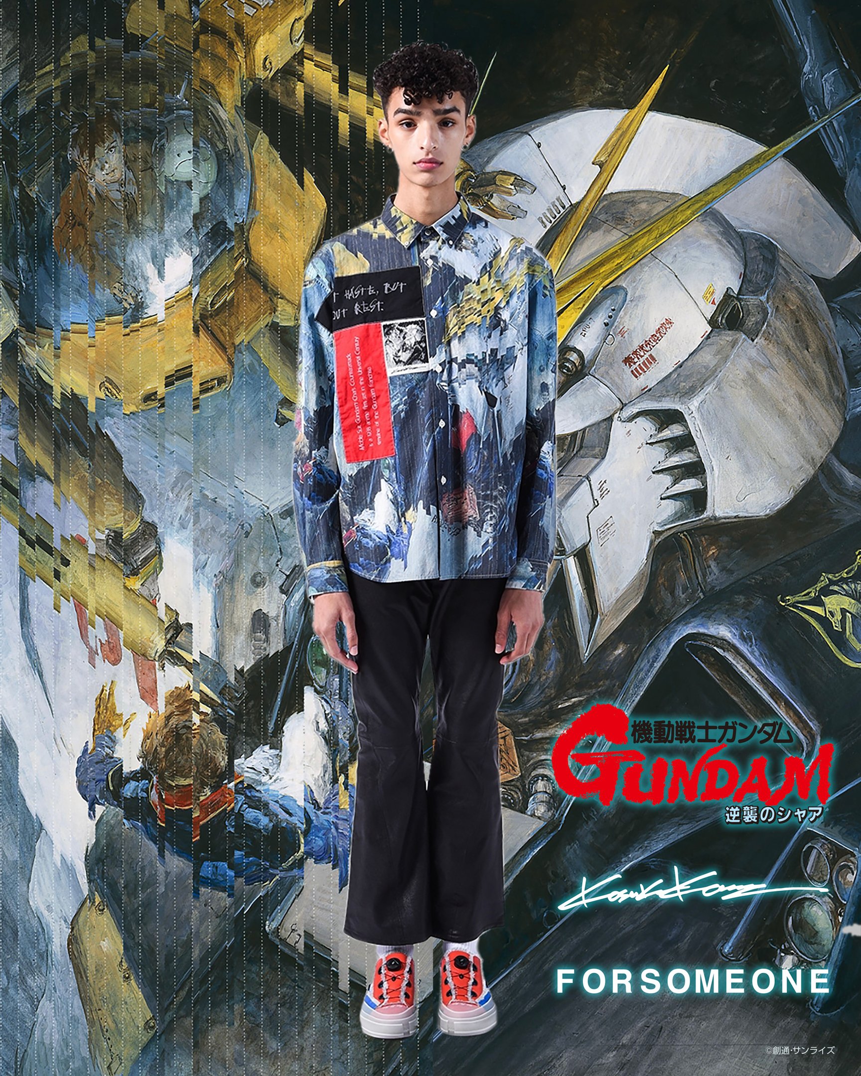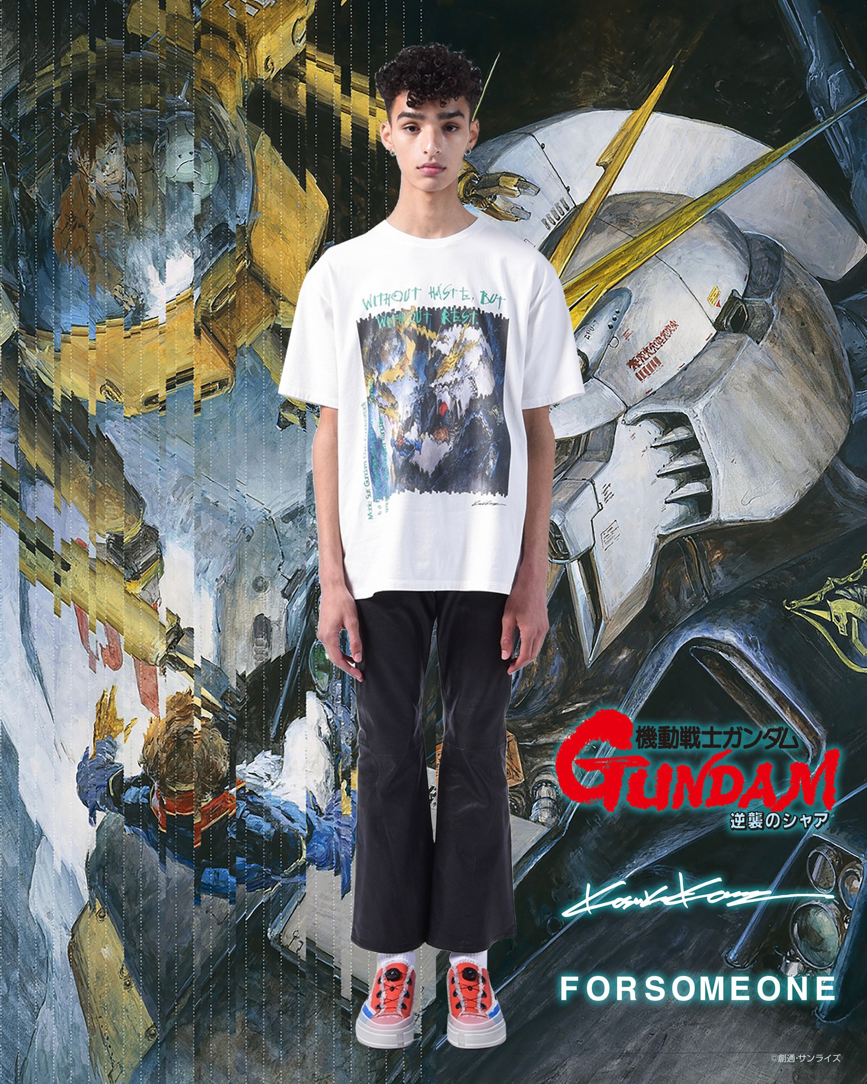 「機動戦士ガンダム」とコラージュアーティストの河村康輔がコラボ。「機動戦士ガンダム」シリーズのイラストを河村がコラージュしたアートワークを用いて「レディメイド(READYMADE)」「ヴェセル(xVESSEL)」「ポギーザマン(POGGYTHEMAN)」「フォーサムワン(FORSOMEONE)」の4ブランドからコラボアイテムを発売します。レディメイドはアニメのシーンをプリントした3枚セットのパックTシャツ(4万4000円)、ヴェセルはRX-78-2ガンダムとシャア専用ザクをイメージしたスニーカー(2色展開、4万4000円)、ポギーザマンはフォーサムワンとの共作で、テーラードの内側と外側にグラフィックを施したジャケット2型(11万円、13万2000円)をラインナップ。フォーサムワンはホワイトとブラックの2色展開のTシャツ(1万6500円)とフーディー(2万9700円)、アナーキーシャツ(4万9500円/いずれも税込)を展開します。フォーサムワンや2G TOKYO、公式オンラインストアなどで取り扱われます。