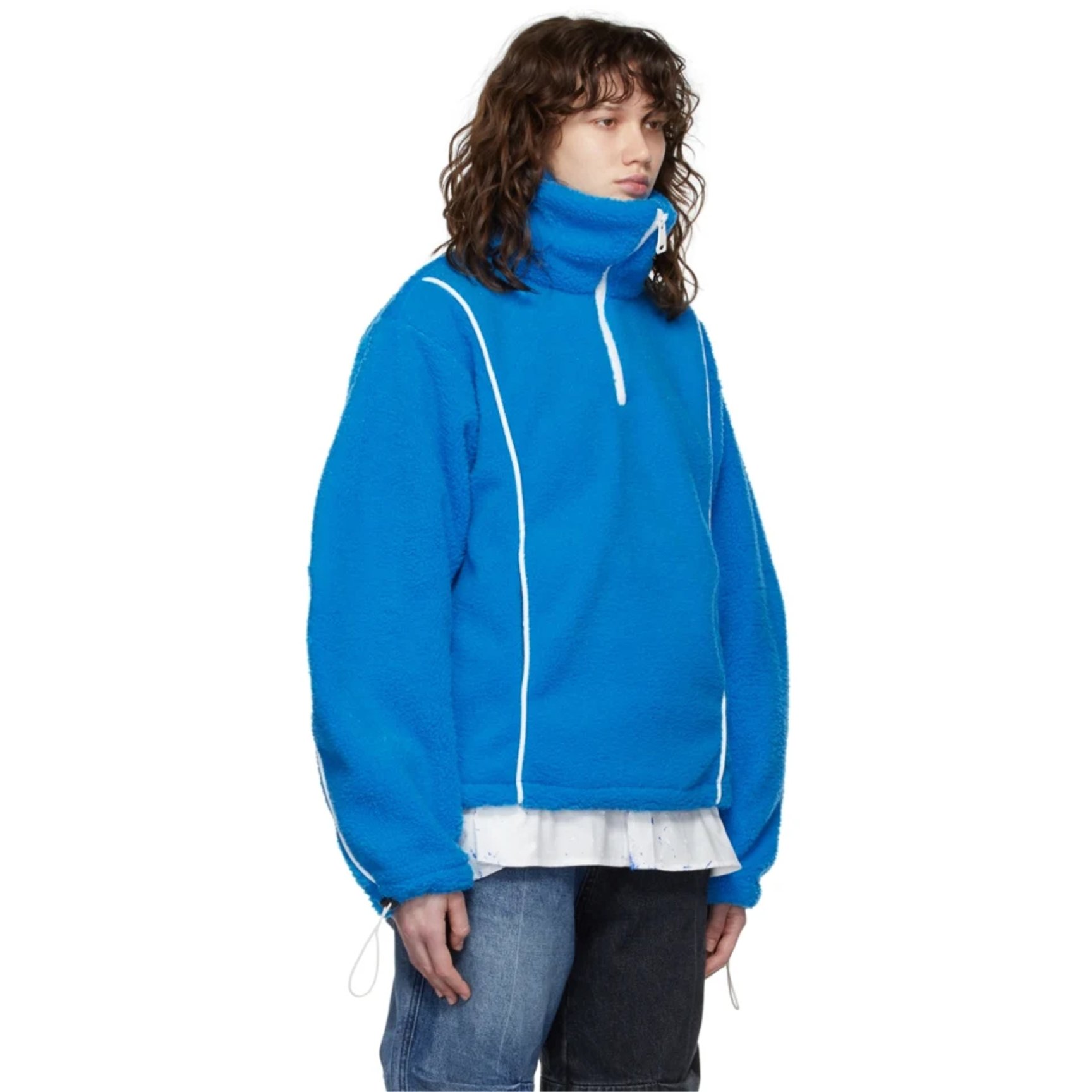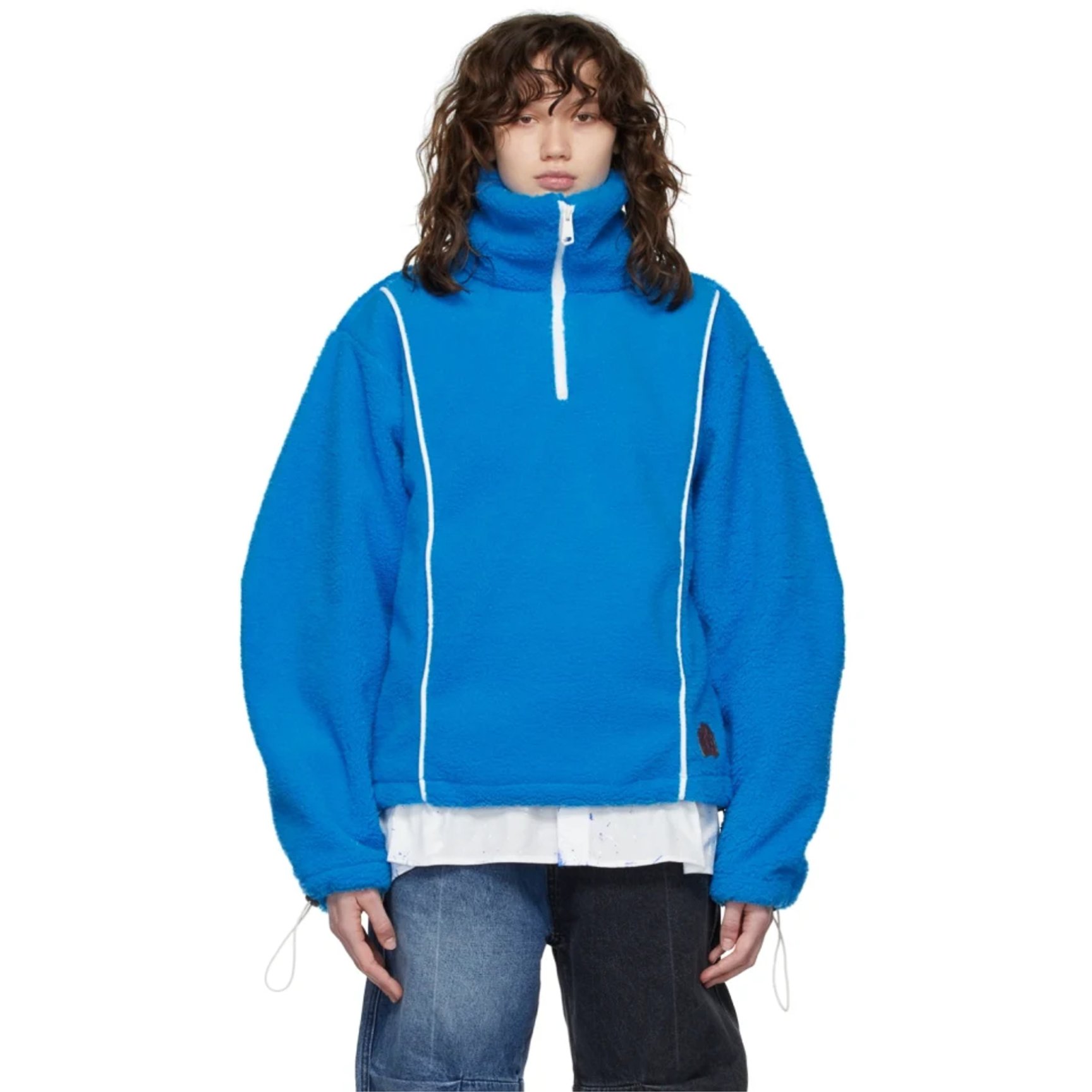 韓国のクリエイター集団が集まった注目ブランド「アーダーエラー(ADER ERROR)」のオーバーシルエットトップス。柔らかくふわっと体を覆うシェルパフリースをパネル仕立てにし、ホワイトのパイピングでスポーティなエッセンスをプラス。目を引くブルーが爽やかな印象のトップスは、アウターとしても活躍してくれます。
