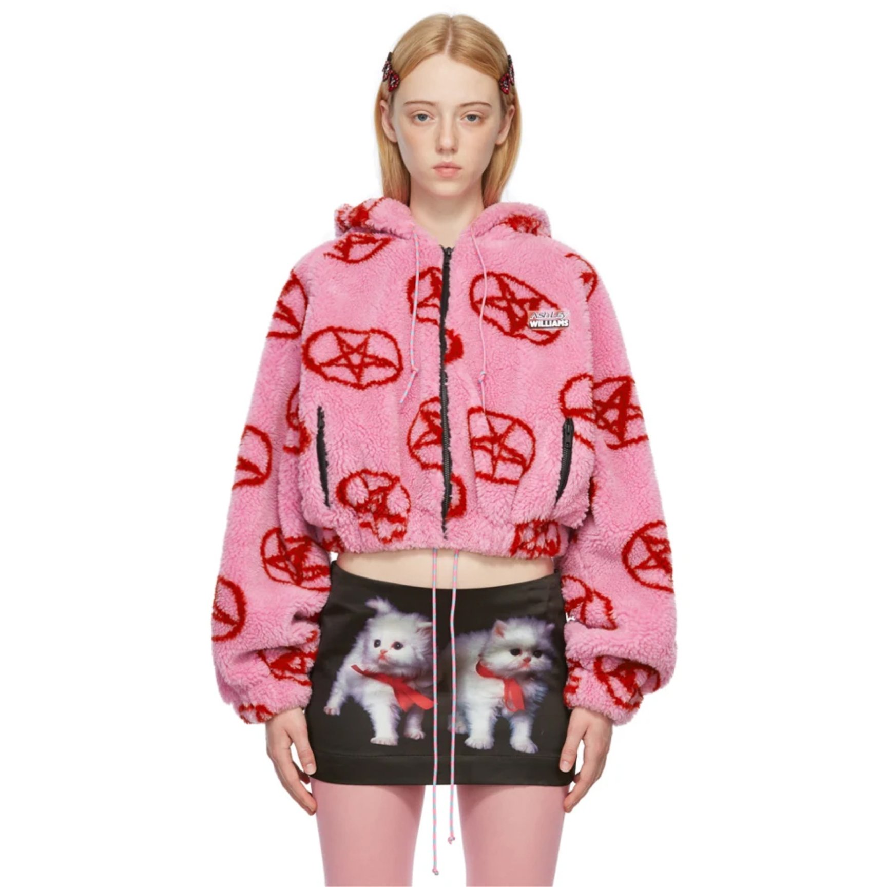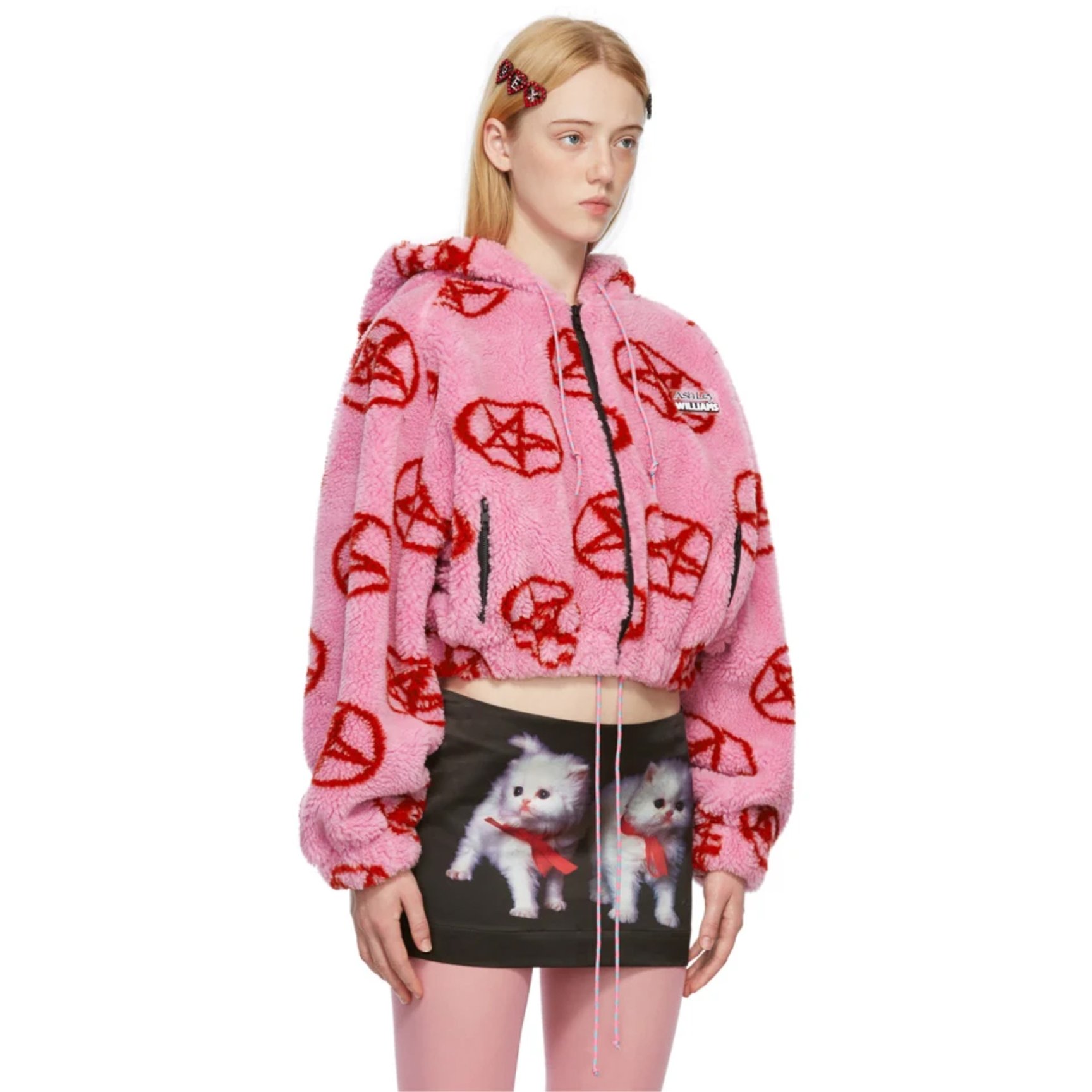 ポップでキュートなデザインを得意とする、新進気鋭なイギリスのブランド「アシュリー ウィリアムズ(ASHLEY WILLIAMS)」から、インパクトのあるグラフィック模様を散りばめた、もこもことしたシェルパフリース素材の主役級フーディをご紹介。スタイルアップが叶うショート丈のアイテムで、トレンドのY2Kファッションを謳歌しましょう。