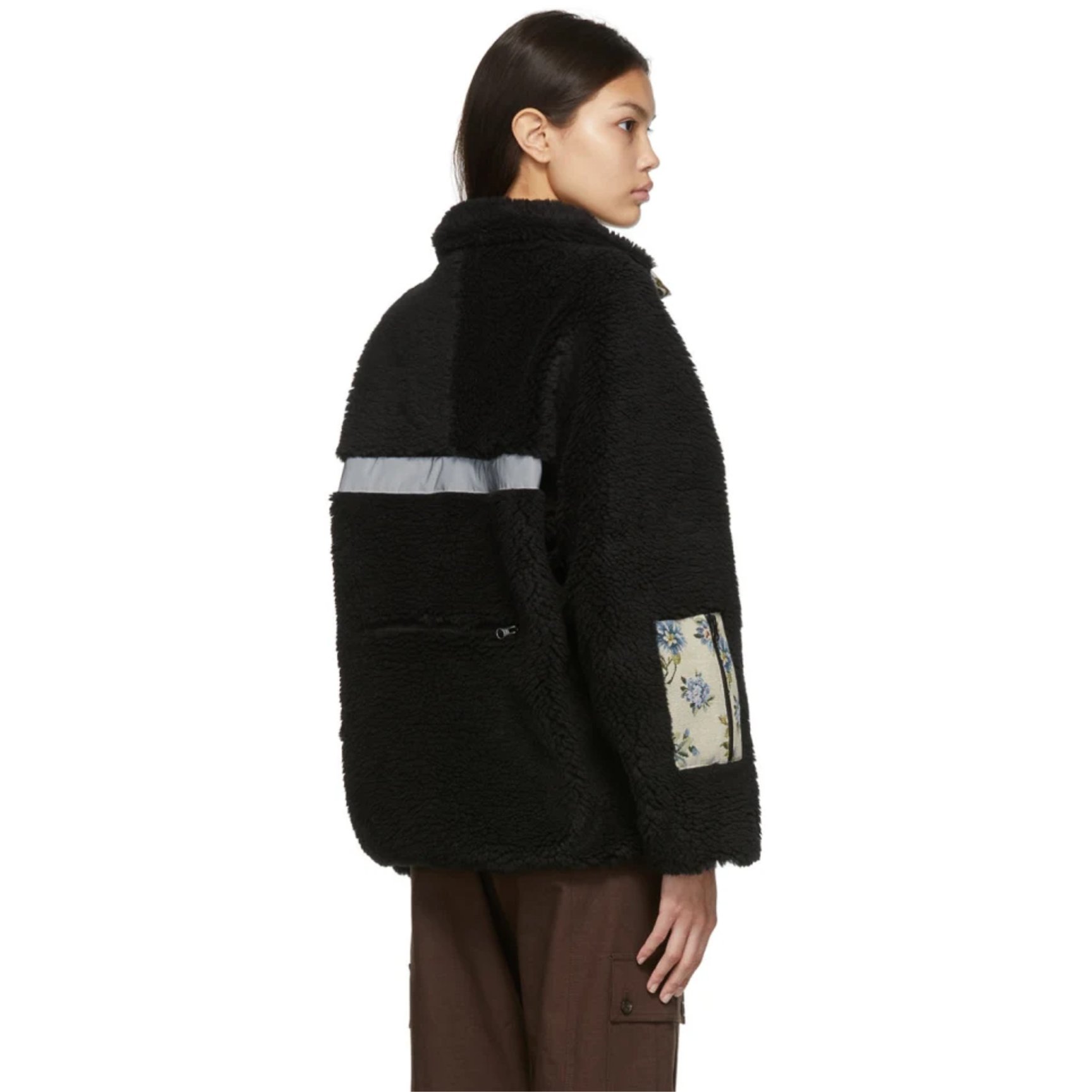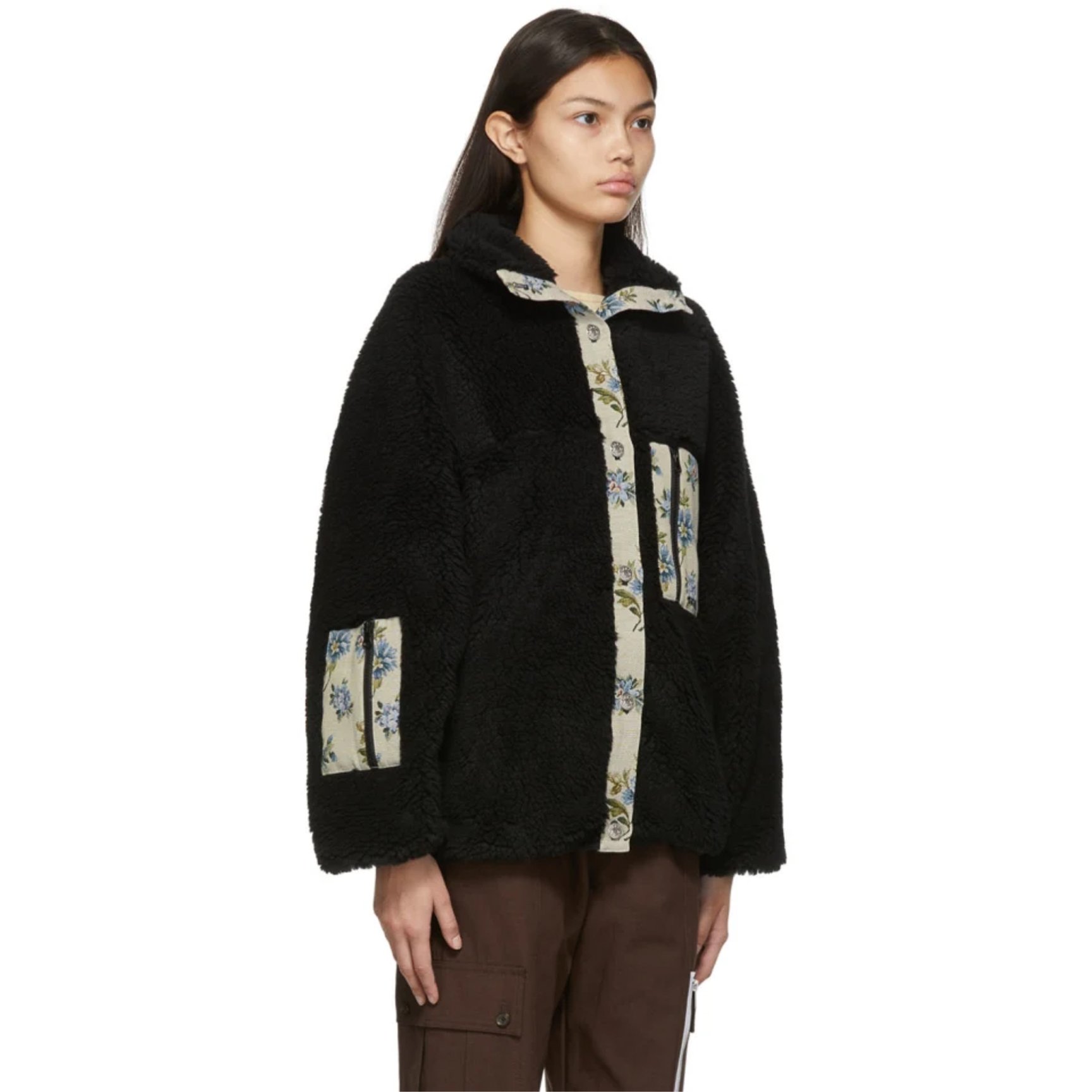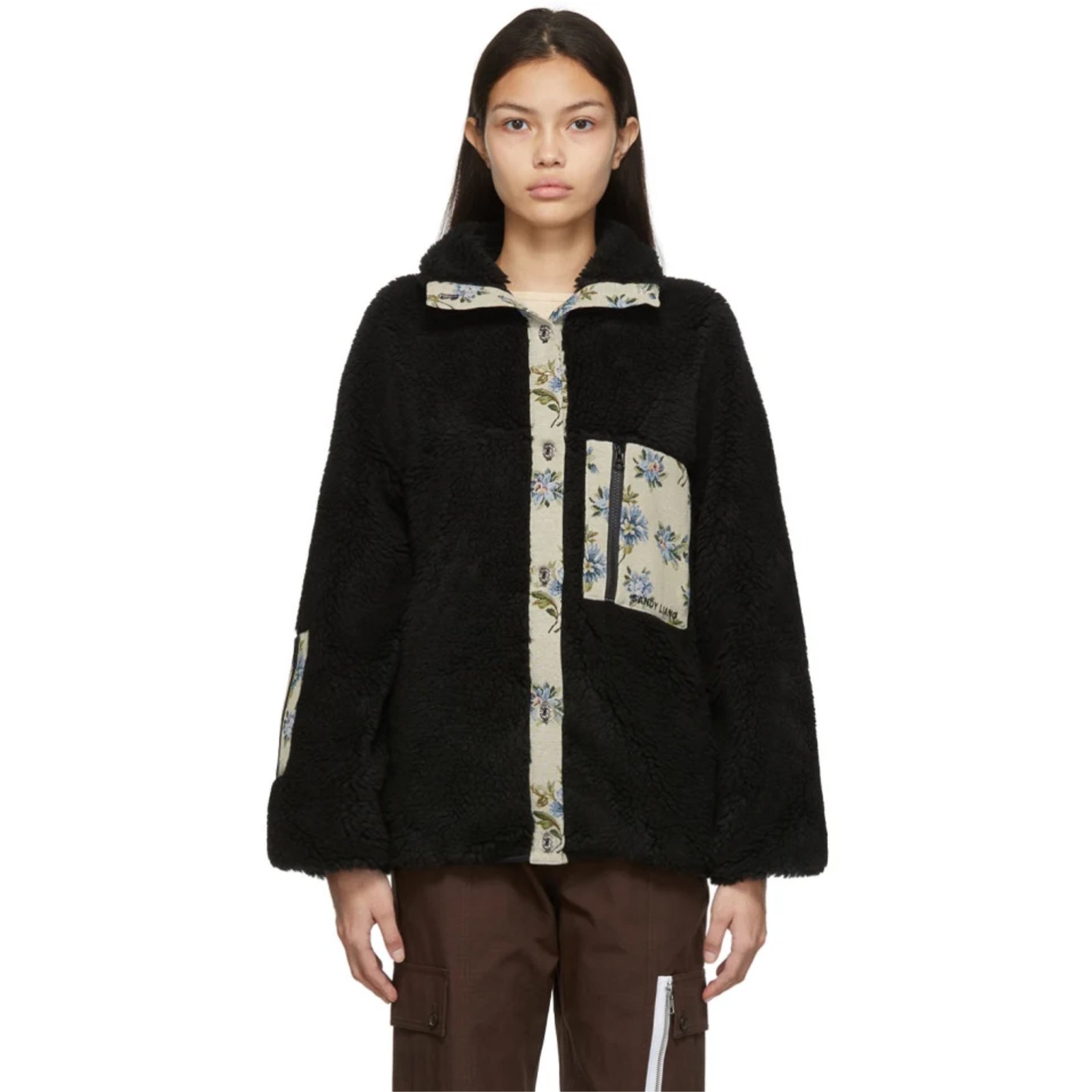 エッジを効かせたフェミニンなウエアを展開する、NY発「サンディー?リアン(Sandy Liang)」のフリースジャケット。環境に配慮した再生イタリアンフリース素材のジャケットに、ジャガード織りのフローラルファブリックでアクセントをオン。胸元と袖、さらに背面に便利なジップポケットを配した、遊び心と実用性を兼ね備えた一着です。