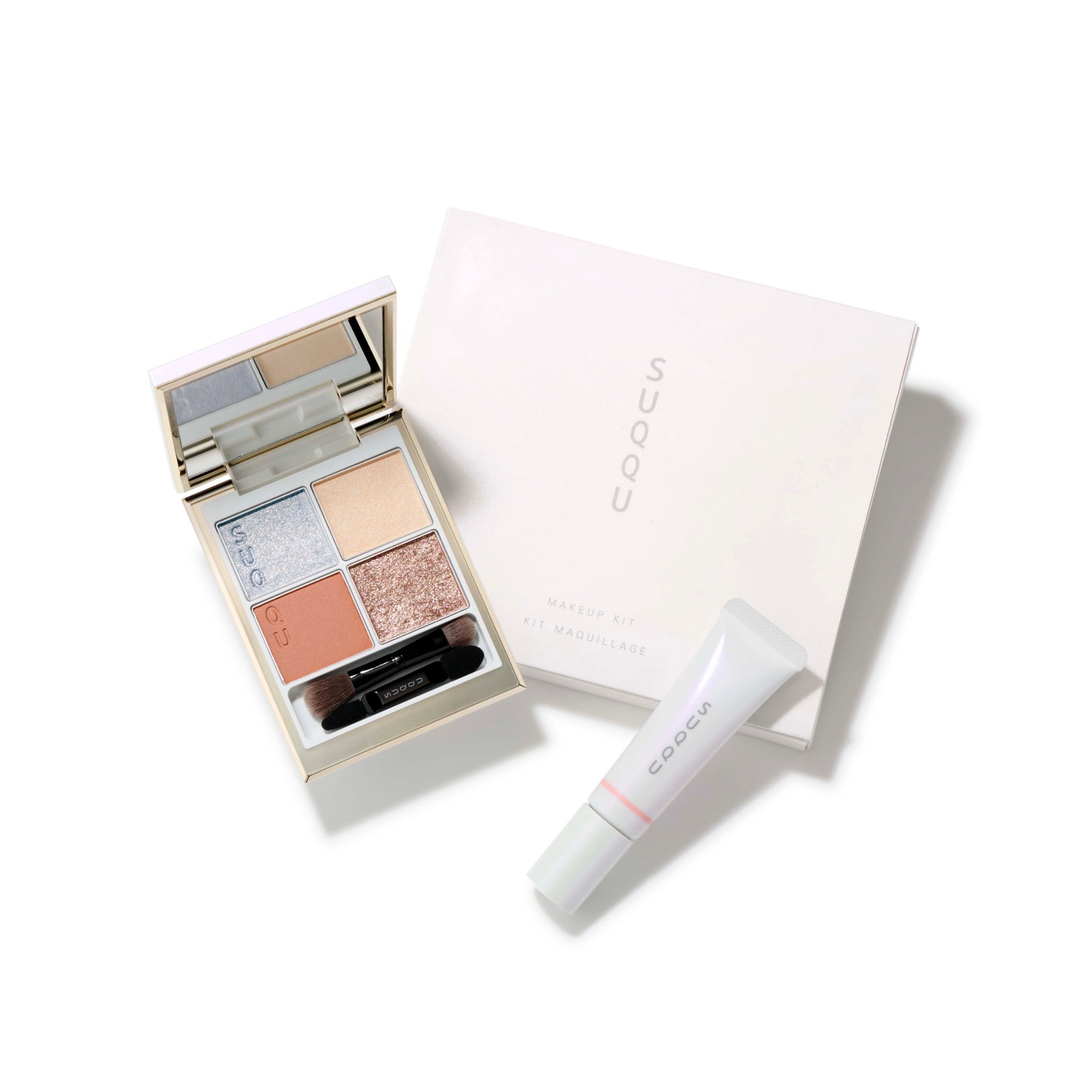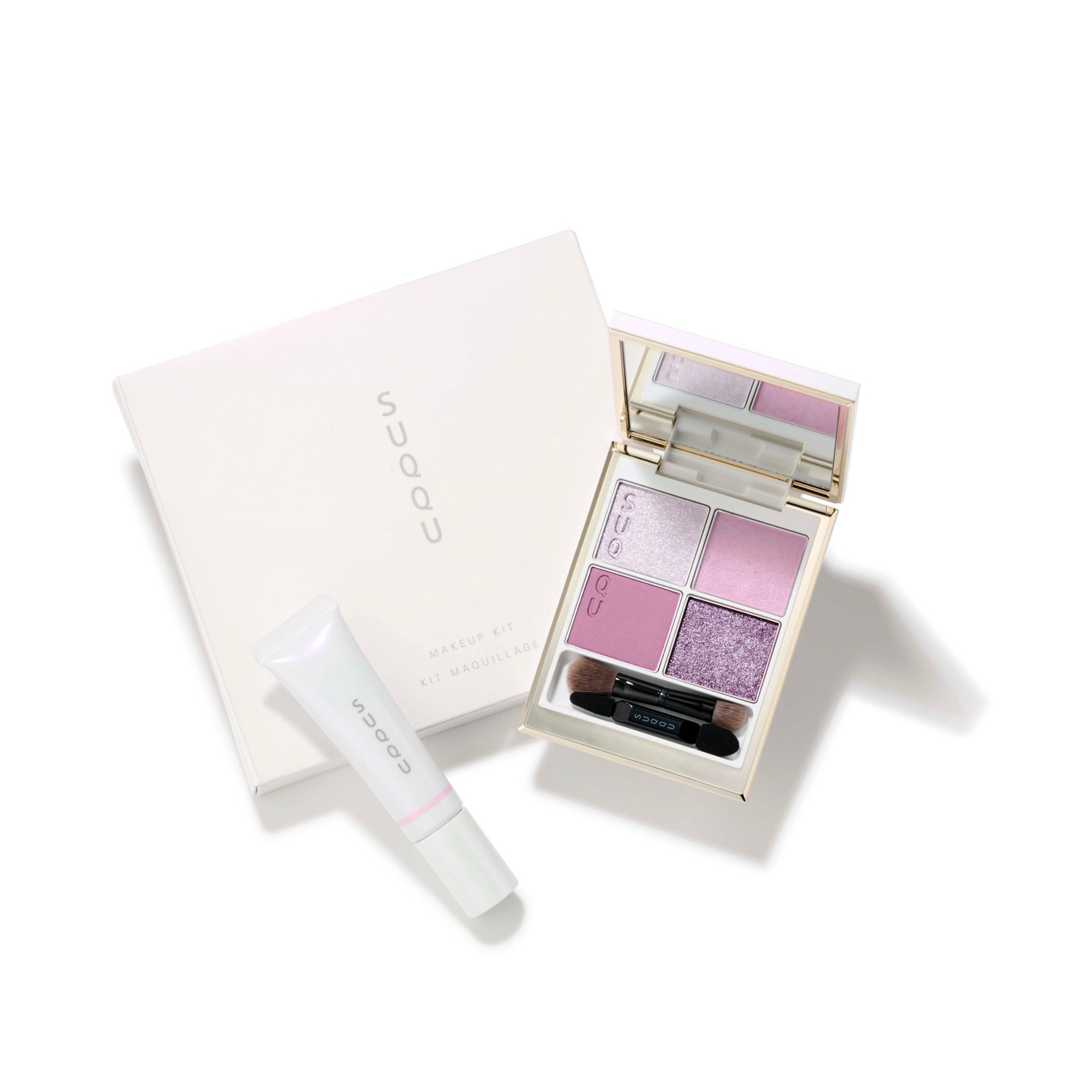 数量限定で登場する2種のメイクアップキットは、人気のアイシャドウセットとリキッドチークがセットに。アイシャドウは、温かさのなかに、時にクールさ、時に可愛らしさが垣間見える、パールの輝きが宿っています。同じくハ?ールを忍は?せたチークは、あふれだすような多幸感を演出してくれます。