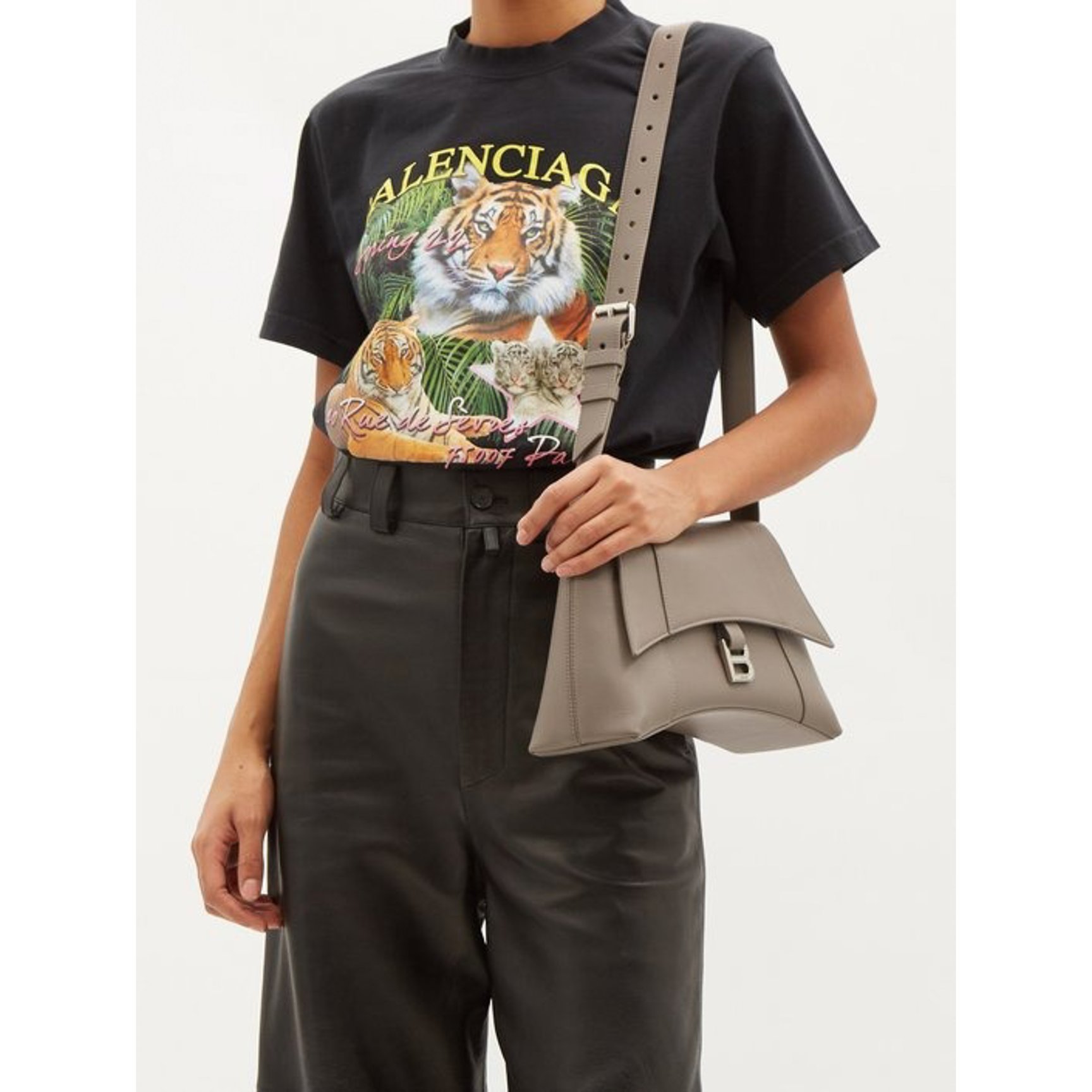 タイガープリントと、「バレンシアガ(BALENCIAGA)」のパリ本社の住所が記載されたファニーでキュートなTシャツ。スラックスやレザーバッグなどきちんと感のあるアイテムのはずしとして合わせるのもおすすめです。