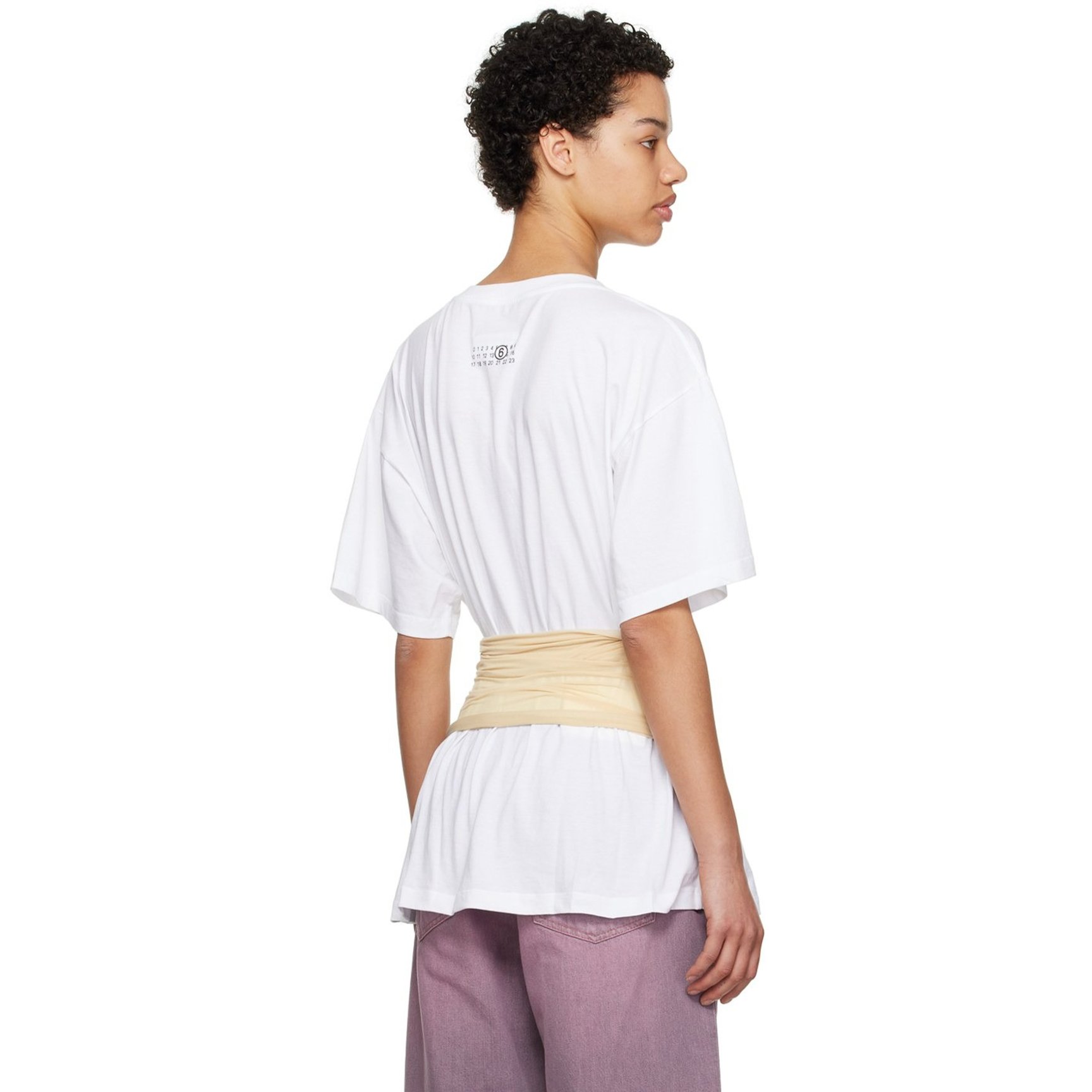 プレーンなコットンジャージーのホワイトTシャツに、ストレッチ性のあるキャミソールをレイヤードした「エムエムシックス?メゾン?マルジェラ(MM6 Maison Margiela)」のレイヤードTシャツ。キャミソールをベルトのようにすると小粋でユニークなアクセントに。