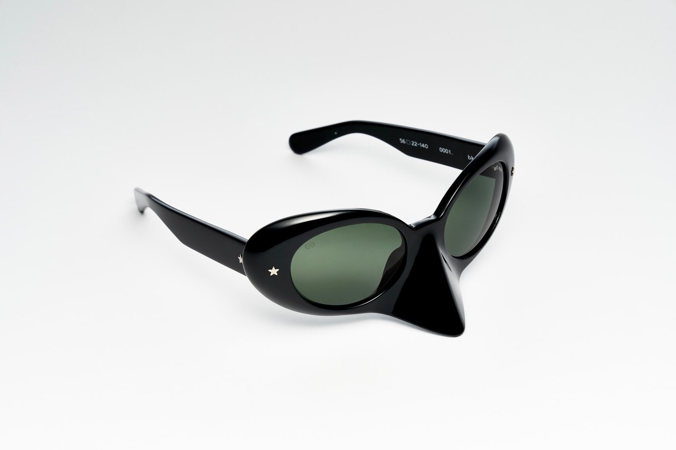 もうひとつの「0001.」は、鼻付きのユニークなデザイン。「いわゆるカート?コバーンのオマージュで、僕がずっと創り続けてきたオーバル型です。ただ、世の中に同じような形が増えてきてしまったので、ある人の掛けていたサングラスからアイデアを借用させてもらいました」。宮下が言う"ある人"というのは、プラスチックスの立花ハジメ。60年代のイメージにニューウェイヴをプラスし、今の感覚でデザインに落とし込んだ。