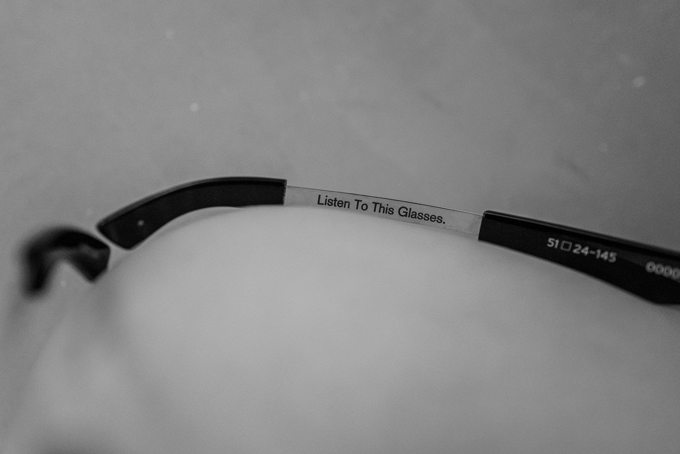 0000.のテンプルを伸ばすと「Listen To This Glasses.」の言葉が現れる