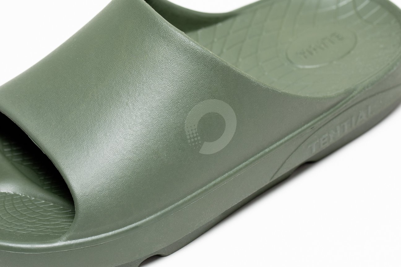 テンシャルは、ビーチサンダルタイプの「フリップフロップ(Flip flop)」とスライドタイプの「スライド(Slide)」の2型のリカバリーサンダルを展開。アッパーのデザイン以外、ソールやロゴの位置などの仕様は全く同じなので、裸足で履くときにはフリップフロップ、季節問わず靴下で履きたい場合にはスライド、のようにライフスタイルに合わせて選ぶことができそうです。いずれも日本人の足に最も多い形をベースに作られています。