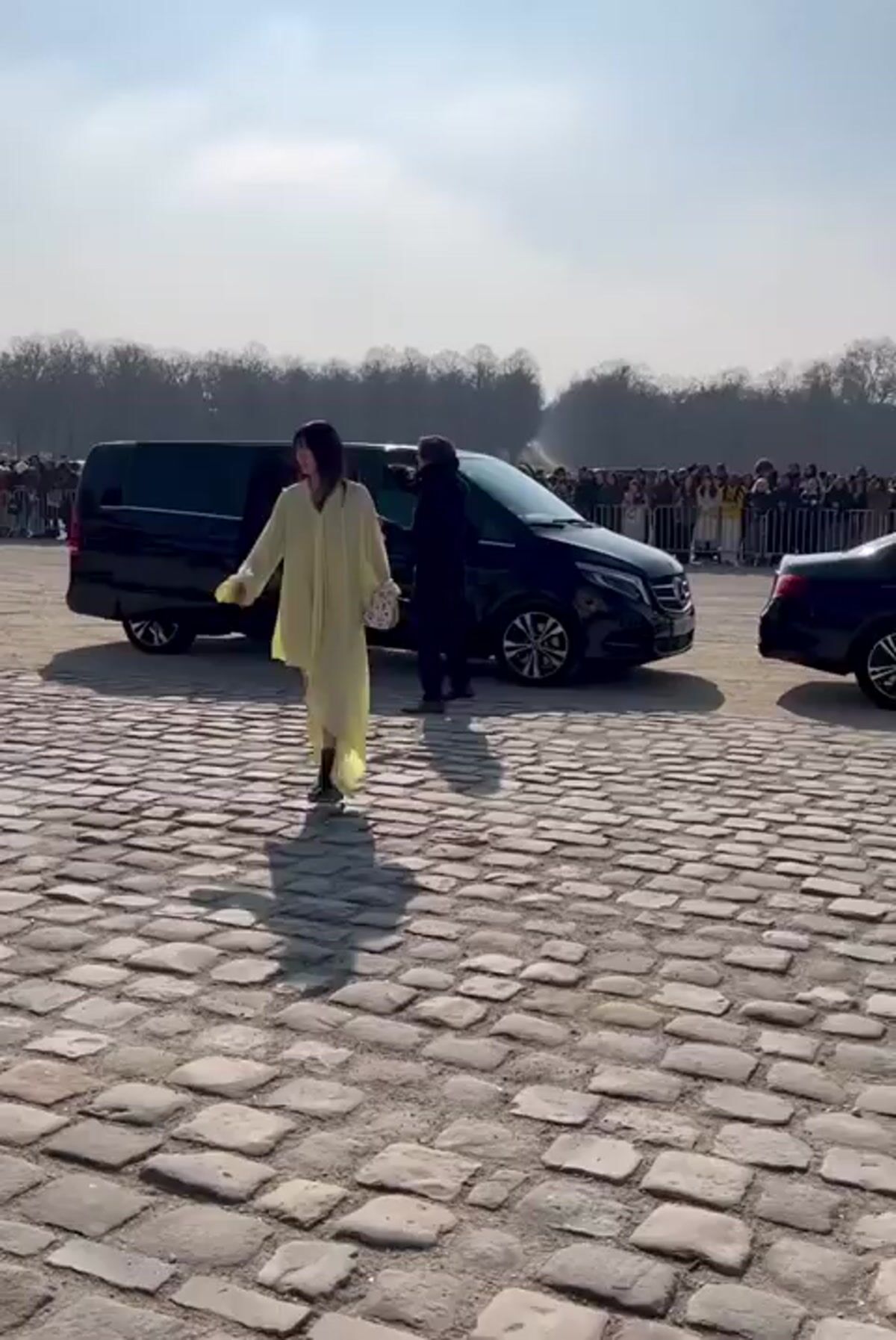 パリ?ファッションウィーク5日目の3月3日、ヴァンセンヌ城の特別な門が開かれると同時に、世界各国から招かれたゲストらが続々と到着。そこに、ひときわ目を引くバニラ色のドレスをまとった本田さんが現れました。周辺に集まった一般客の歓声とパパラッチのフラッシュを浴びながら車を降りて、城の敷地内へと足を踏み入れます。