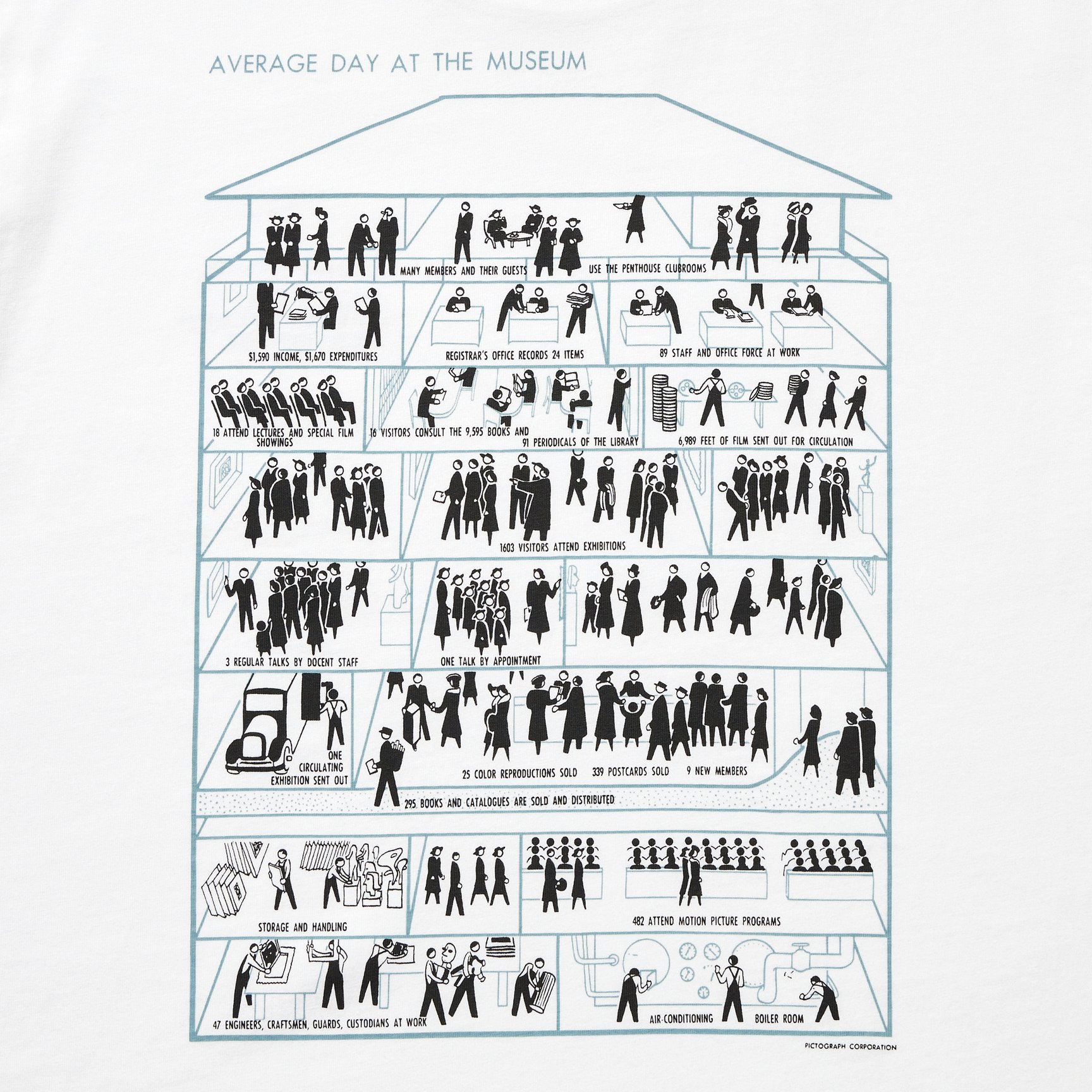 MoMAデザインスタジオとのコラボしたグラフィックTシャツ。MoMAが保管する貴重なアーカイヴ資料の一部がモチーフに採用されています。1940年の年報に掲載された図解「1939年の開館を記念に作られた美術館での平均的な一日」をはじめ、クロード?モネの「睡蓮」が同美術館に収蔵される様子を捉えた写真や、展覧会「Art in Our Time」のパンフレットに掲載されたマップなどをモチーフに取り入れた全4型を販売中です!現代アートの発展に大きく寄与したMoMAのヘリテージを落とし込んだ"着るアート"。カジュアルからモードまで、どんなスタイリングにも取り入れやすいのが嬉しいポイントです。