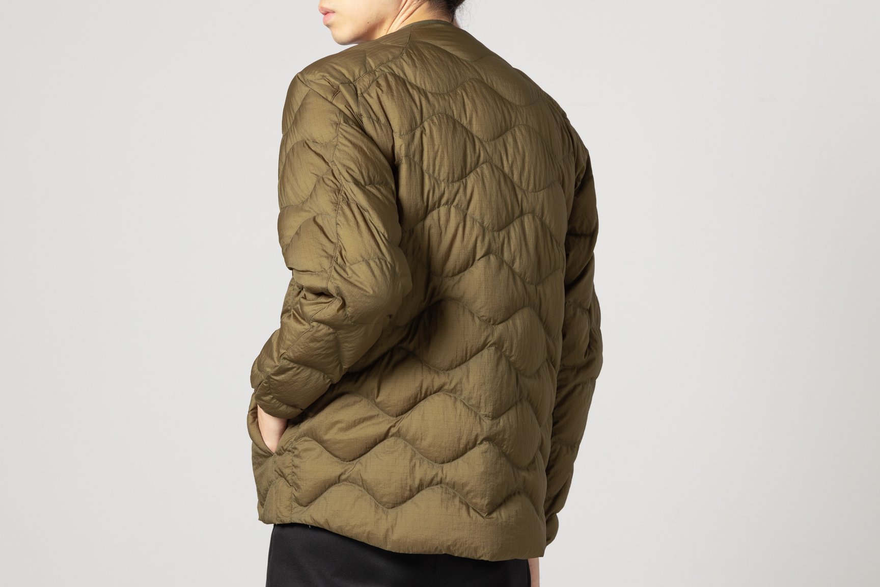 編集H:本当ですね。恐らくインナーダウンとしても使えるように袖幅は細めですが、着てみると確かに肩や腕の可動域が広い。軽くてストレスフリーだから何も着ていないみたいで、すごいです。