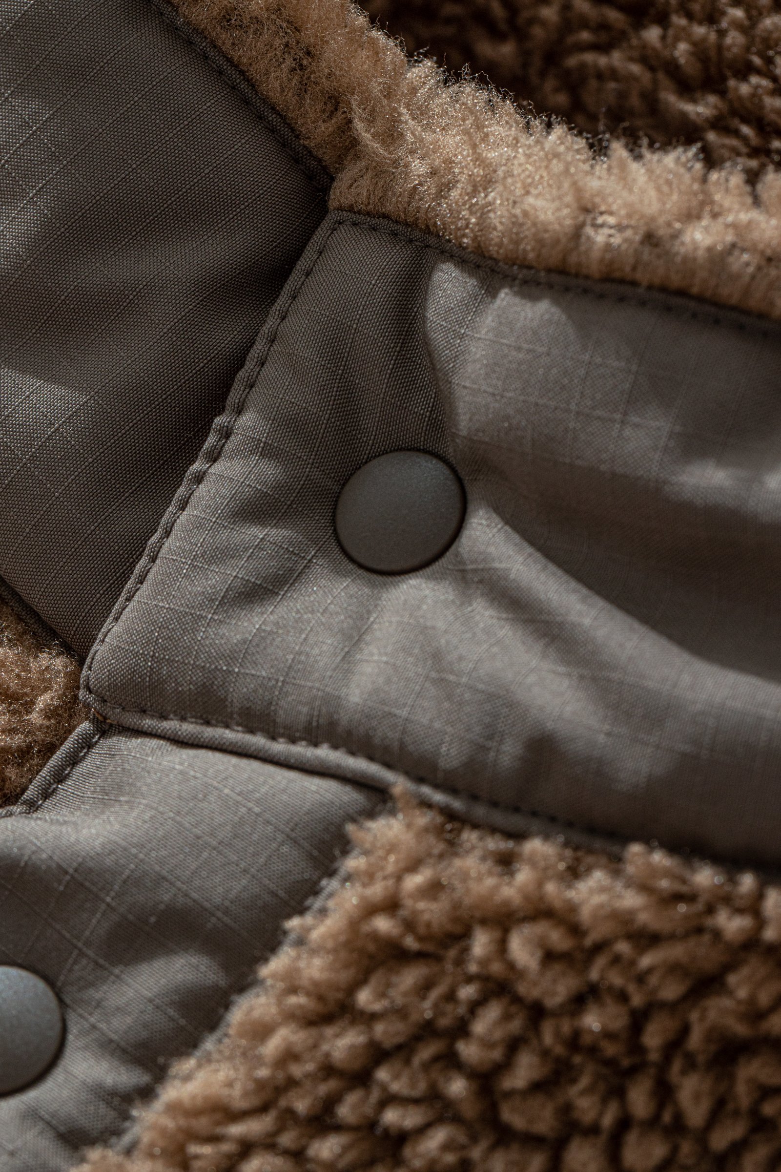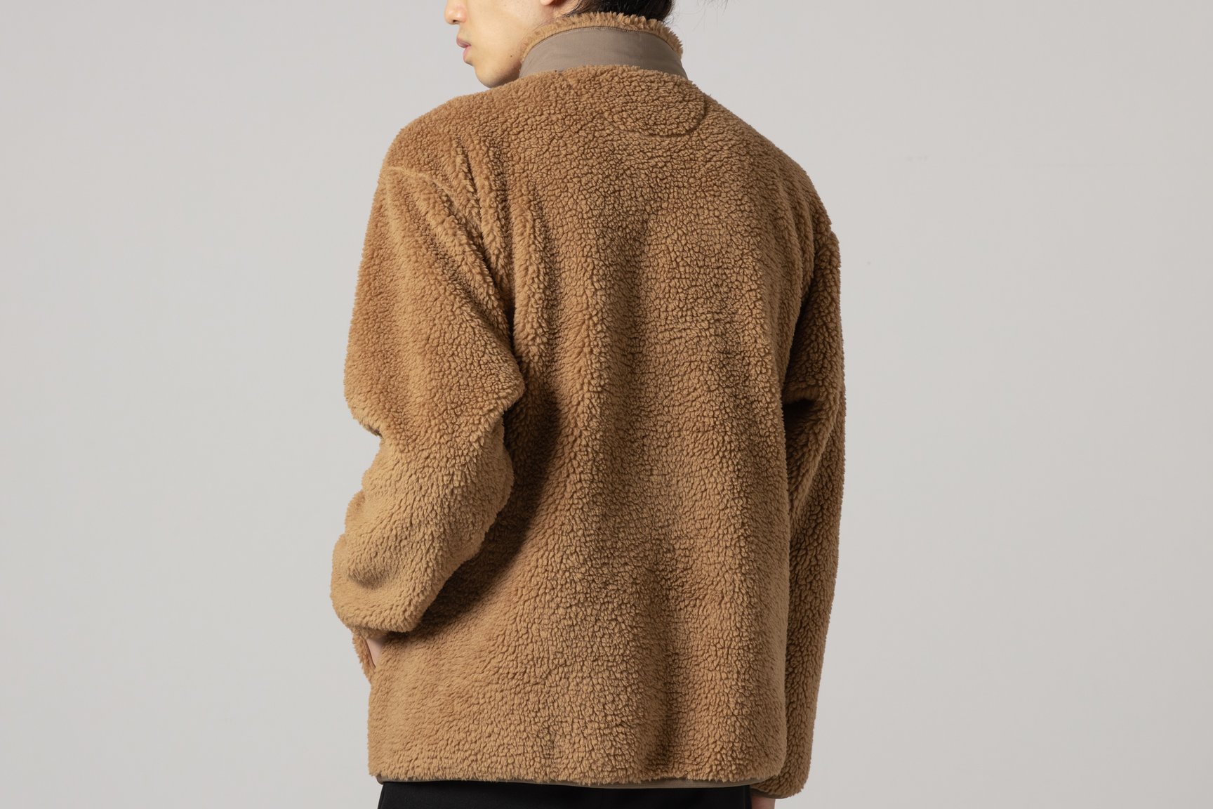 編集H:毛足の長さの違いで2種類のフリースを組み合わせたジャケット。ボアを重ね着したように見えるデザインで、今回のコラボの中では一番デザインが効いてるんじゃないでしょうか。