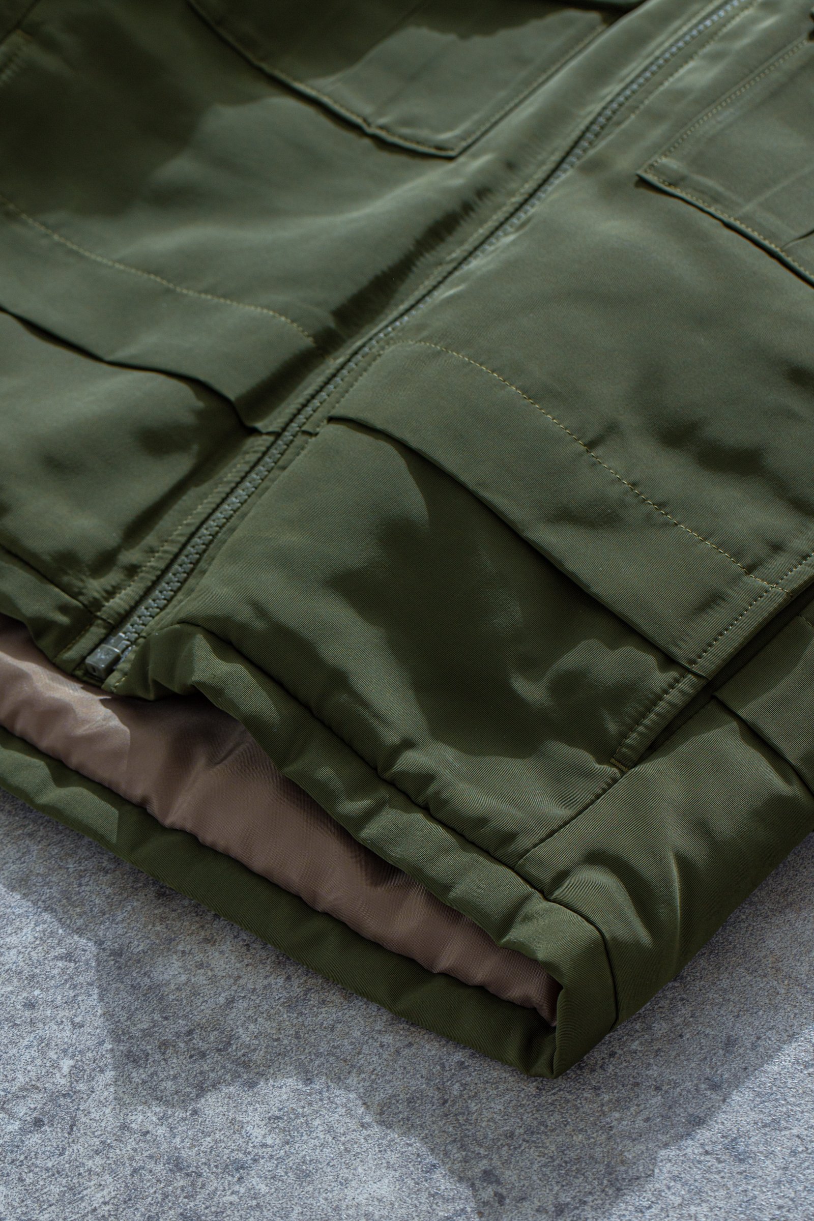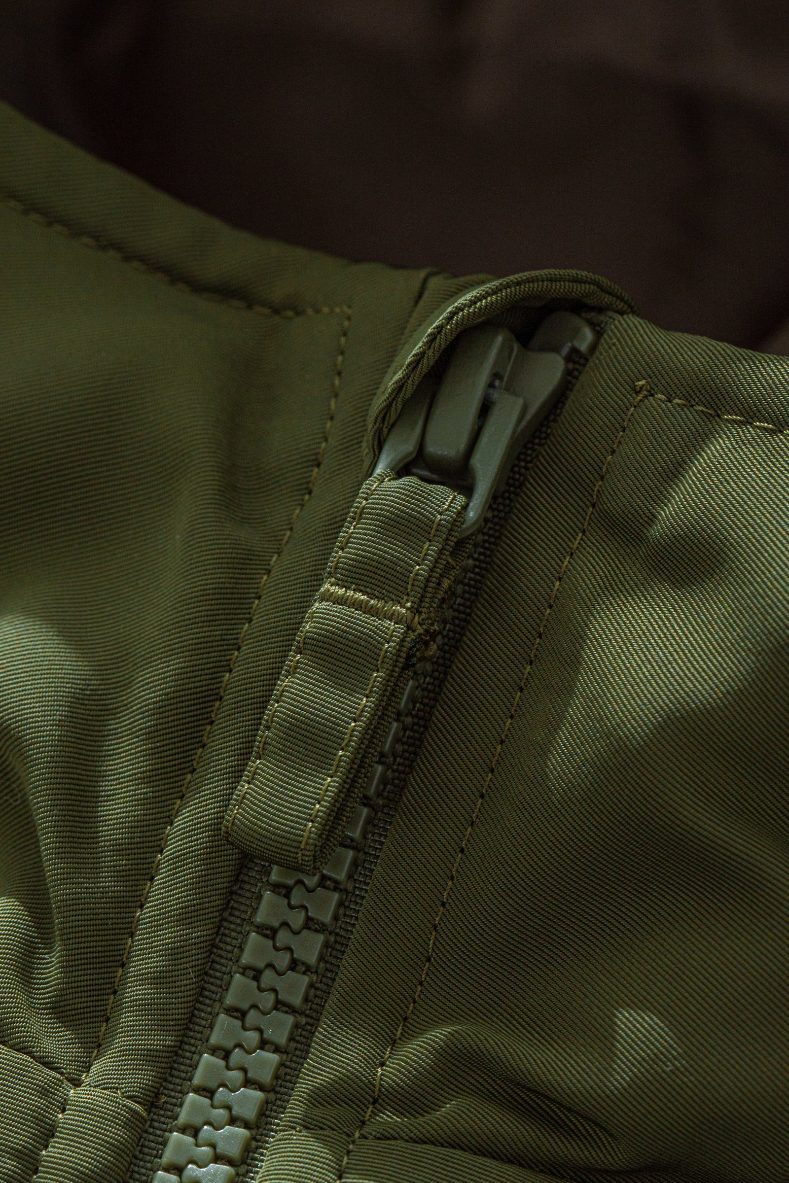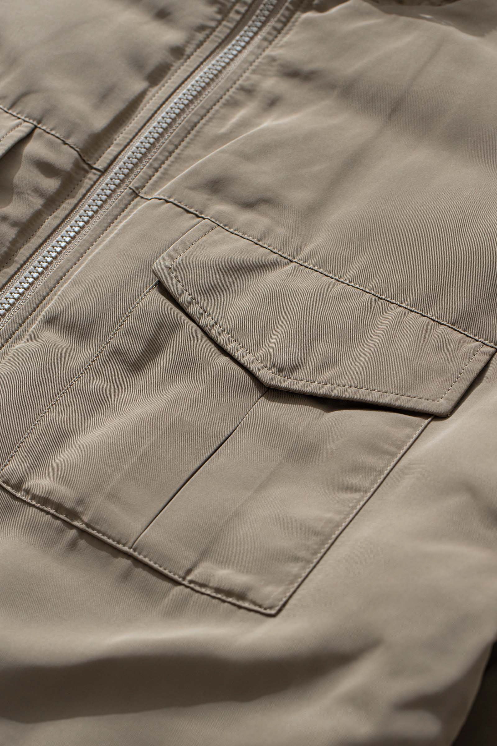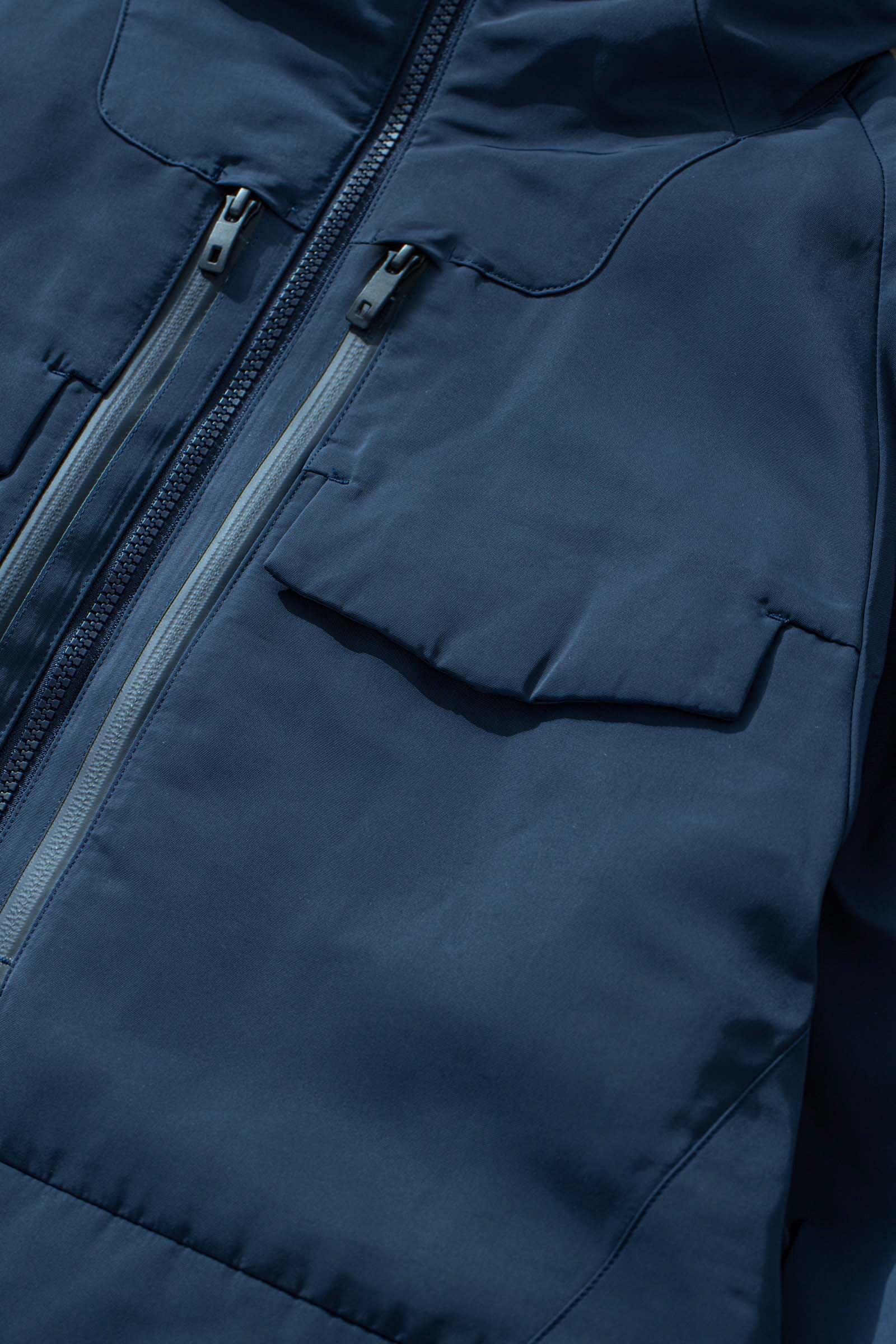 編集H:胸ポケットの生地は布帛。テープ使いやマットカラーのジップとかディテールに凝っていて、首元やポケットなどMA-1の要素も入っています。でも裾にリブがないからか、ミリタリー感は強くなくてアウトドア寄り。