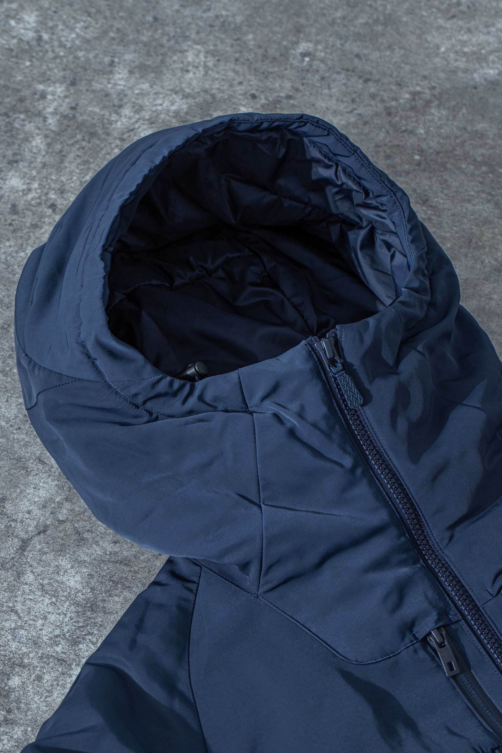 編集H:フードだけでも6パーツで作られていて、頭から首元まで包み込むような立体構造。全体的にサイズ感はゆったり目で、ユニクロではあまり見ないダブルジップや止水ジップが使われていたり、脇から入れるポケットの中は起毛素材でハンドウォーマーになっていたり。アウトドアウェアに通じる機能性を感じます。