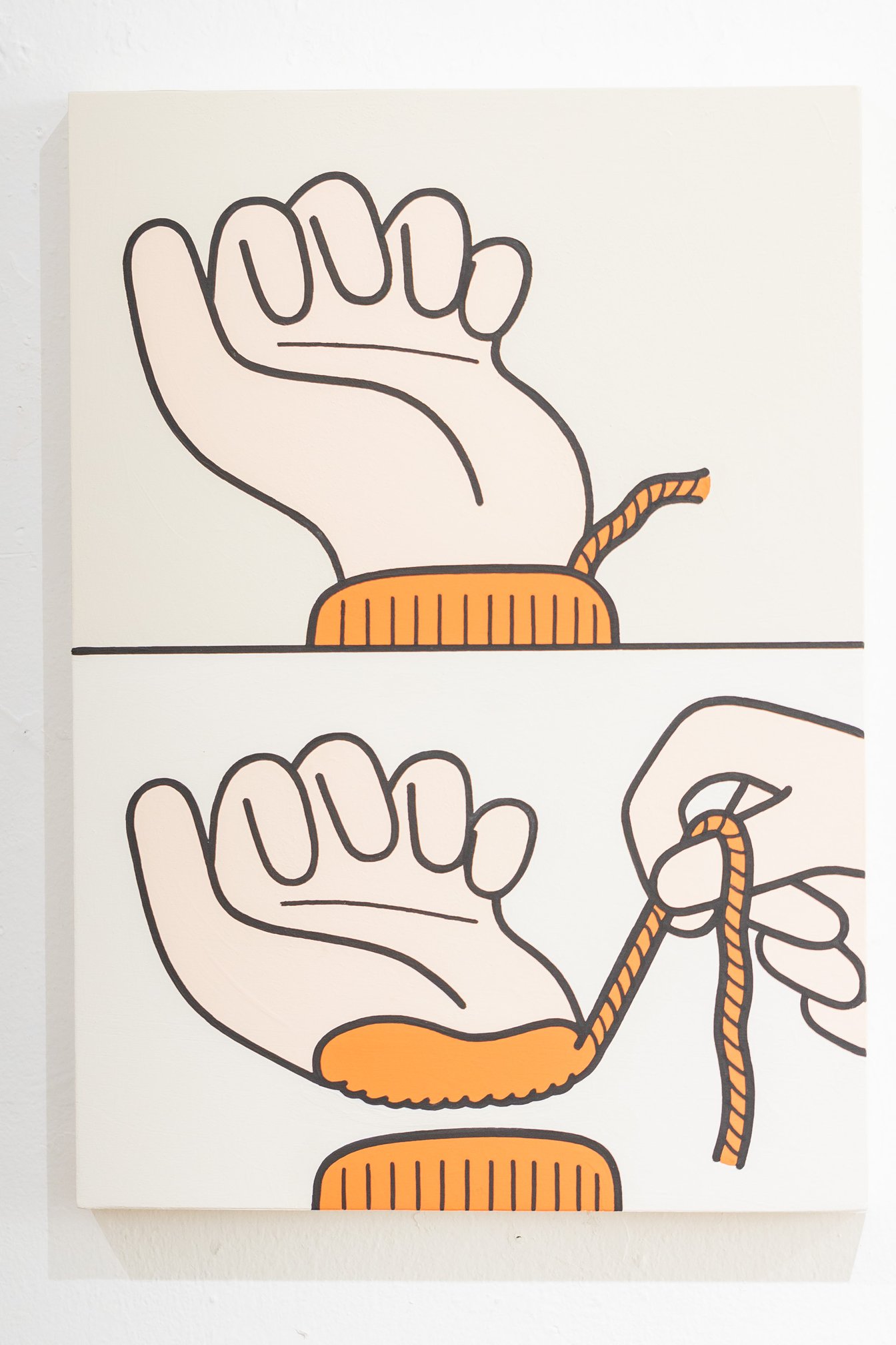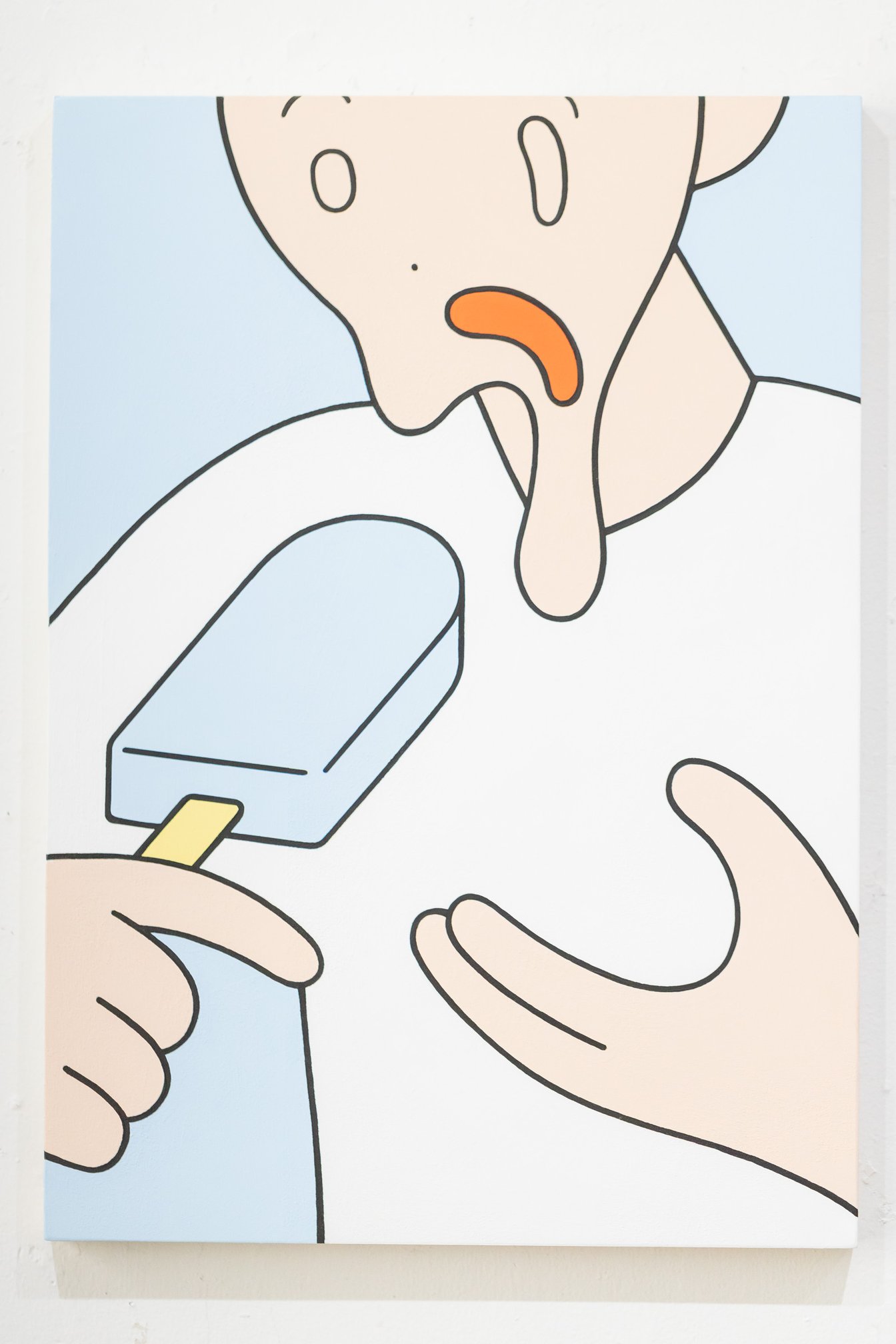 お仕事はデジタル制作、展示はアナログ制作をと分けていて。アナログ制作の時は、実線の部分はポスカを使って、色を塗る時にアクリル絵の具を用いています。最初の個展ではポスカと筆が混在していましたが、筆だと太さのムラが出てしまって難しかったので実線は全てポスカで描いています。