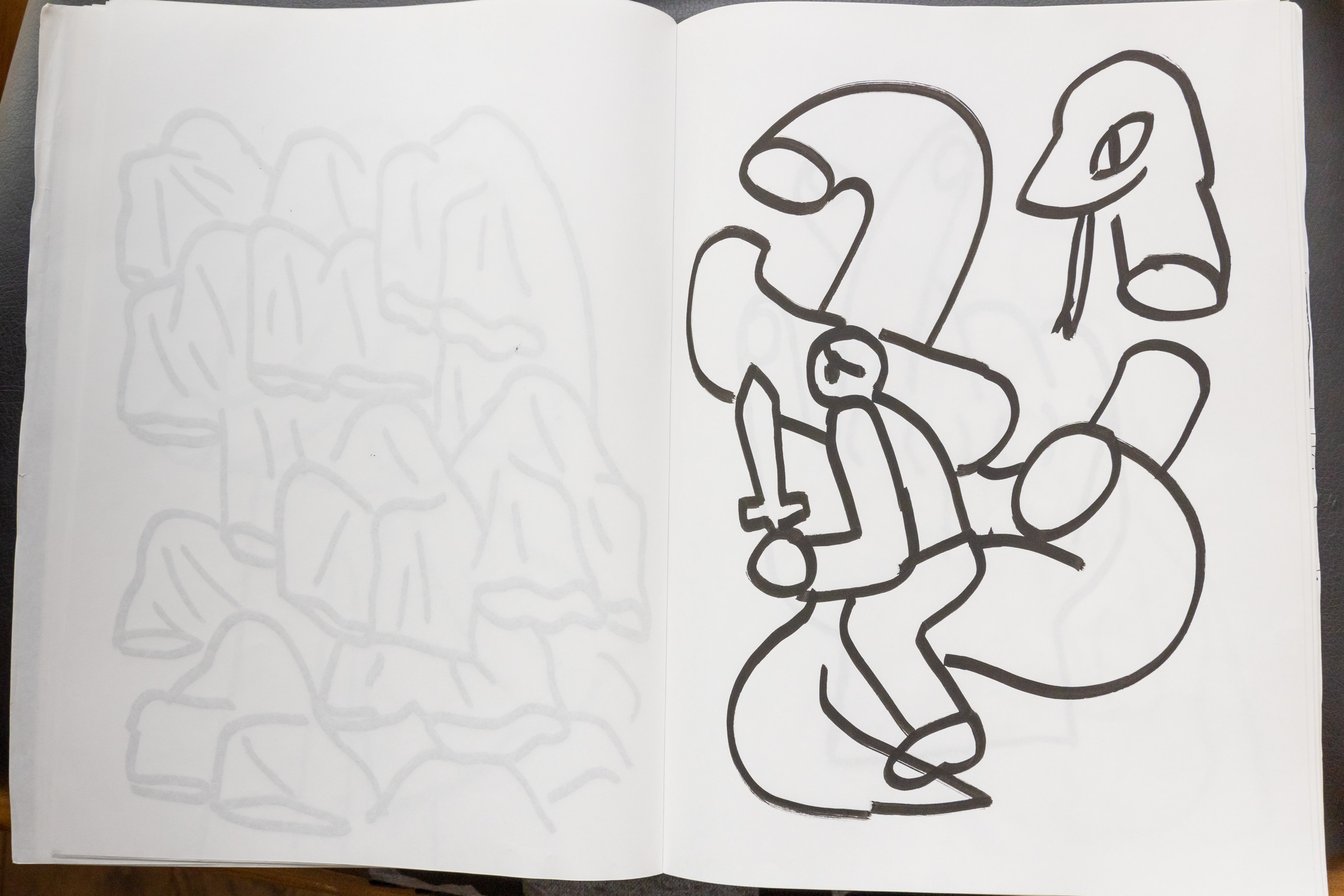 ベースは実際に見たものが多いです。でも描いているのは想像です。木にタオルが引っかかっている状況を見たとき「木の緑色と、タオルの白色のコントラストがおもしろいな」「というか、なんで木にタオルが絡まっているんだ」と、状況に対してツッコミを入れると思うんです。思わずツッコミを入れてしまったその状況を見たままにただ描くのではなく、木を人間に見立てて「頭にタオルが絡まっている人」を描く、というようなことをしています。