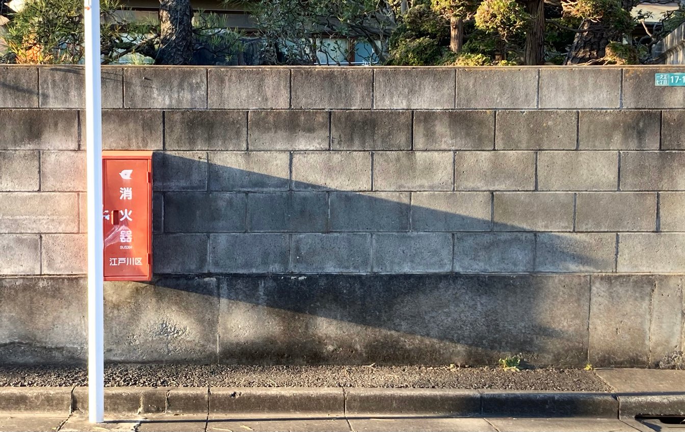 西日で異様に長く伸びた影