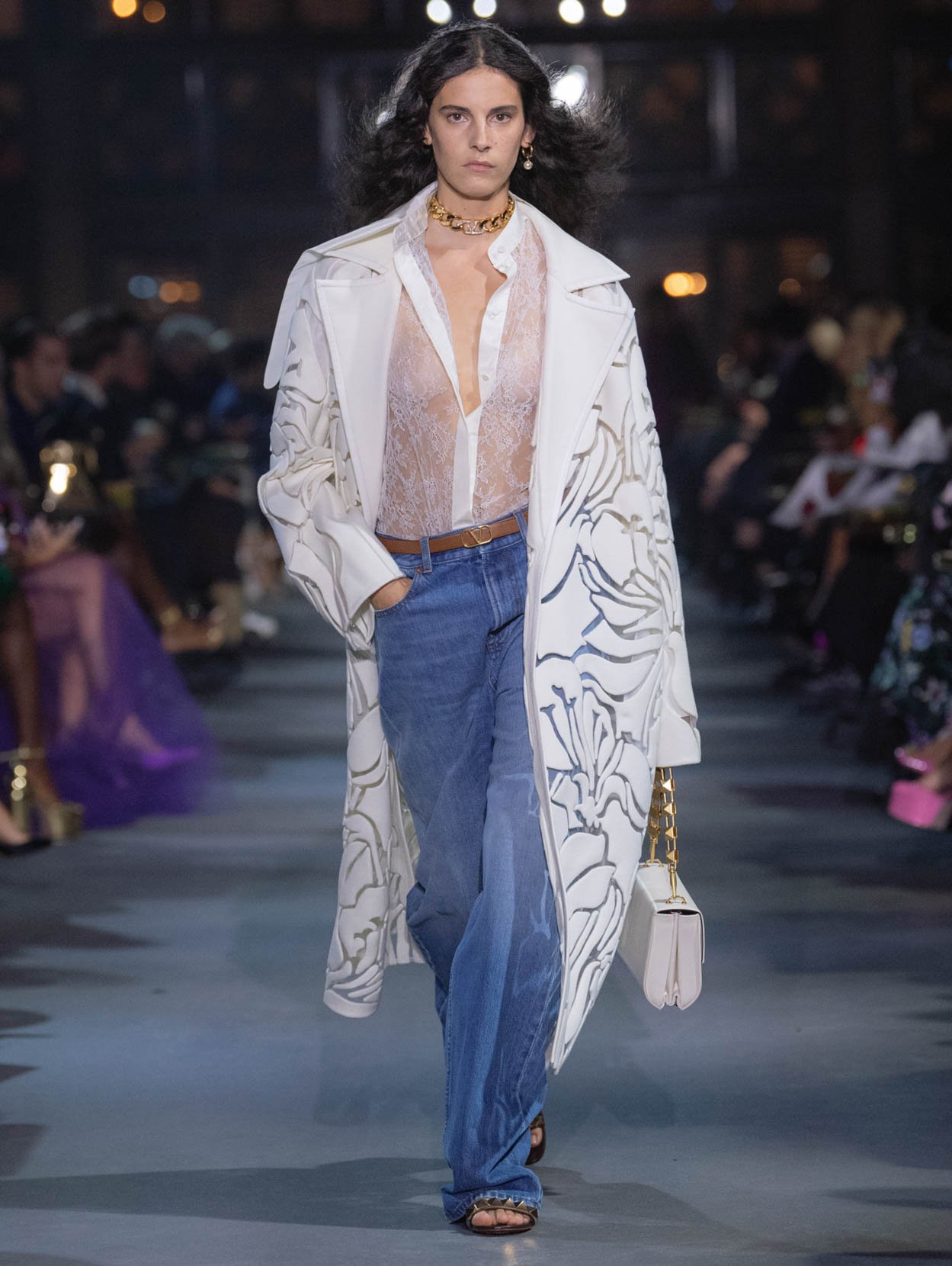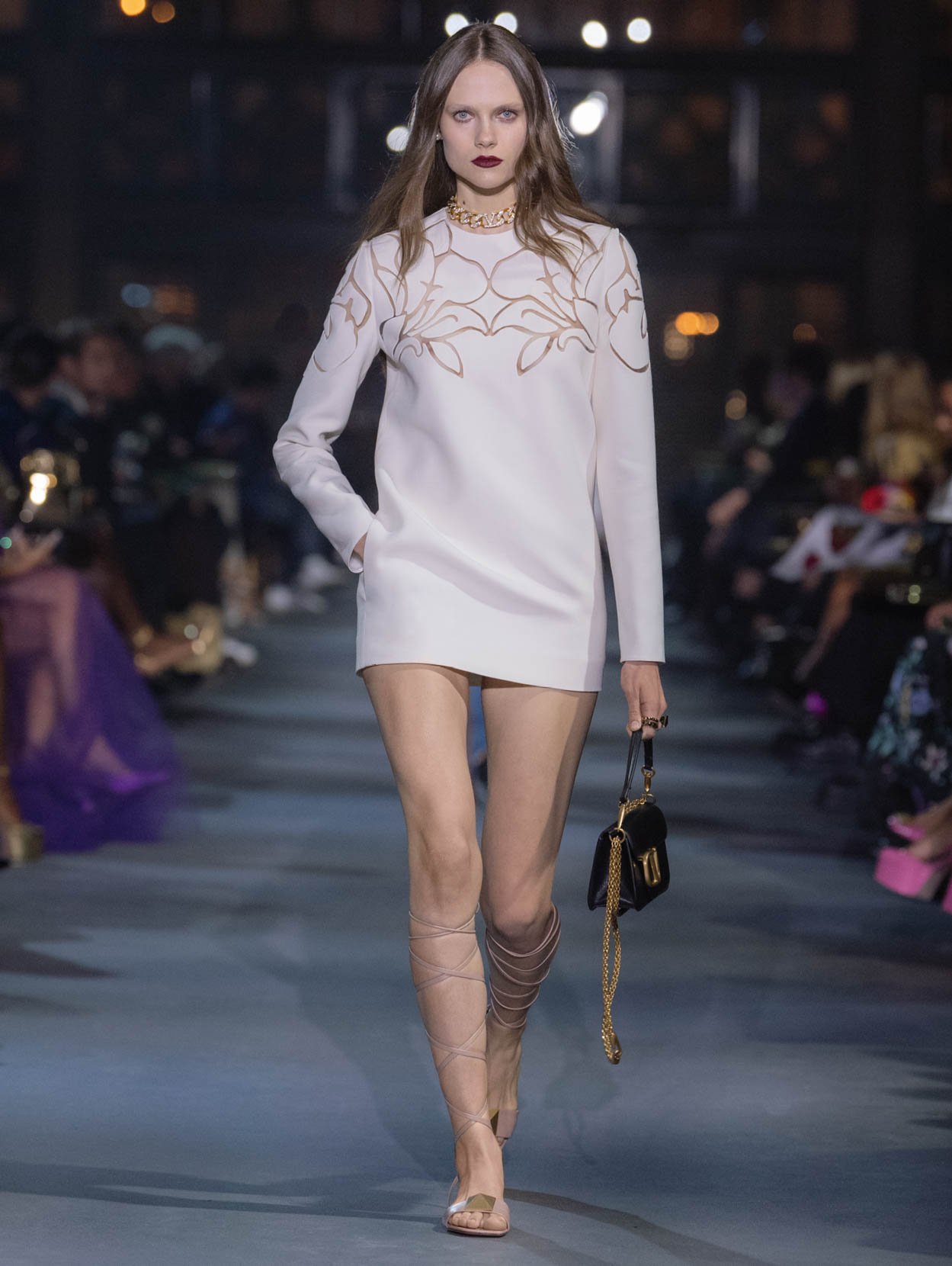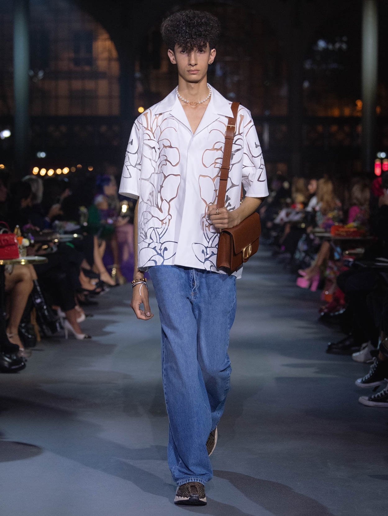ショーでは小花の飾りが繊細に縫い付けられたホワイトドレスがファーストルックを飾った。これはピエールパオロ?ピッチョーリ(Pierpaolo Piccioli)が「Valentino Archive」と名付けたプロジェクトで、「過去は常に私たちの強さの起源。それがValentino Archiveであり、絶えず創造的な結果を引き出し、生み出す脈打つ生命体なのです」と同氏が説明する通り、創業デザイナーのヴァレンティノ?ガラヴァーニ(Valentino Garavani)が手掛けたアーカヴピースを復刻させるというもの。他にもアニマルプリントのコートや花柄のロングドレス、ロゴ入りのプリントシャツやデニムもアーカイヴに由来し、ピースにはValentino Archiveと記されたラベルが取り付けられているという。