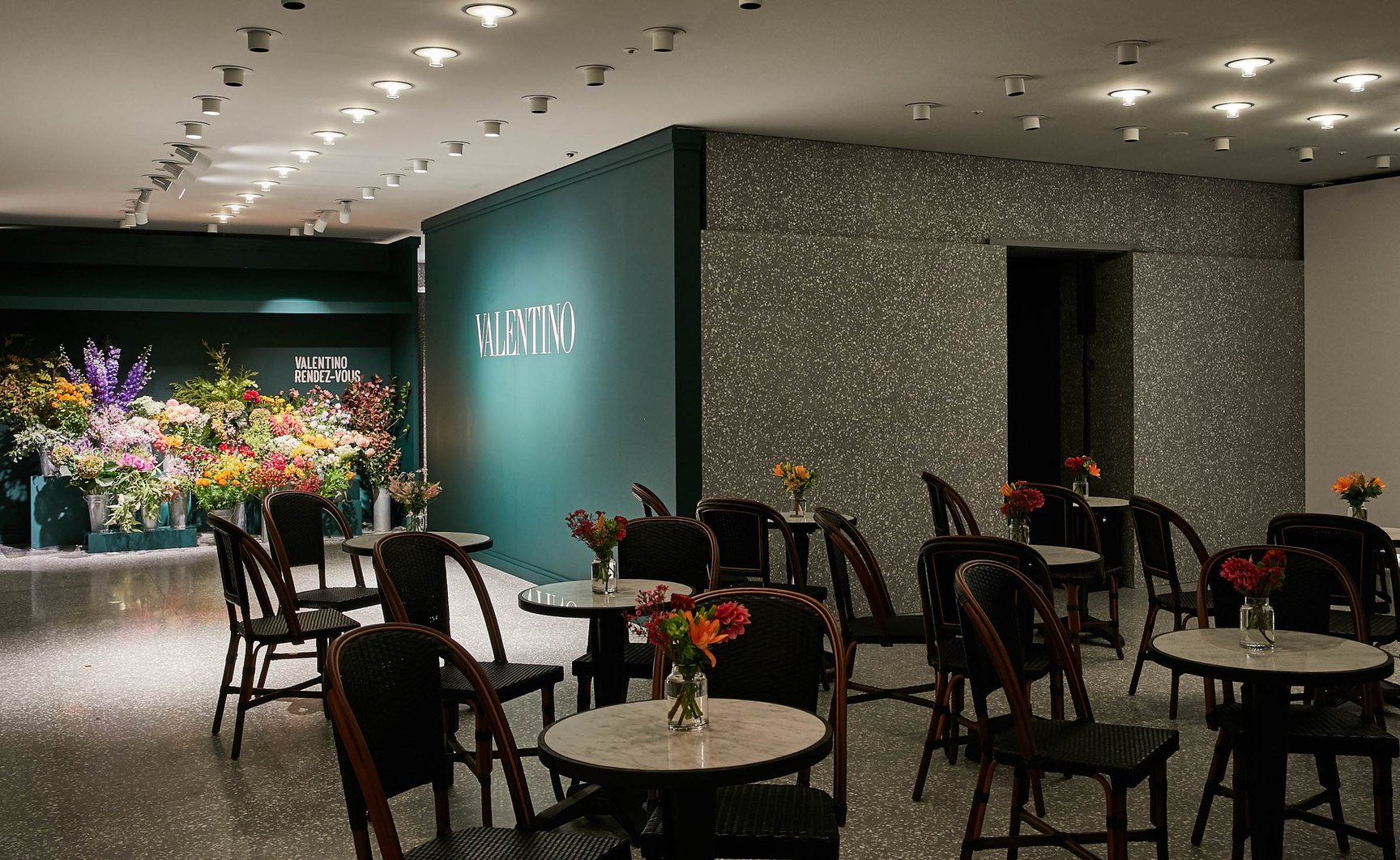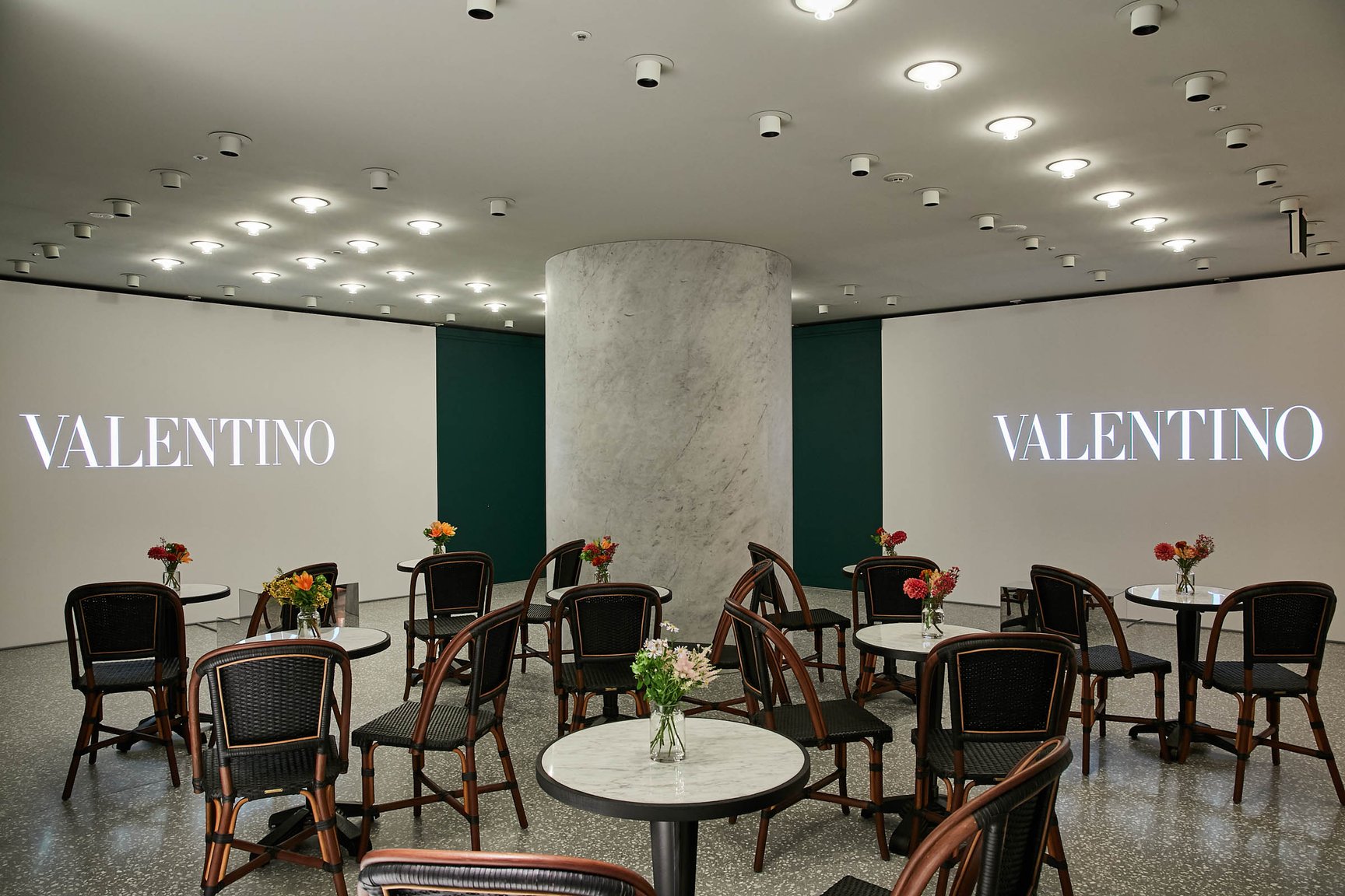 無観客の劇場で行われた前シーズンと打って変わって、今シーズンのランウェイは有観客で室内から通り沿いのカフェも巻き込みストリートへと続く順路。「ストリートへ繰り出す」というメッセージを象徴するように、ヴァレンティノは会場の周辺にある4つのブティックを"ジャック"し、5日間限定でそれぞれイベントを行う。(V)Vaccinated(ワクチン接種済み)限定フーディの販売や、2021年末に発売されるサステナブルなスニーカー「ヴァレンティノガラヴァーニオープンフォーア チェンジ」の先行オーダー、日本未上陸のヴァレンティノビューティーのタッチアップなどが展開されるという。