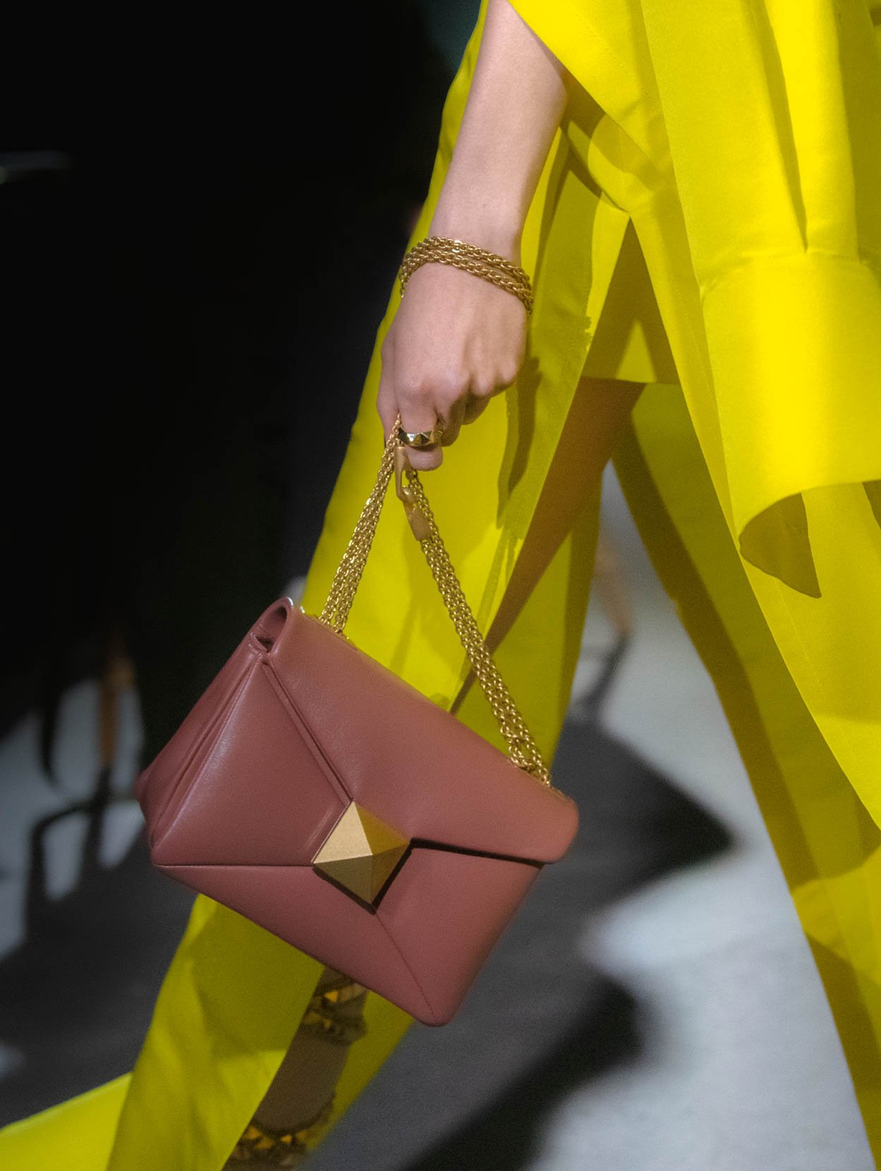 バッグではスタッズをマクロサイズで一点あしらった新作が登場したほか、アクセサリーはウィメンズ、メンズともにパールや太めのチェーンのネックレスが首元を飾った。