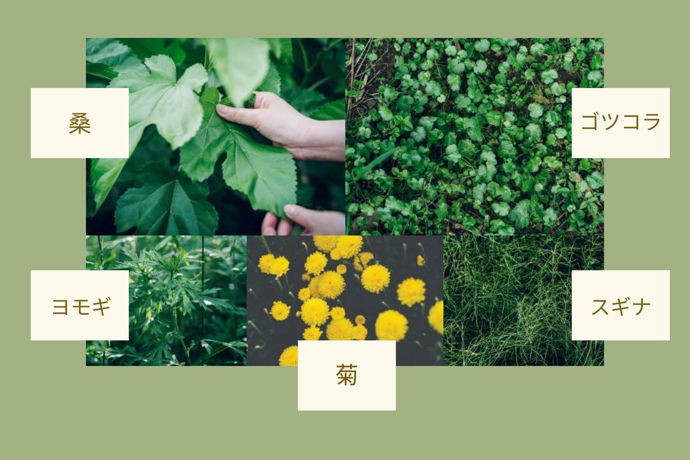 ワフィト(Waphyto)では、豊かな土壌を持つ愛知県東三河で無農薬栽培で育てられた「桑」「菊」「ゴツコラ」「ヨモギ」「スギナ」の5つをキー成分として配合。
