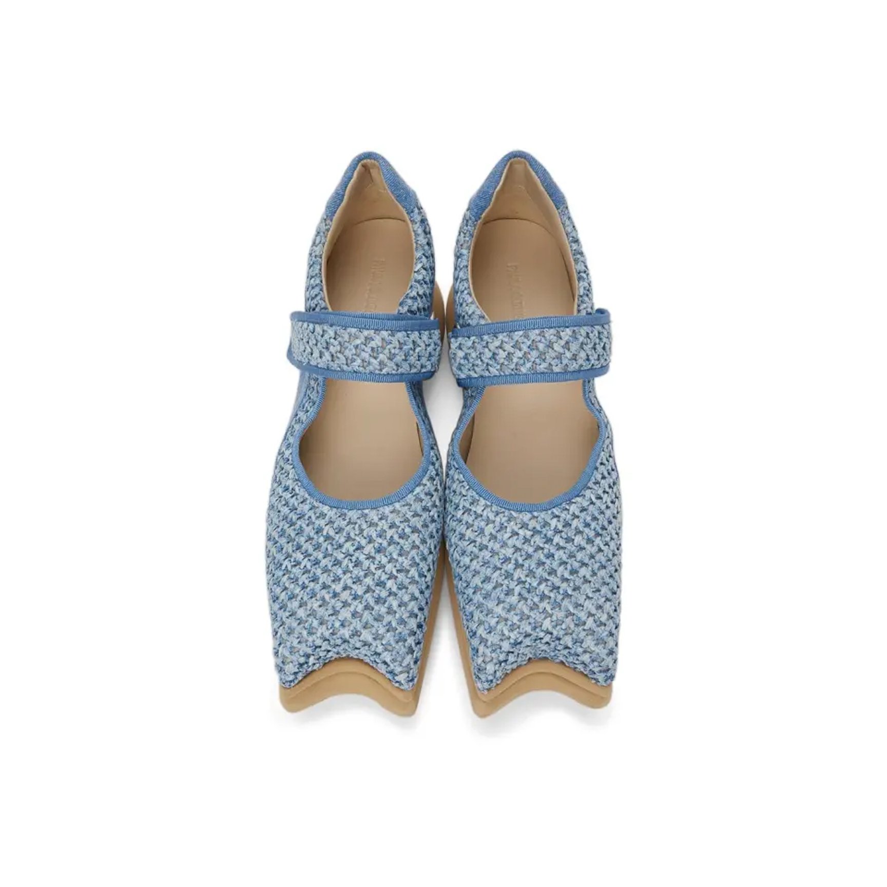 ブランドシグネチャーの変形型スクエアトゥがポイントの「ポーラ?カノヴァス?デル?ヴァス(Paula Canovas del Vas)」のスニーカー。ストロー織地のファブリックが涼しげなシューズです。