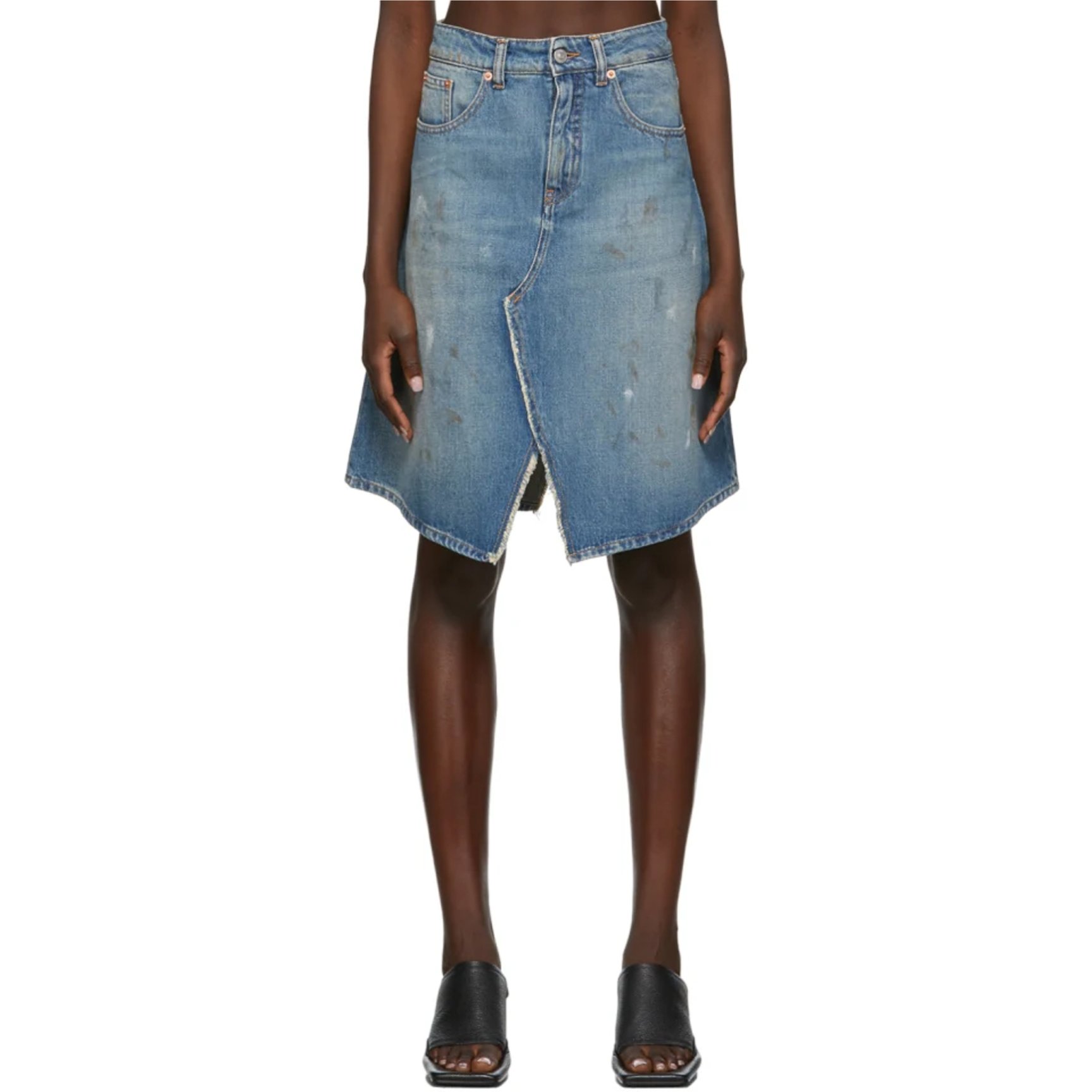 デニムも定評のある「エムエム6 メゾン マルジェラ(MM6 Maison Margiela)」からスカートをセレクト。Aラインシルエットのスカートにブラウンとホワイトのペイント加工を施した、クラフト感のあるデザインです。