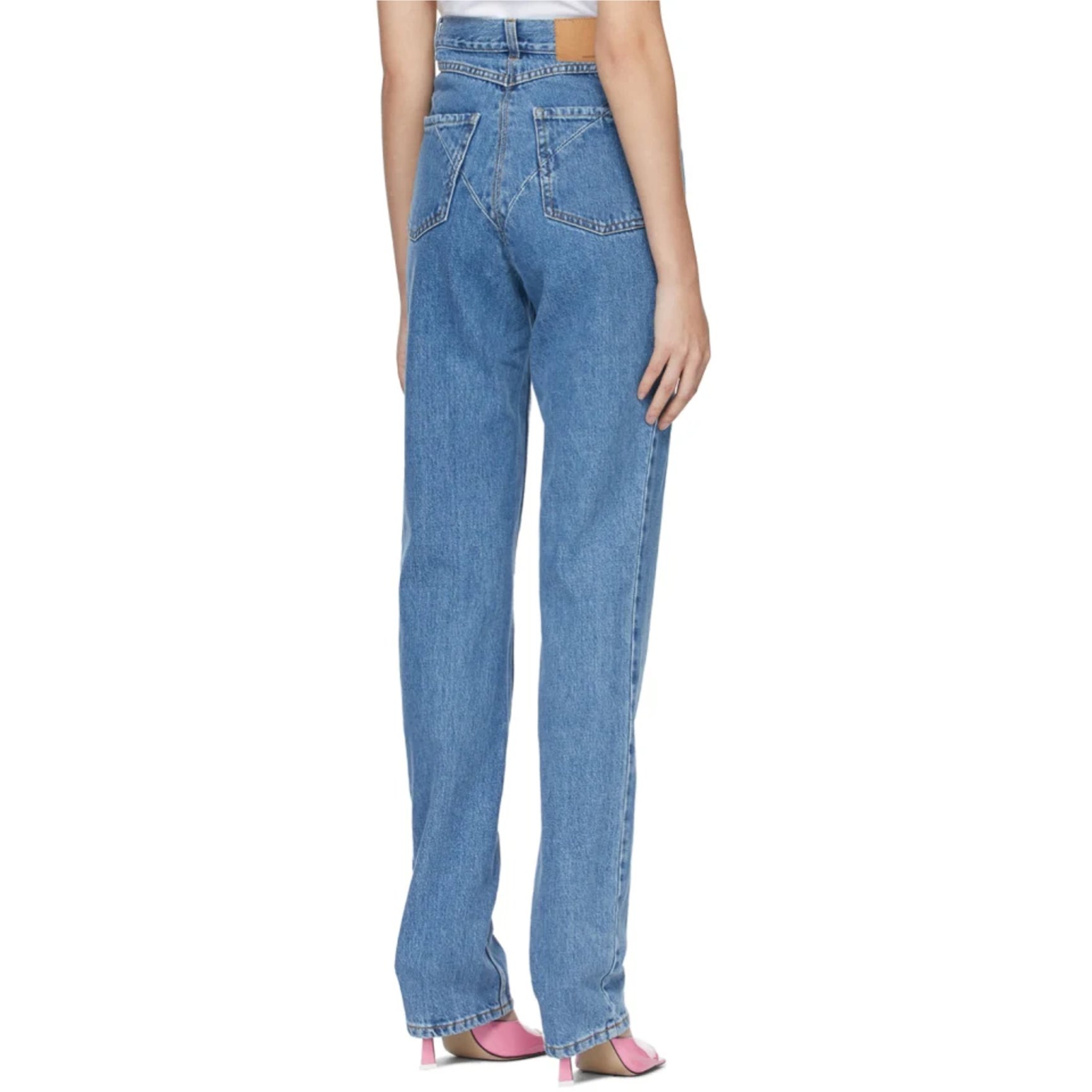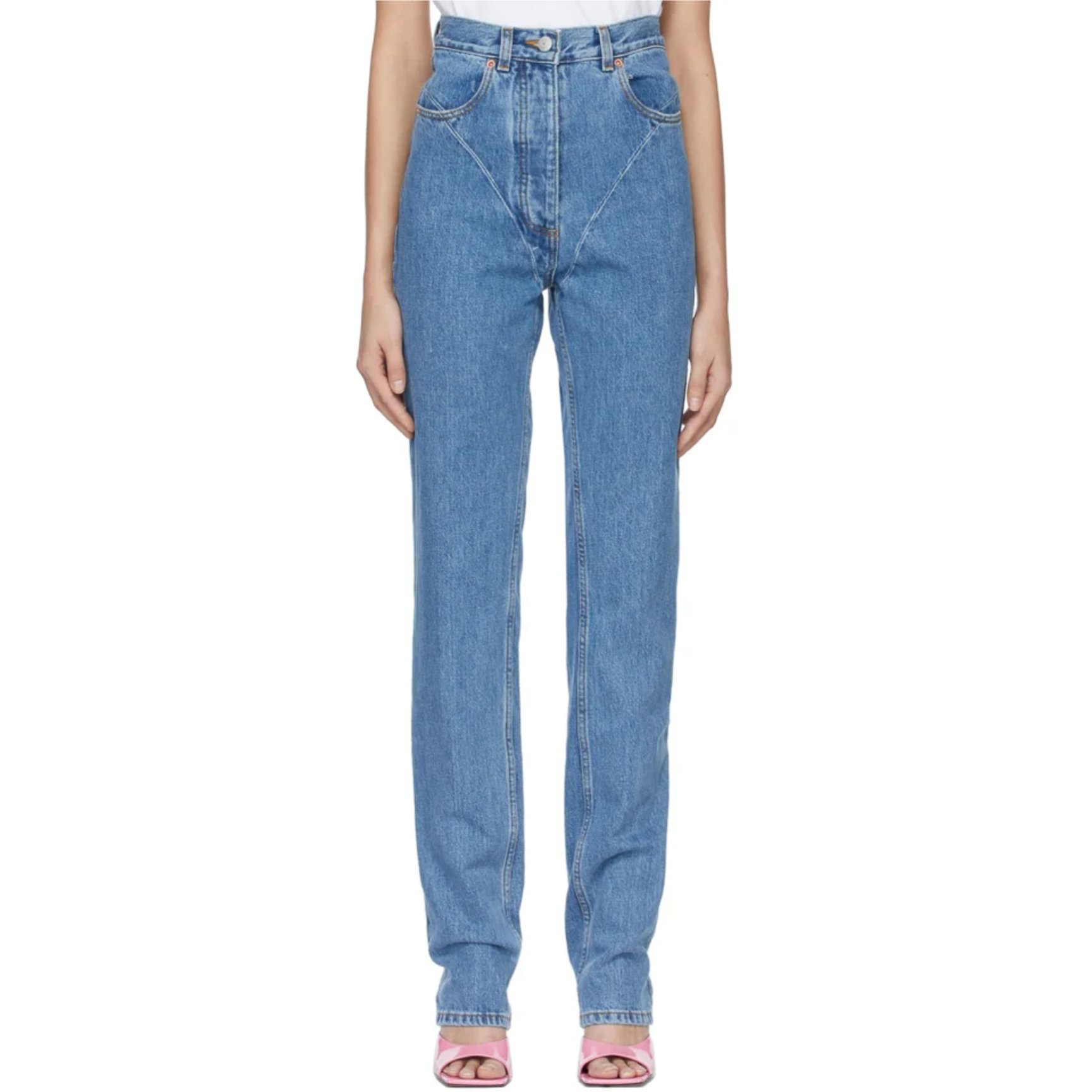 ユーズドのようなウォッシュデニムは「マグダ ブトリム(Magda Butrym)」から。ハイウエストのストレートシルエットのパンツに、骨盤の位置に施したステッチでユニークさを添えた一本です。
